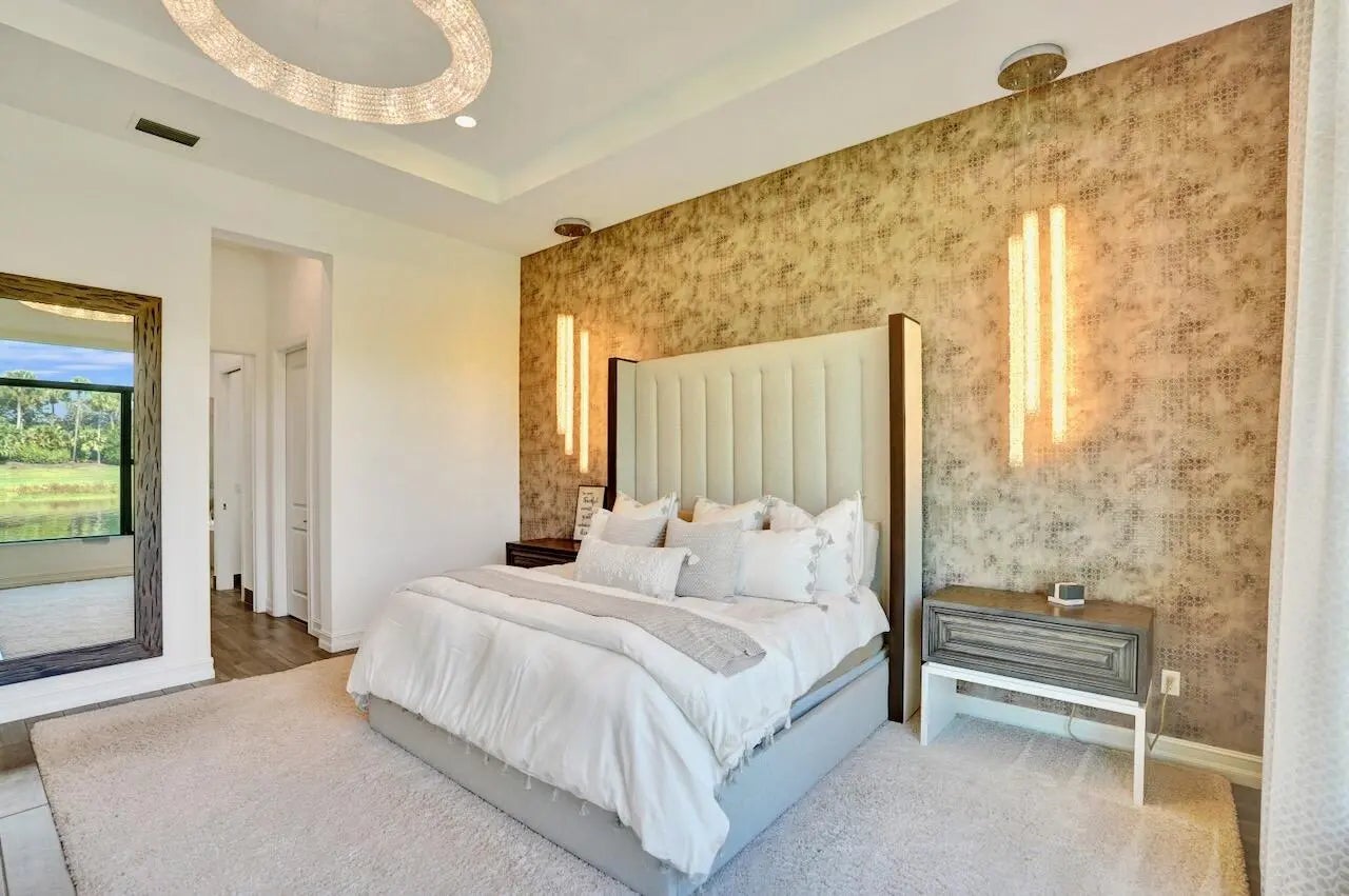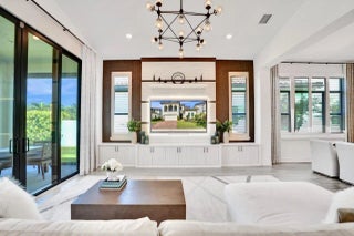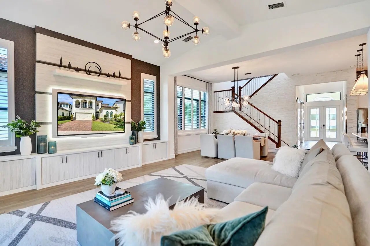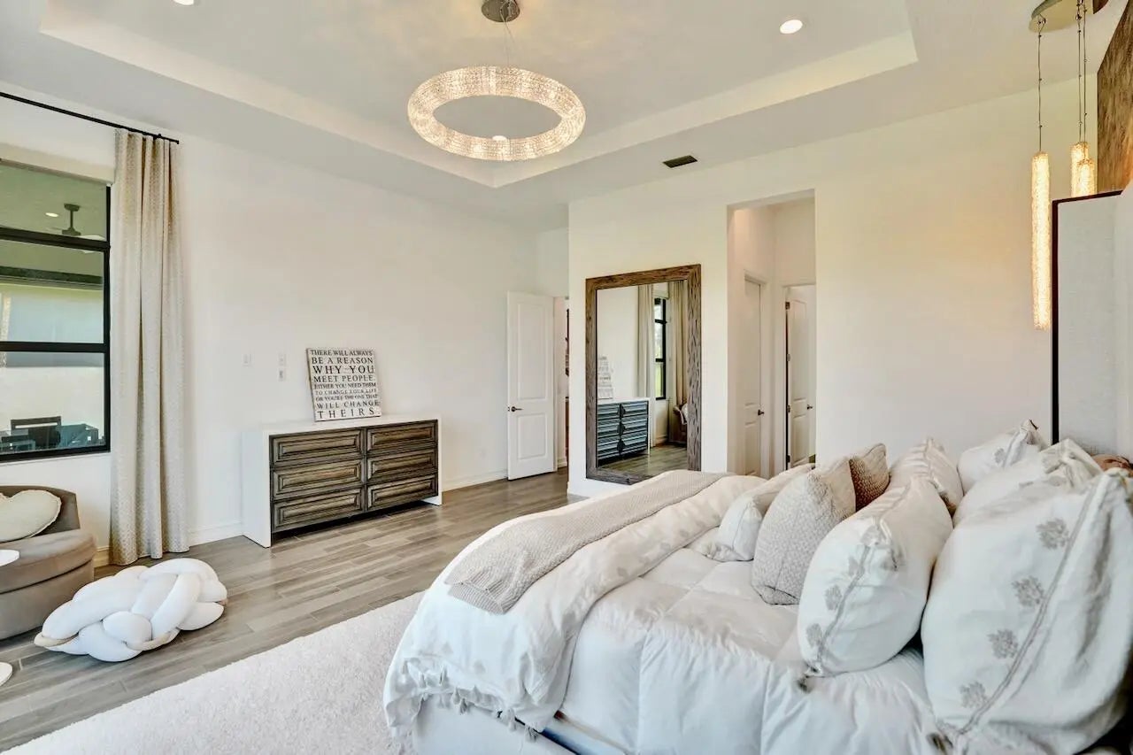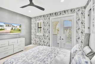 Welcome to this stunning Provence B Model in the gated community of Palm Meadows Estates. Built in 2020, this professionally decorated 4-bedroom, 4.5-bath residence with a dedicated office and spacious loft offers over 3,200 sq. ft. of thoughtfully designed living space and shows like a model home.The main level features an open-concept living area, upgraded glass double entry doors, custom media cabinetry, and an entirely upgraded chef's kitchen with quartz countertops, marble backsplash, stone accent tile, stainless steel appliances, gas range, double ovens, and a walk-in pantry with custom storage. Also on the main floor are the luxurious primary suite, a private office with barn doors and built-in storage, a second ensuite bedroom, and a custom mudroom with built-in seating.