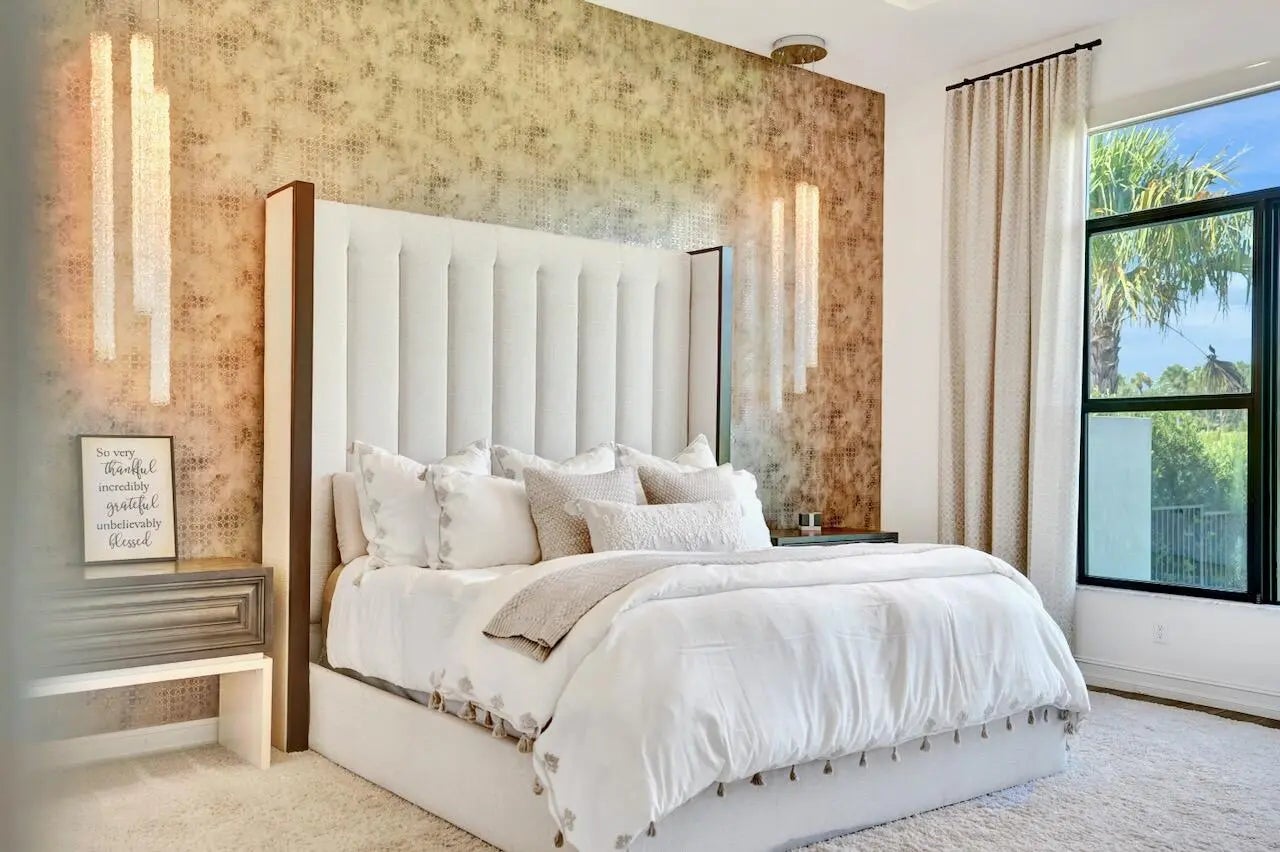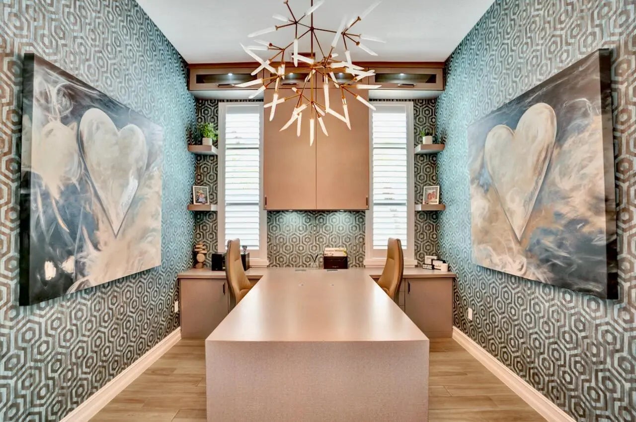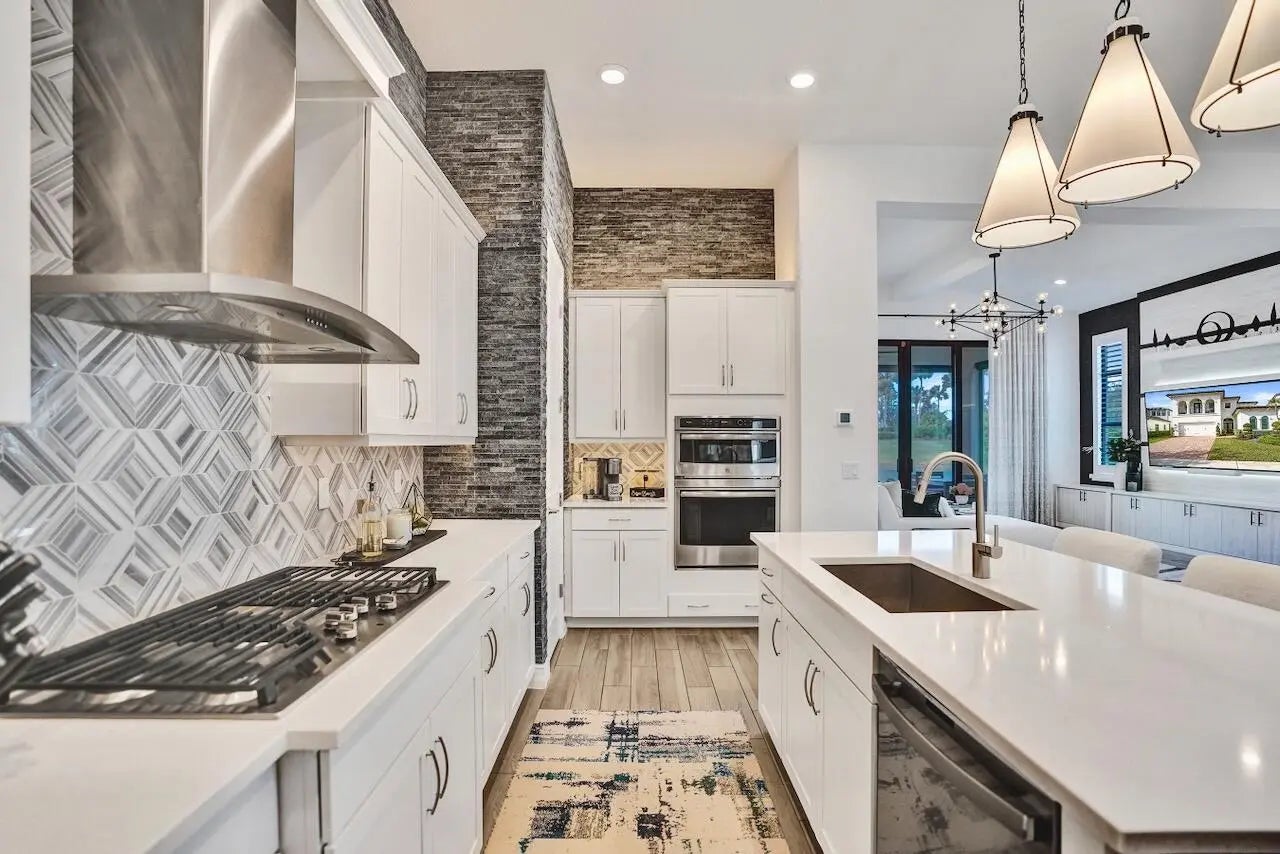 Welcome to this stunning Provence B Model in the gated community of Palm Meadows Estates. Built in 2020, this professionally decorated 4-bedroom, 4.5-bath residence with a dedicated office and spacious loft offers over 3,200 sq. ft. of thoughtfully designed living space and shows like a model home.The main level features an open-concept living area, upgraded glass double entry doors, custom media cabinetry, and an entirely upgraded chef's kitchen with quartz countertops, marble backsplash, stone accent tile, stainless steel appliances, gas range, double ovens, and a walk-in pantry with custom storage. Also on the main floor are the luxurious primary suite, a private office with barn doors and built-in storage, a second ensuite bedroom, and a custom mudroom with built-in seating.