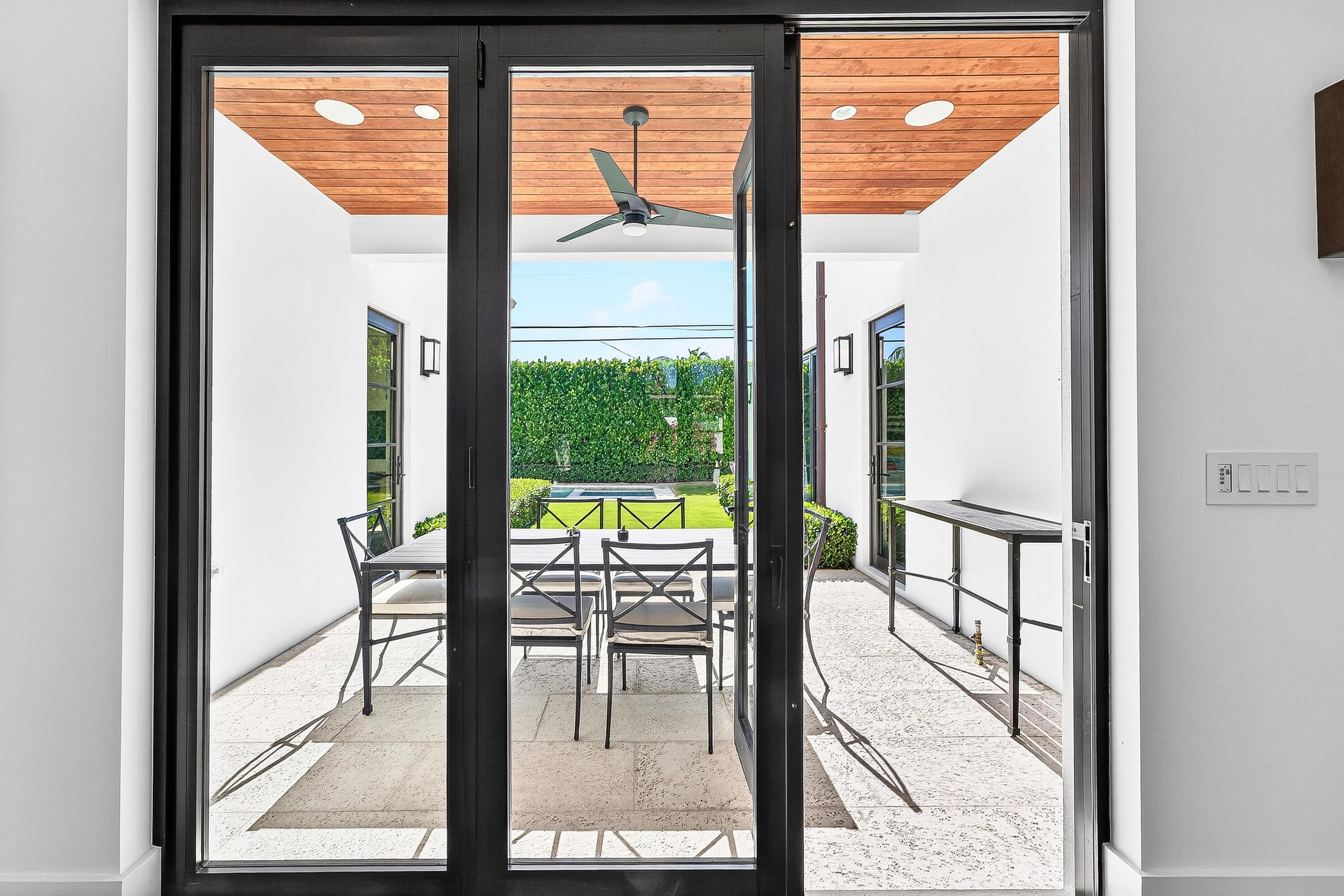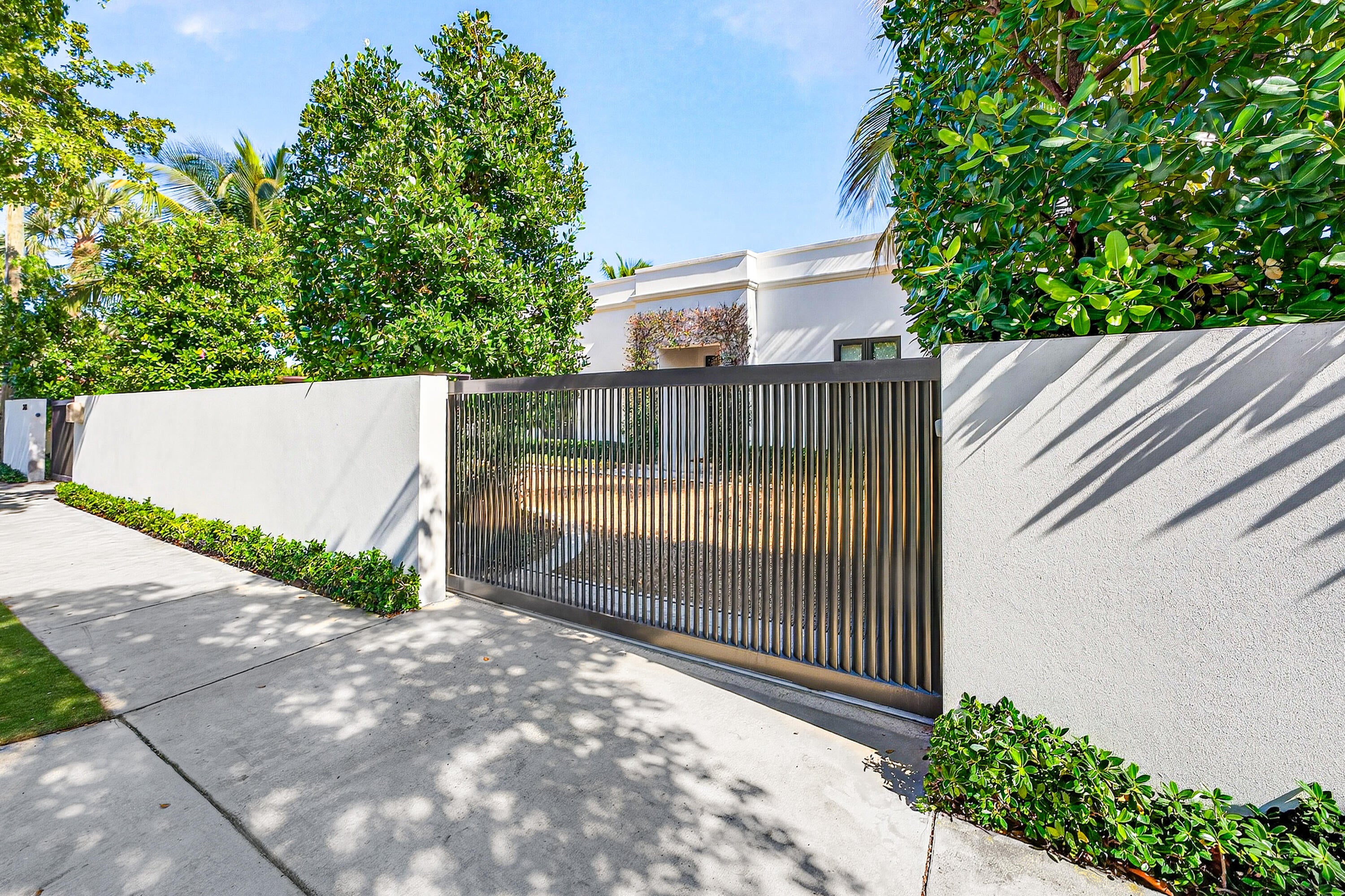 Fully custom, gated residence set along a tree-lined stretch of Olive Avenue, surrounded by mature olives and mahoganys. A truly one-of-a-kind layout centered around private courtyards creates seamless indoor-outdoor living with exceptional privacy.Features include 10-foot ceilings, expansive casement windows, European wide-plank oak floors, insulated interior walls for a remarkably quiet interior, and abundant natural light throughout. The kitchen is equipped with Sub-Zero and Wolf appliances, complemented by a whole-home water softener and purification system.The spacious yard offers a saltwater pool and spa, custom outdoor fireplace, and a private setting ideal for daily living and entertaining.Situated on an oversized 11,000+ square foot lot with a two-car garage. Renaissance modern architecture. Four bedrooms plus den. Minutes to Downtown West Palm Beach and Palm Beach International Airport. Walkable to restaurants, shops, and markets.