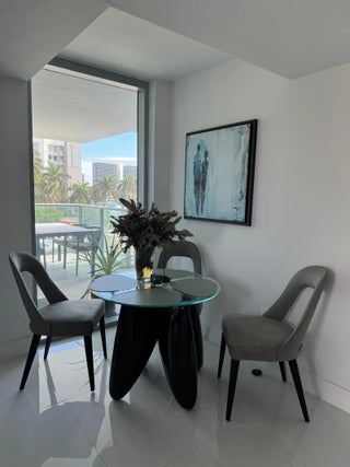 Situated within the distinguished community of Bay Harbor Islands, this impeccably designed two-bedroom, two-bathroom residence offers an exceptional living experience, combining contemporary elegance with practical functionality. Abundant natural light fills the space, highlighting a thoughtfully designed split floor plan. The gourmet kitchen is outfitted with premium, top-of-the-line appliances, including an under-counter wine cooler, catering to both culinary enthusiasts and entertainers alike. The expansive primary suite features a luxurious en-suite bathroom and generous walk-in closets.