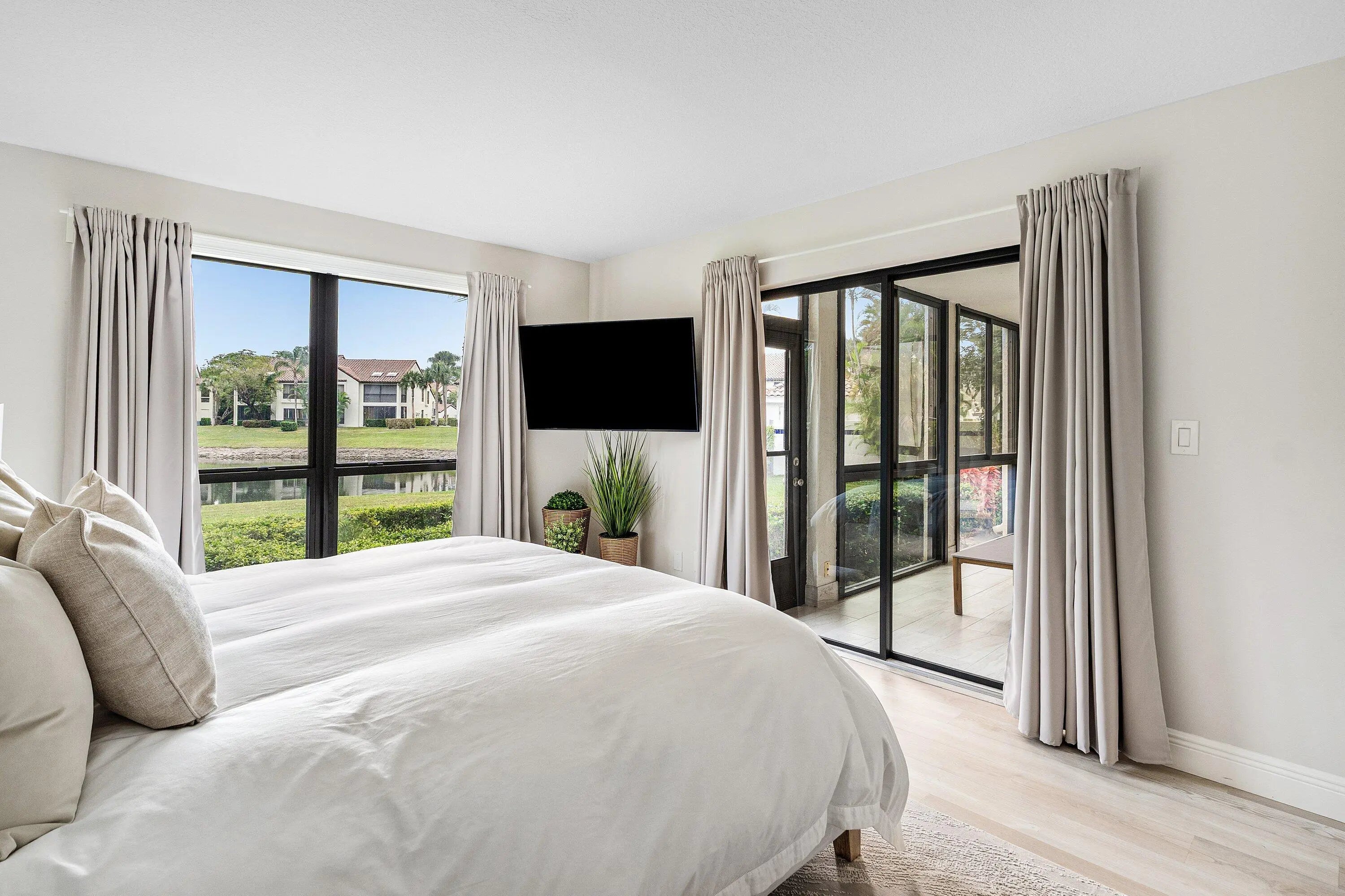 Welcome to your dream oasis at El Viento of Boca Pointe, where luxury meets tranquility in this stunning 1st floor condo. Newly renovated in 2024, this gem boasts an open-concept design that seamlessly blends style & comfort, making a perfect retreat of modern living Step inside to discover 3 spacious bedrms & 2 full baths all adorned with elegant vinyl flooring. The heart of the home features a sleek kitchen complete with quartz countertops, pristine white cabinets & SS appliances. The primary bdrm is a sanctuary of light, featuring fl to ceiling windows w views of the serene lake outside.Unwind in the glassed-in sunroom while enjoying the sites of S. Fl. Guardgated 24/7 for peace of mind. NON MANDATORY membership gives you the flexibility to enjoy all Boca Pt w/o pressure of commitment.