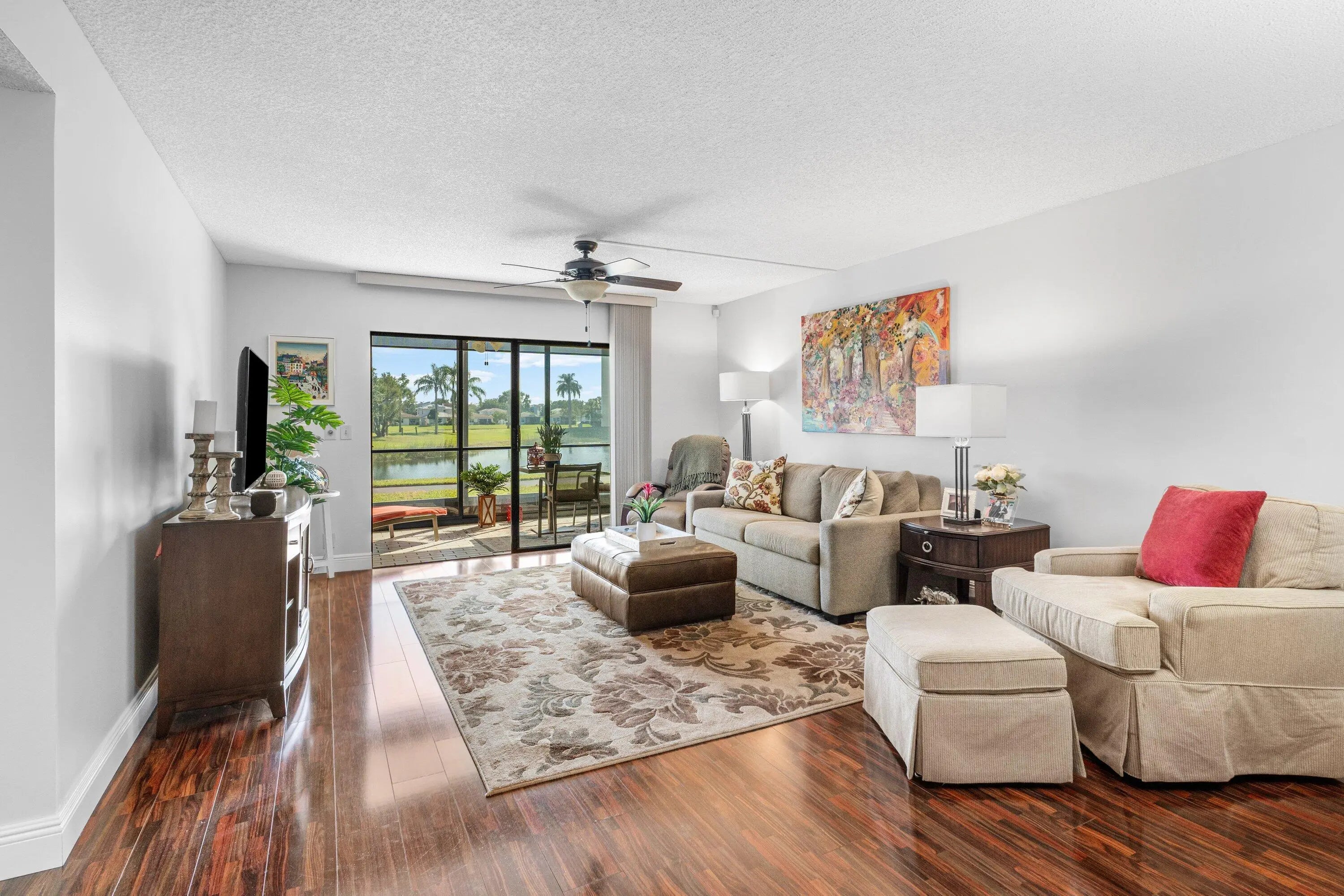 Enjoy relaxed Florida living in this charming 2-bedroom, 2-bath lake-view condo located in the highly desirable 55+ gated community of Huntington Lakes. This first-floor residence offers exceptional convenience, with a reserved parking space directly at your front door, making everyday living easy and accessible.The interior features upgraded tile and laminate wood flooring, a neutral color palette, and a bright, comfortable layout. Take in peaceful water views from both the living room and primary bedroom or enjoy quiet moments outdoors from the private garden-front patio and enclosed patio, perfect for morning coffee or afternoon relaxation. The home may be purchased furnished or unfurnished, offering flexibility to suit your needs.
