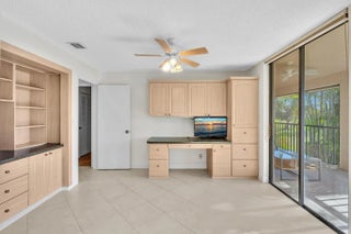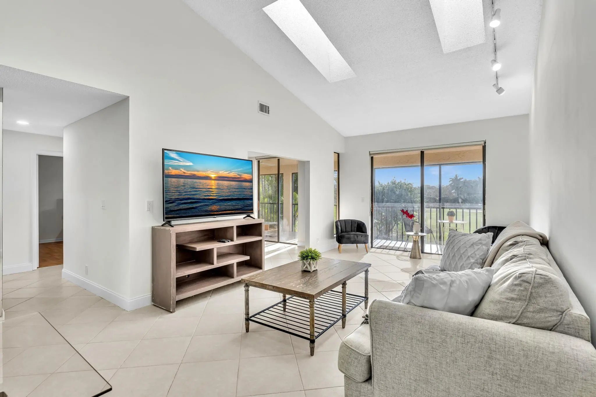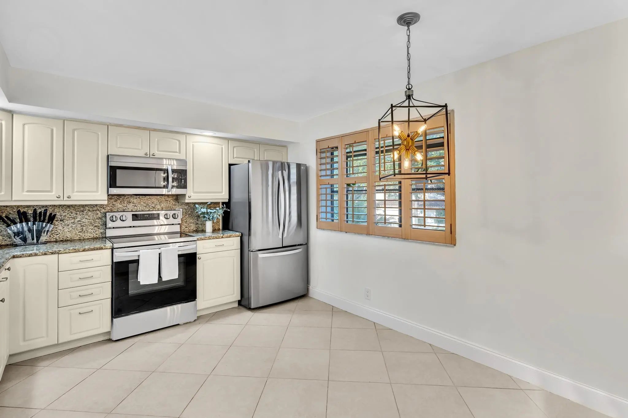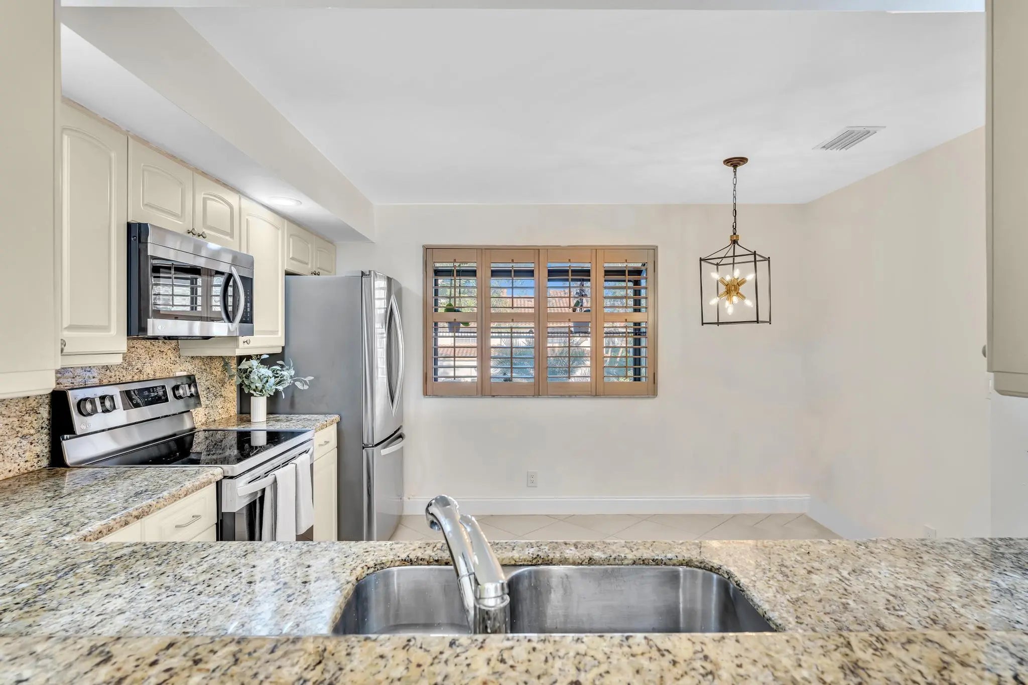 Light & bright second-floor residence located in the desirable La Mirada community of Boca Pointe. This 3-bedroom, 2-bath home features neutral tile flooring throughout the main living areas & has been freshly painted. The kitchen offers granite countertops & a charming breakfast nook, opening to a spacious, airy layout ideal for both everyday living and entertaining. The primary suite provides ample closet space, while the third bedroom is currently used as an office/den & can easily be converted back to a bedroom. Enjoy serene golf & water views from the large screened patio. Additional features include a one-car garage, dedicated laundry room, 24-hour manned gate, and access to the community pool. MEMBERSHIP IS OPTIONAL. Excellent location, close to shopping & lots of restaurants!