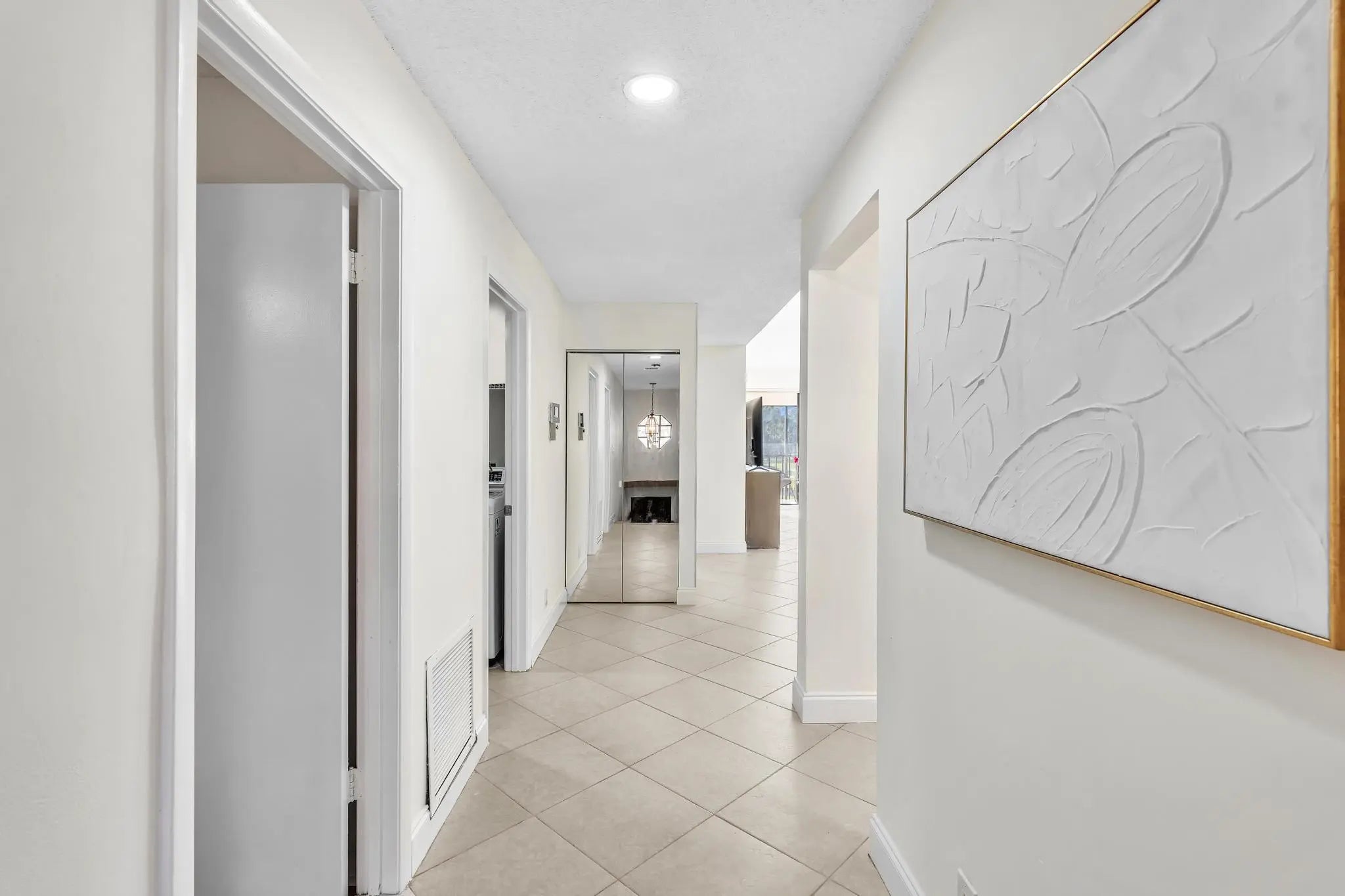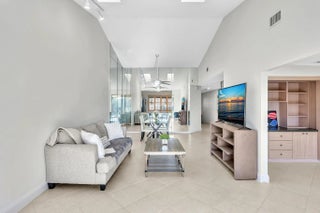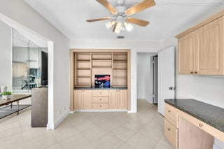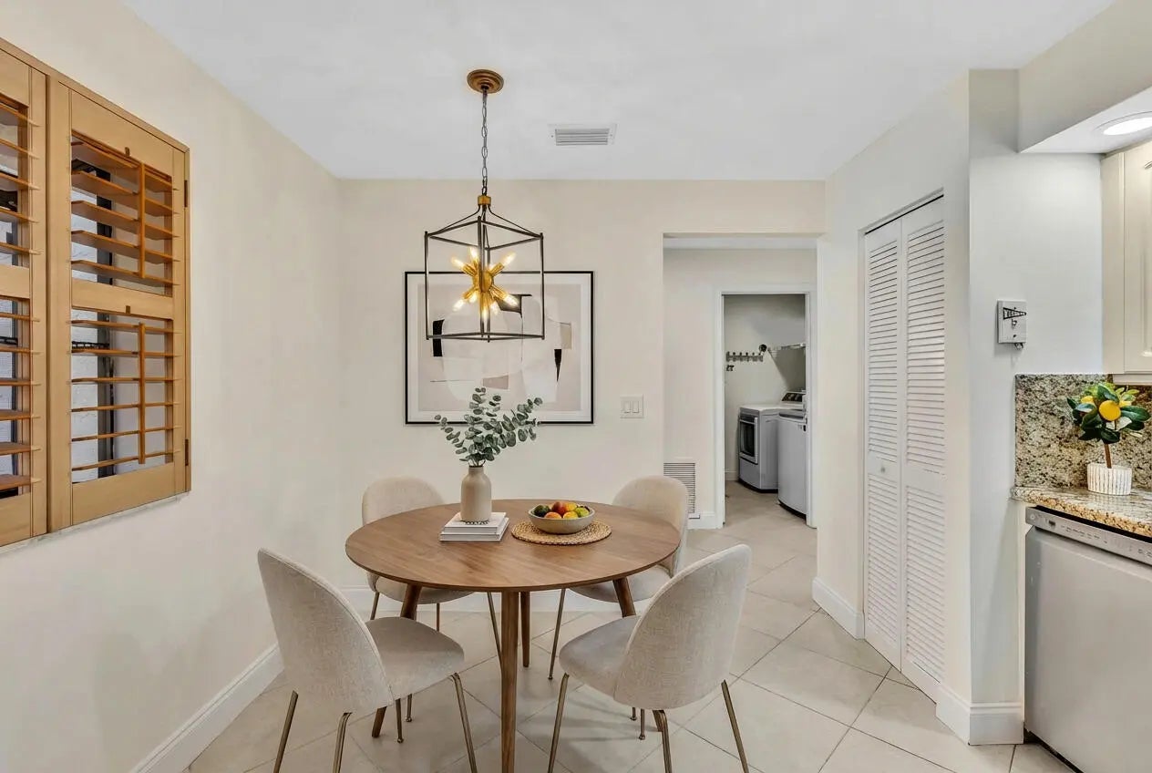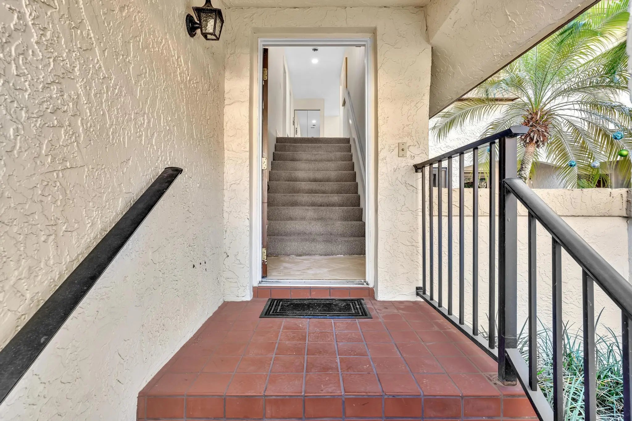 Light & bright second-floor residence located in the desirable La Mirada community of Boca Pointe. This 3-bedroom, 2-bath home features neutral tile flooring throughout the main living areas & has been freshly painted. The kitchen offers granite countertops & a charming breakfast nook, opening to a spacious, airy layout ideal for both everyday living and entertaining. The primary suite provides ample closet space, while the third bedroom is currently used as an office/den & can easily be converted back to a bedroom. Enjoy serene golf & water views from the large screened patio. Additional features include a one-car garage, dedicated laundry room, 24-hour manned gate, and access to the community pool. MEMBERSHIP IS OPTIONAL. Excellent location, close to shopping & lots of restaurants!