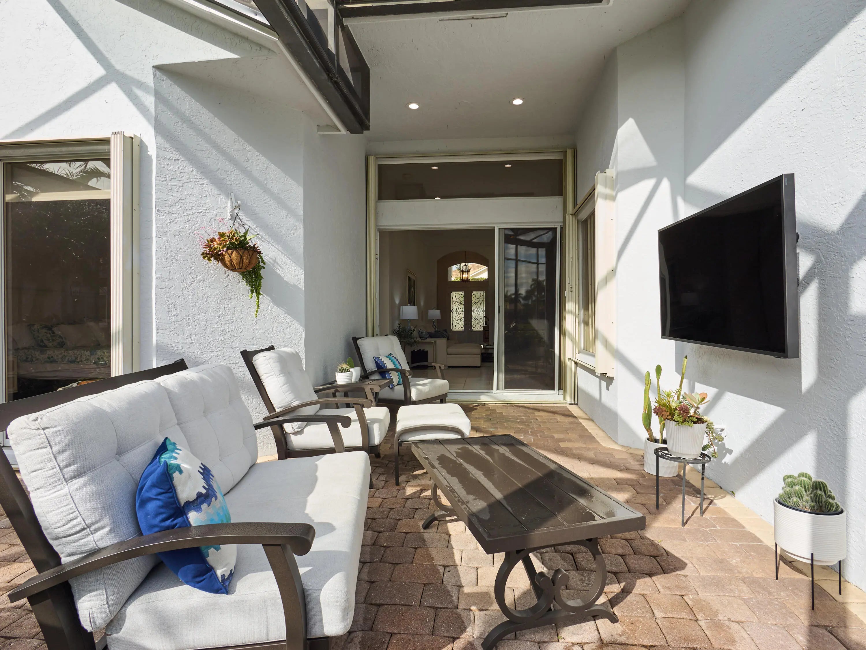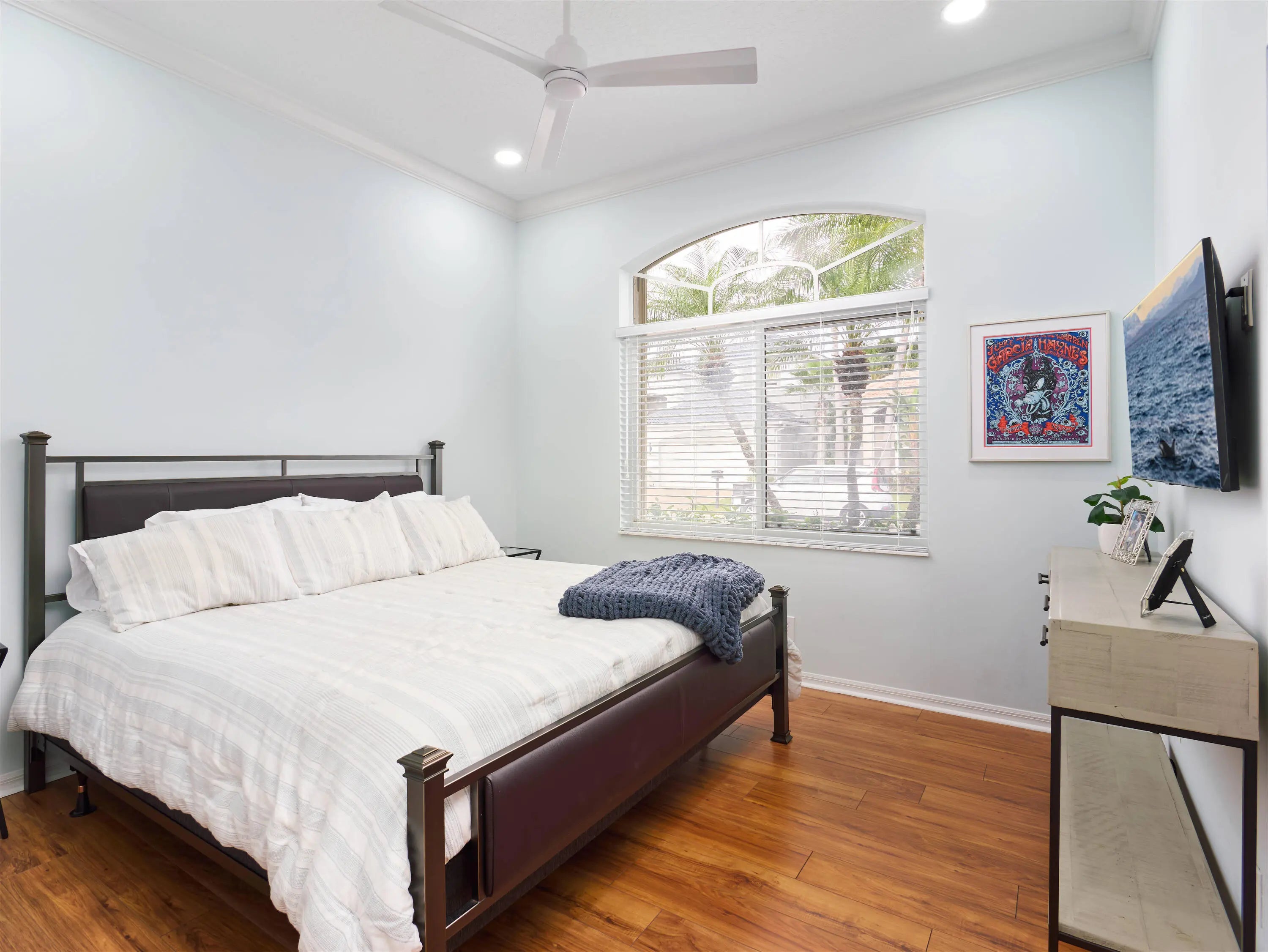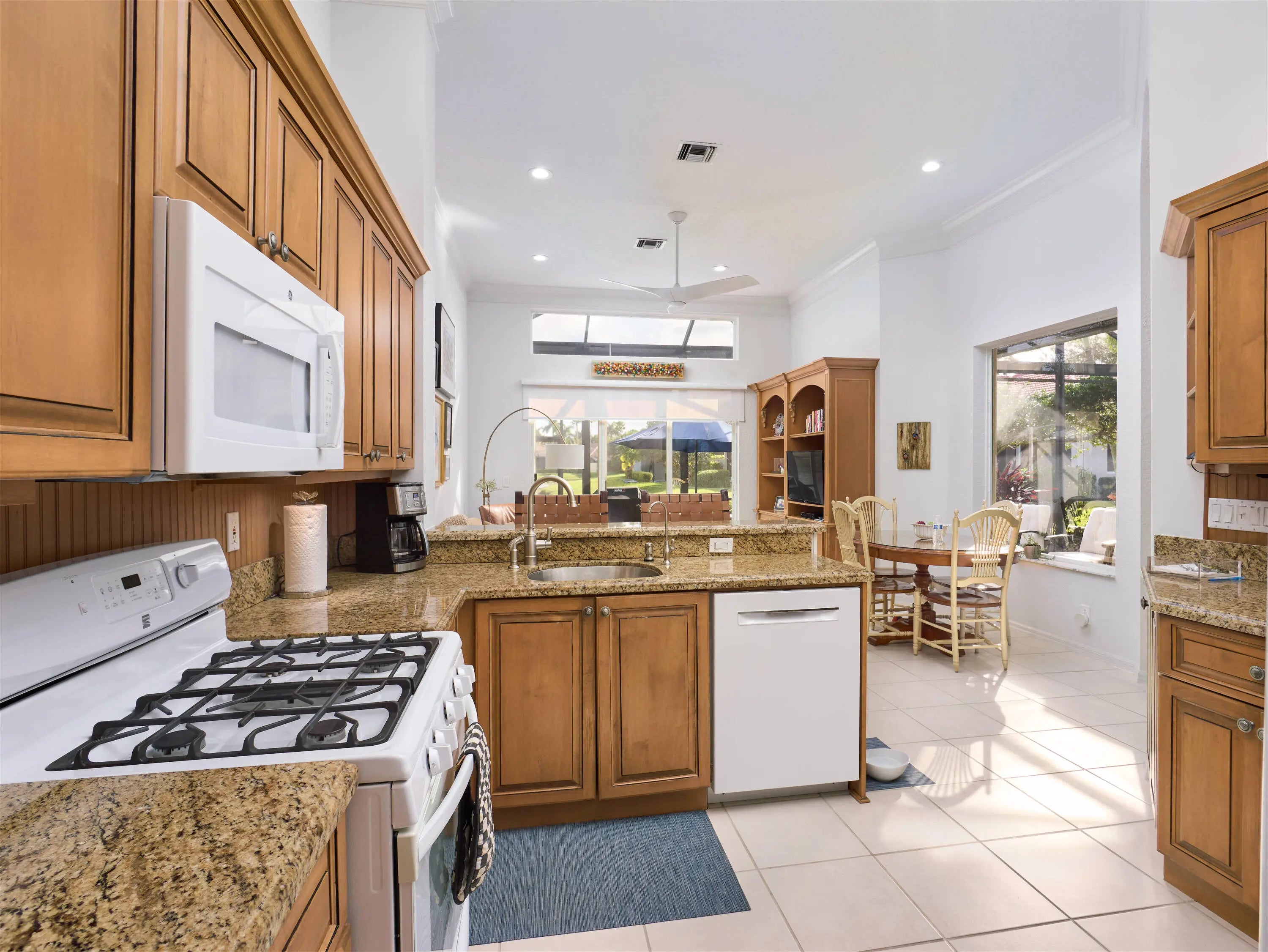 LOCK IN LOWER CLUB MEMBERSHIP RATES! MUST BE UNDER CONTRACT BY APRIL 2 AND CLOSED BY JUNE 12 TO AVOID UPCOMING FEE INCREASES. DON'T MISS THIS WINDOW FOR INSTANT SAVINGS! Beautifully maintained waterfront home featuring a new roof (2023), fresh interior paint (2025), and a new irrigation system (2025) for added peace of mind. This bright, open residence offers spacious living areas with gleaming tile flooring, soaring ceilings, recessed lighting, and elegant architectural details throughout. The kitchen is both warm and functional with rich wood cabinetry, expansive granite countertops, and an open layout ideal for entertaining. A light-filled family room connects seamlessly to the outdoors through large sliding glass doors. The primary suite is a relaxing retreat with wood-style flooring,