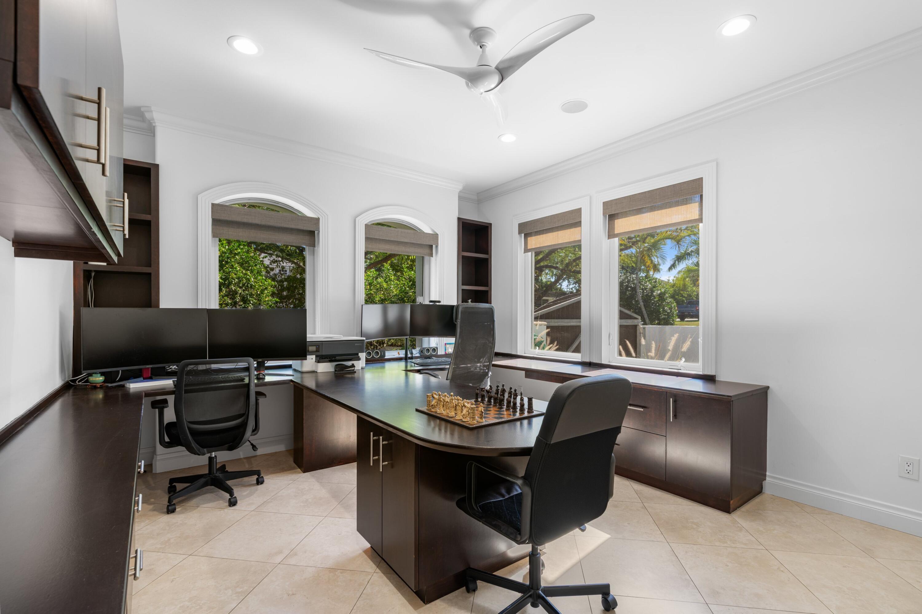Gorgeous custom-designed luxury estate! Prime East Boca Raton Location. This exceptional 7-bedroom, thoughtfully designed with blends elegance & modern convenience. Large atrium-style foyer, Brazilian cherry hardwood floors. Two-sided natural gas fireplace. Gourmet chef's kitchen, top-tier appliances, Sub-Zero Fridge, GE Gas range, Bosch dishwashers, filtered water systems & custom pantry. First Floor Primary Suite. Bonus 2nd Primary Suite, private balcony, dual vanities, a steam shower & soaking tub, Tropical outdoor oasis with enclosed saltwater pool, spa, cabana bath & summer kitchen. Retractable screens & Fruit trees! Gated boat parking, 3 Car GA & 10-car Driveway. Enclosed privacy wall, and truly low-maintenance landscaping, Smart home. Whole House Gen. Impact Glass. Luxury Living.