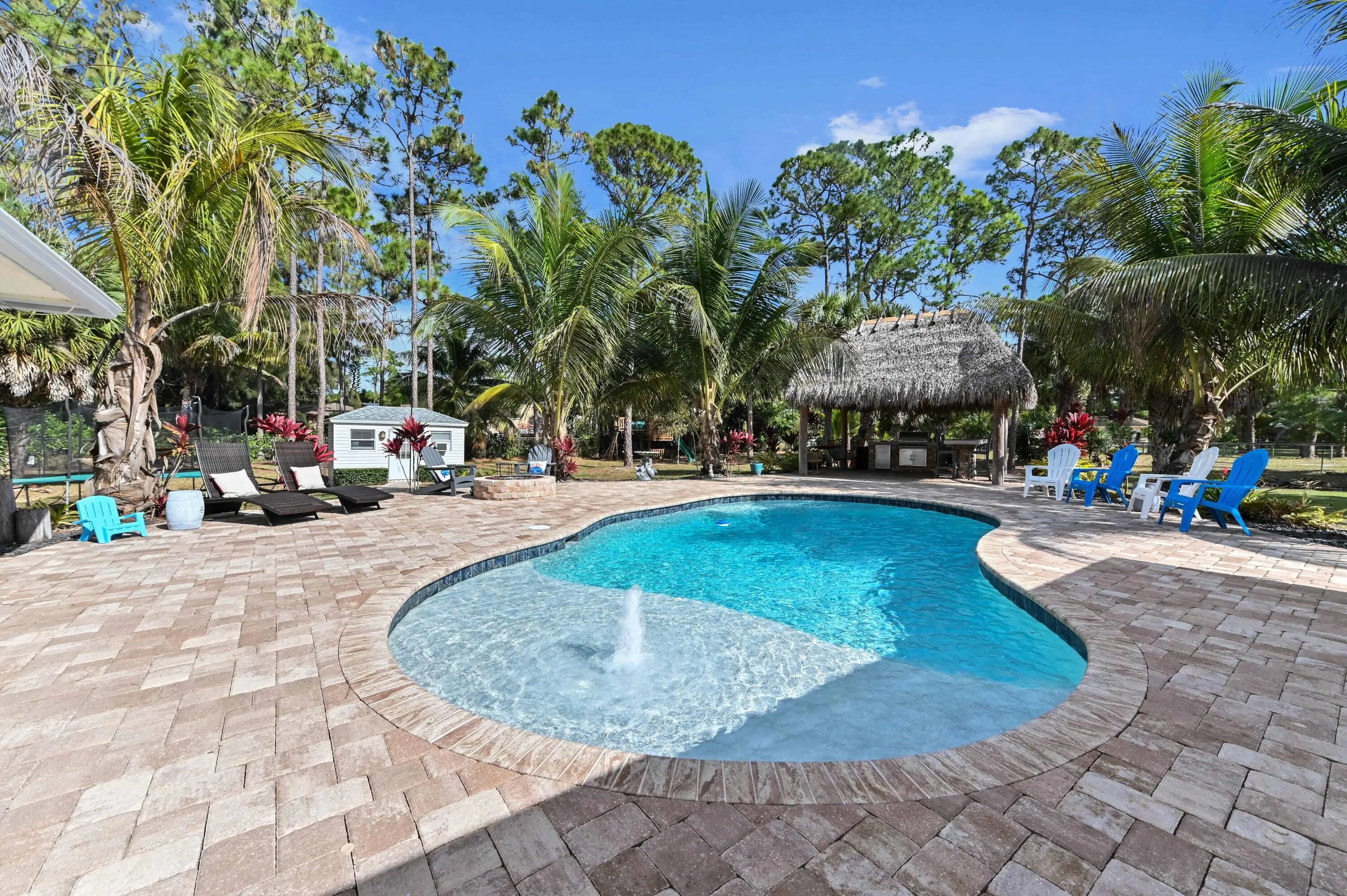 Built-in Grill, Covered Patio, Fence, Open Patio, Shed, Shutters, Summer Kitchen
