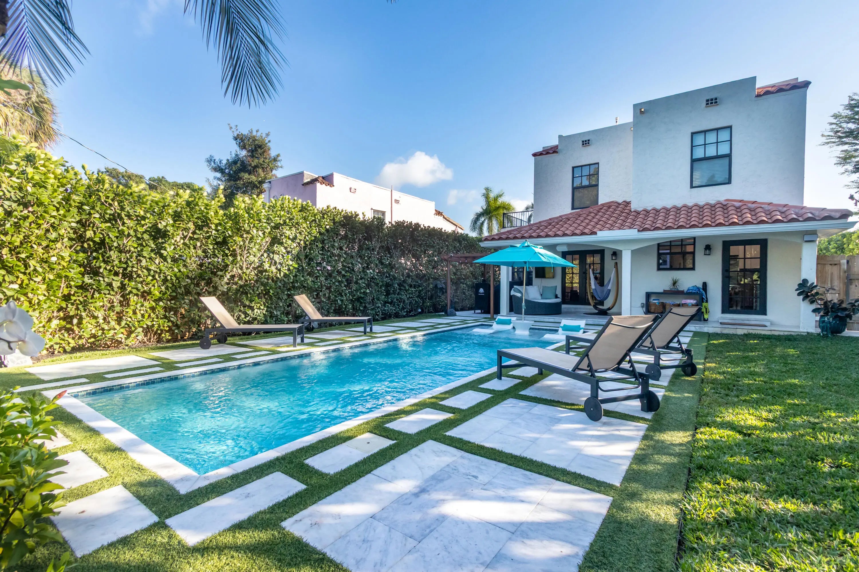 Fully rebuilt in 2021, this beautiful 3 bd/2.5 bath Spanish style house offers modern construction conveniences with historic aesthetics in Northwood Hills, minutes from downtown West Palm Beach. Underground power lines, wiring, water main/sewer line & plumbing are all new. First floor boasts Bruce Laurel Oak floors, wood cabinetry, quartz counters, fireplace, office/den, & a half bath/laundry room. Upstairs is the en-suite master w/ private balcony, plus two guest bedrooms & full bath. Outside there's a covered loggia finished w/ stone flooring, professional landscaping, & sophisticated salt-water pool has a sun shelf & both a heater & chiller. Other upgrades: CAT 5 ready, whole house water softener, EV charging station, CCTV security system, waterproof decking, landscape lights,