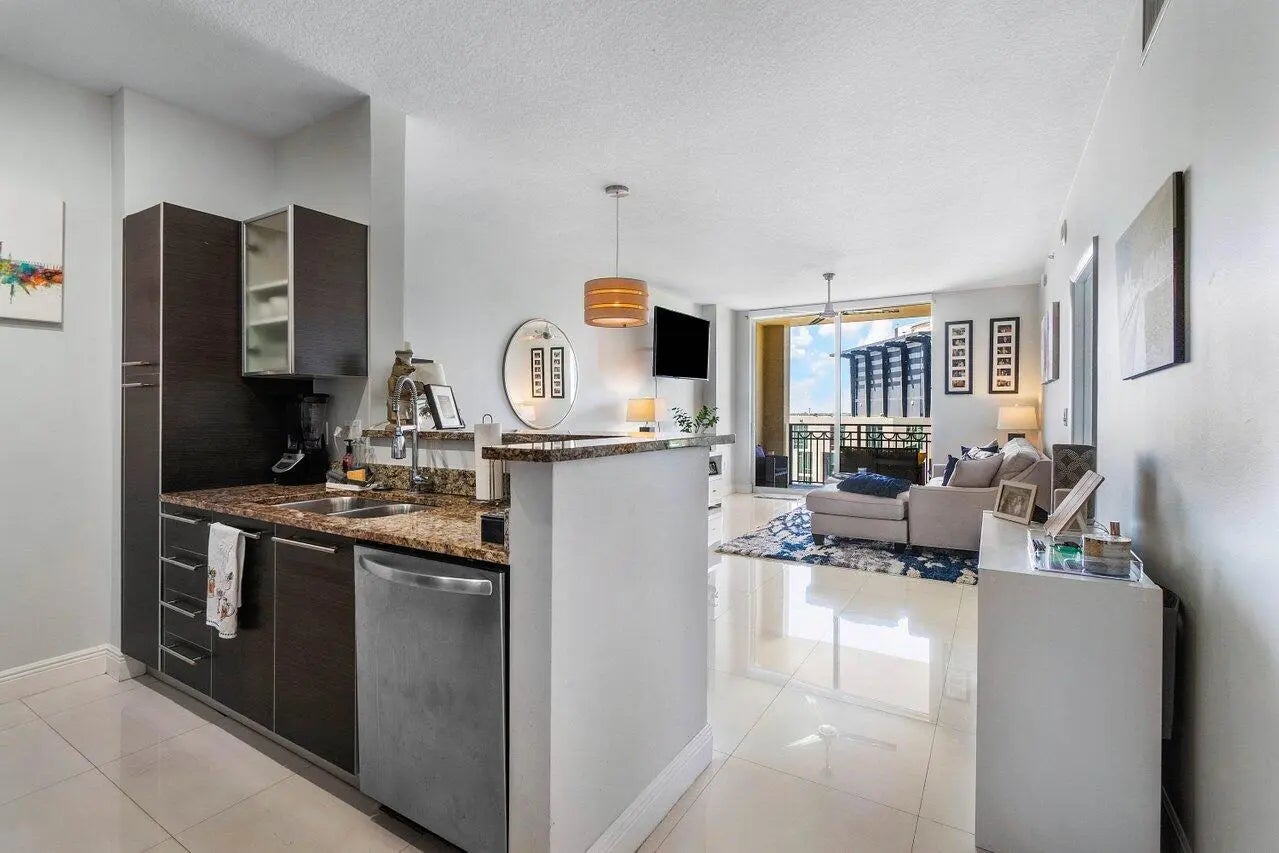 Discover the epitome of urban living at 550 Okeechobee Blvd, Unit 1112, within the prestigious Cityplace South Tower in downtown West Palm Beach. This exceptional 1-bedroom, 1-bathroom residence offers a lifestyle of convenience and sophistication. Situated in the heart of the vibrant Cityplace district, you'll enjoy proximity to shops, restaurants, the Kravis Center, and the Convention Center just steps from your front door. Step inside this elegant urban retreat to find upgraded flooring throughout, creating a warm and inviting ambiance. The kitchen boasts granite countertops and stainless steel appliances, making meal preparation a delight. Resident only amenities include 86' Infinity Edge heated pool, hot tub, fully equipped outdoor kitchen, and fitness center.
