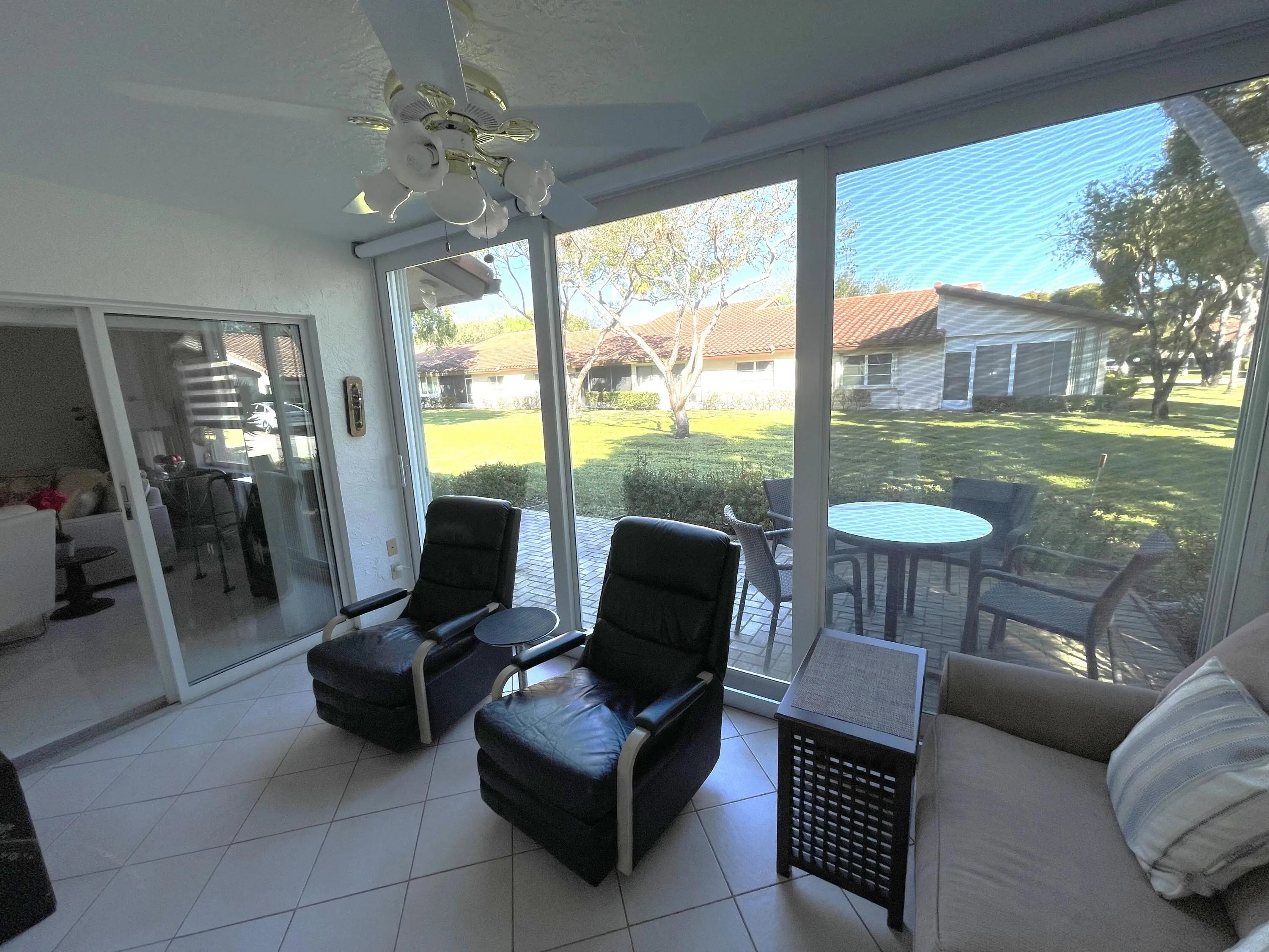 Light, Love & Privacy in This Corner Villa!Step into a home that truly feels special. This sun-filled corner villa offers rare privacy with no neighbors on the right side or in front, creating a peaceful, open atmosphere from the moment you arrive. Filled with natural light and good energy, every space feels welcoming and calm.The renovated kitchen and bathrooms blend modern comfort with timeless style. Enjoy mornings and evenings in the enclosed patio with air, or step outside to the paved exterior patio--perfect for relaxing, entertaining, or simply soaking in the quiet. Recent updates include A/C (2020), water heater (2020) and impact sliding doors on the patio for worry-free living.