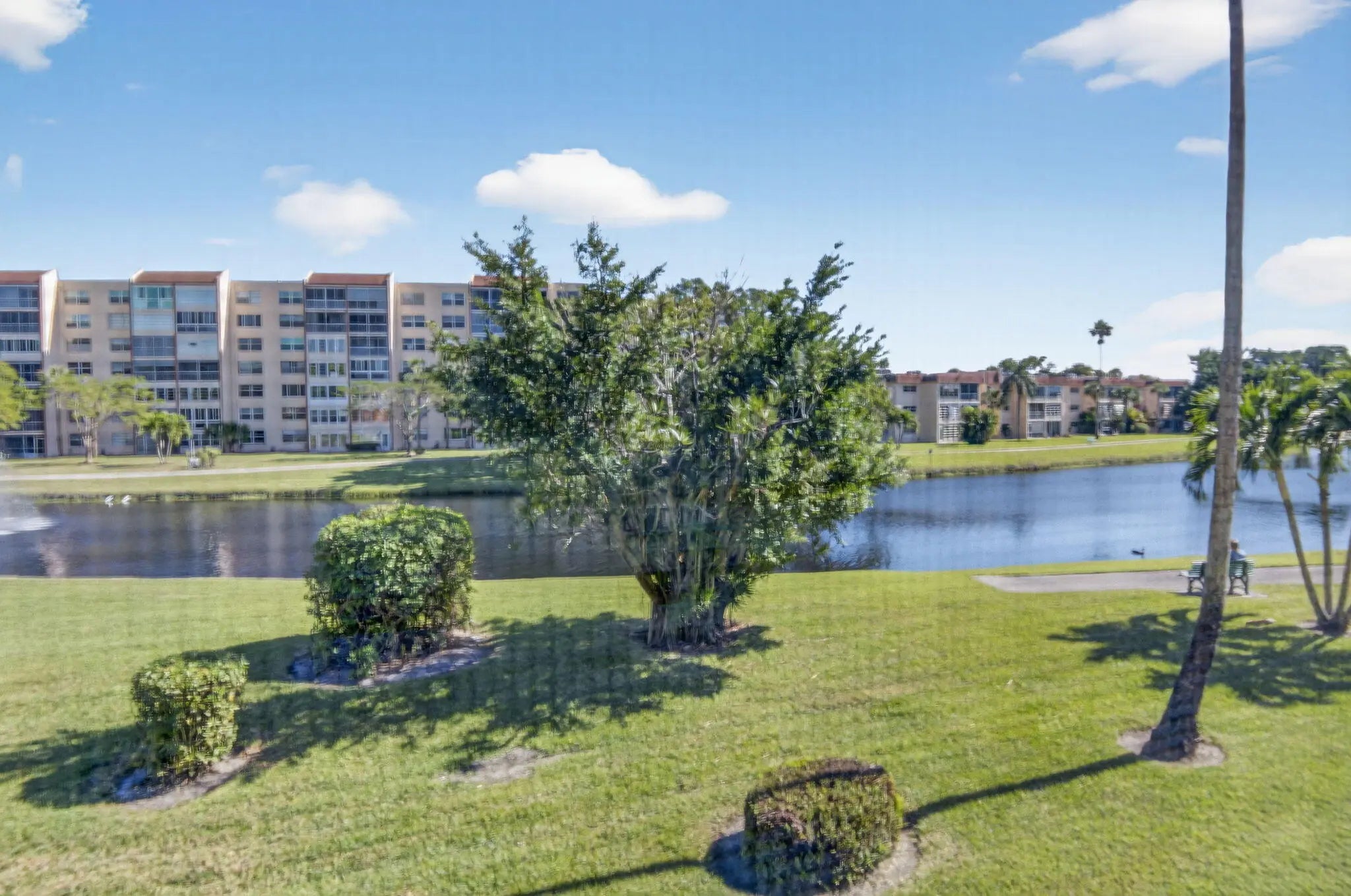 What more could you wish for 2 bedroom, 2 bath condo in an elevator building with a Florida room offering a serene lake view. Full eat in kitchen with laundry closet.Convenient trash chute and parking in front of building. 2 pools and clubhouse with activities. Shopping, restaurants and movie theater within minutes walk.