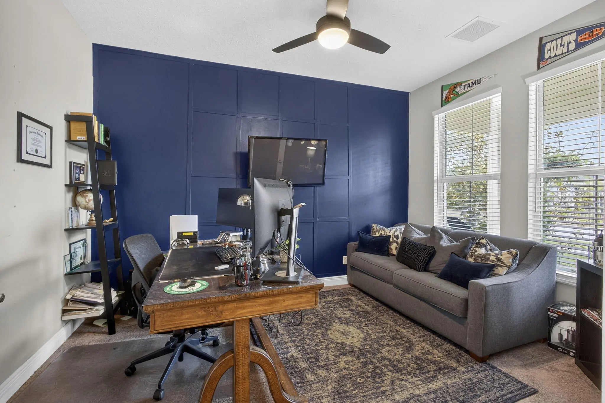 Welcome to this beautifully designed Barkley Model home, tucked away on a quiet cul-de-sac and offering the perfect blend of comfort, space, and functionality. Thoughtfully laid out for today's lifestyle, this home is ideal for dual remote workers, featuring both a dedicated home office and a pocket office for added flexibility.Abundant natural light fills the home, highlighting the high ceilings and open, airy feel throughout. Step outside to a relaxing screened patio overlooking a large, private backyard, perfect for entertaining, unwinding, or enjoying peaceful outdoor living.This home offers privacy, versatility, and modern convenience in a serene setting--an exceptional opportunity you won't want to miss.