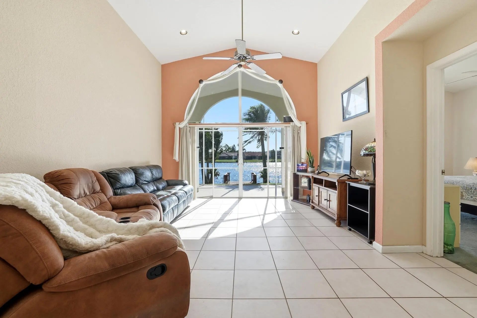 Prime Waterfront Living in Sunset Point. Experience breathtaking sunset views over Lake Wellington in the highly sought-after Sunset Point community. Lovingly maintained by its original owner, this spacious 3-bedroom, 2-bath single-family residence offers soaring ceilings, abundant natural light, and a thoughtfully designed layout ideal for both everyday living and entertaining.Step outside to your expansive 15' x 35' screened-in patio with a partially covered roof--perfect for year-round relaxation, al fresco dining, or hosting guests while enjoying tranquil lake views. A 2-car garage adds convenience and ample storage.