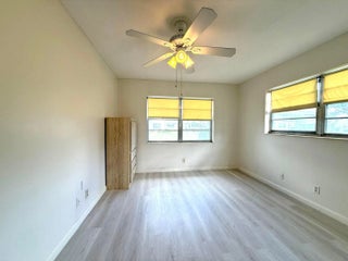 LOCATION! LOCATION! RARE GROUND FLOOR CORNER 2BED 1.5 BATH CLOSE TO THE CLUBHOUSE & HAVERHILL GATE.MOVE IN READY. PARTIALLY FURNISHED, WHITE KITCHEN WITH DISHWASHER. CENTRAL AIR, HURRICANE SHUTTERS. LANAI HAS A DOOR TO GO OUT AND ENJOY THE OUTDOORS. WELL MANAGED ASSOCIATION. Roomy closets (one walk-in),laundry room, assigned parking spot plus visitor parking available; local bus for errands/shopping both within & outside The Village; COME & ENJOY RESORT STYLE LIVING IN THIS GATED COMMUNITY FOR ACTIVE ADULTS 55 +. CLUBHOUSE features a theater, indoor pool, card room, community/party room, billiard room ,shuffle board ,tennis , pickleball ,bocce and two outdoor pools.