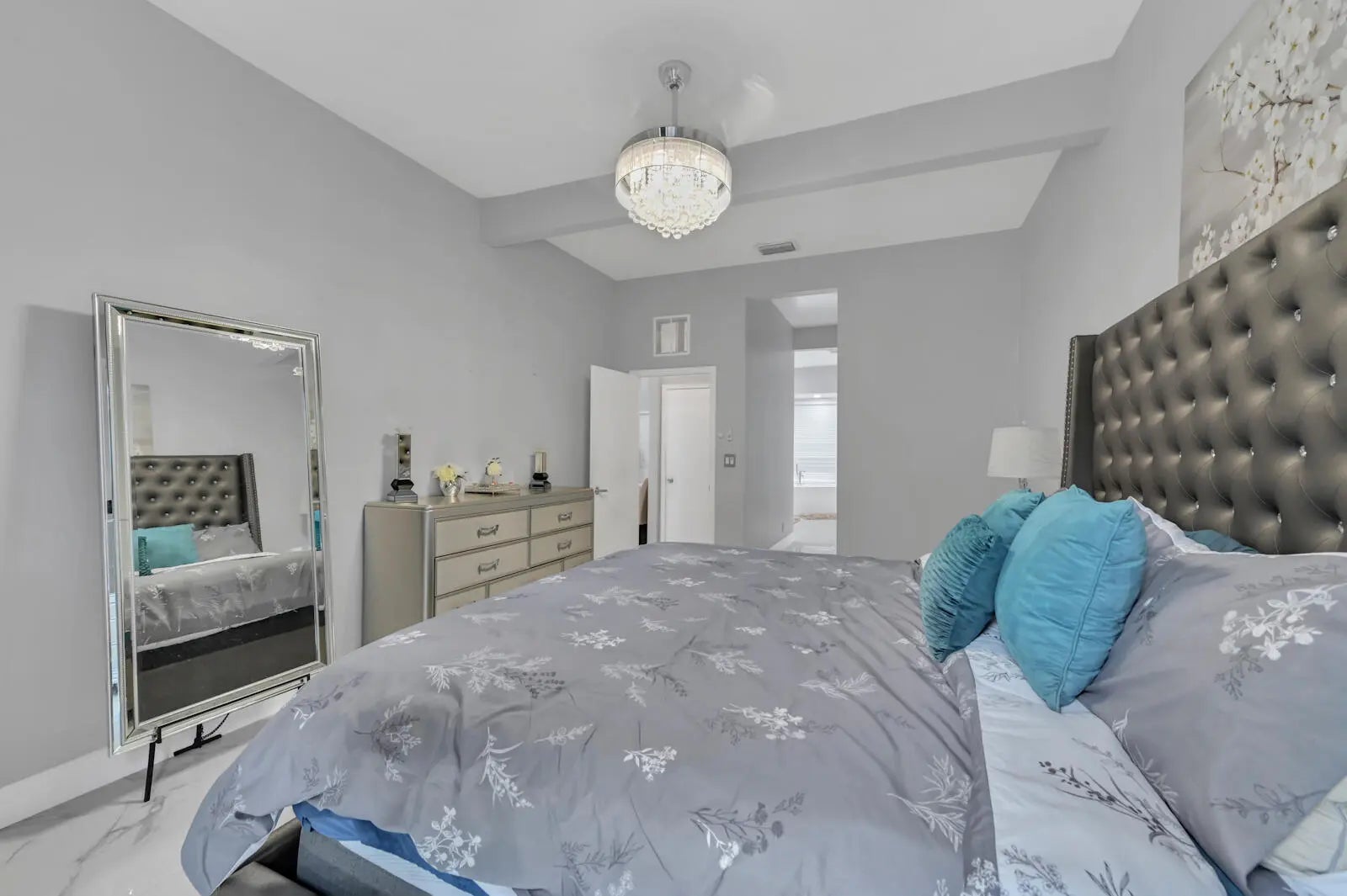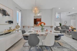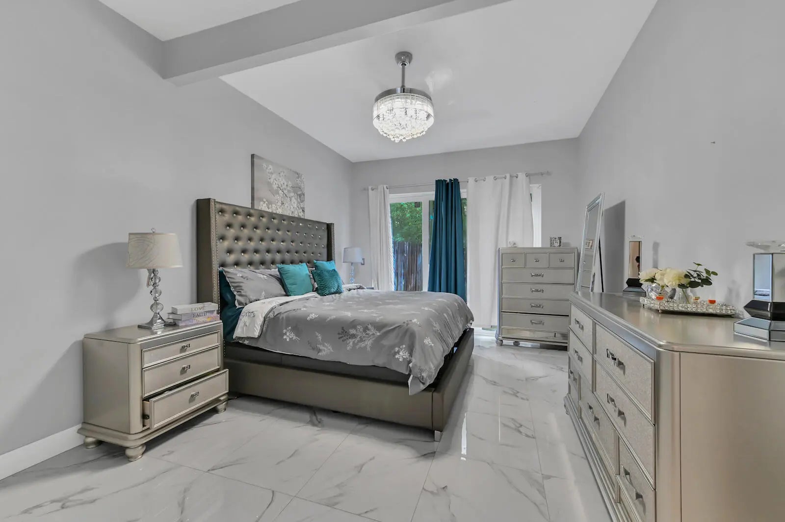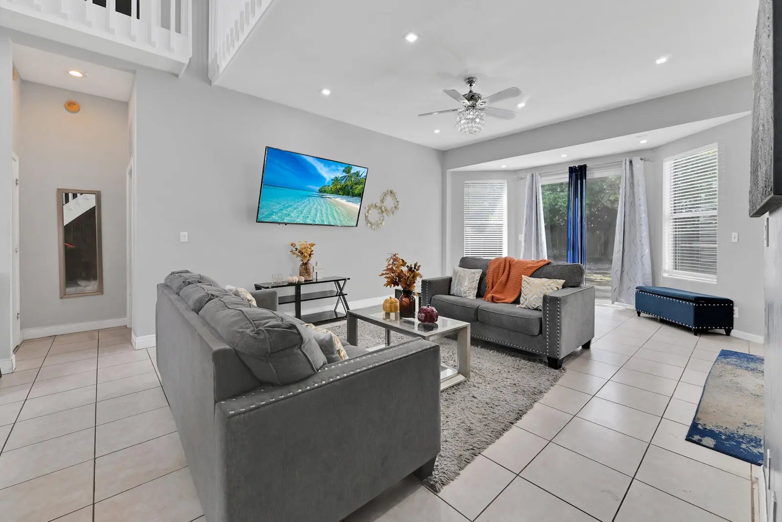 Welcome to this two-story home in the sought-after Foxhall community of West Palm Beach, with 3 bedrooms and 3.1 bathrooms.. The residence makes a dramatic first impression with its two-story foyer and a chic, open-concept main floor defined by polished tile flooring and contemporary gray walls. The spacious living and dining areas are illuminated by recessed lighting and a stylish chandelier, providing the perfect setting for entertaining. The kitchen offers a warm, inviting contrast with its rich, dark wood cabinetry, center island, and granite countertops, seamlessly blending traditional warmth with modern convenience.