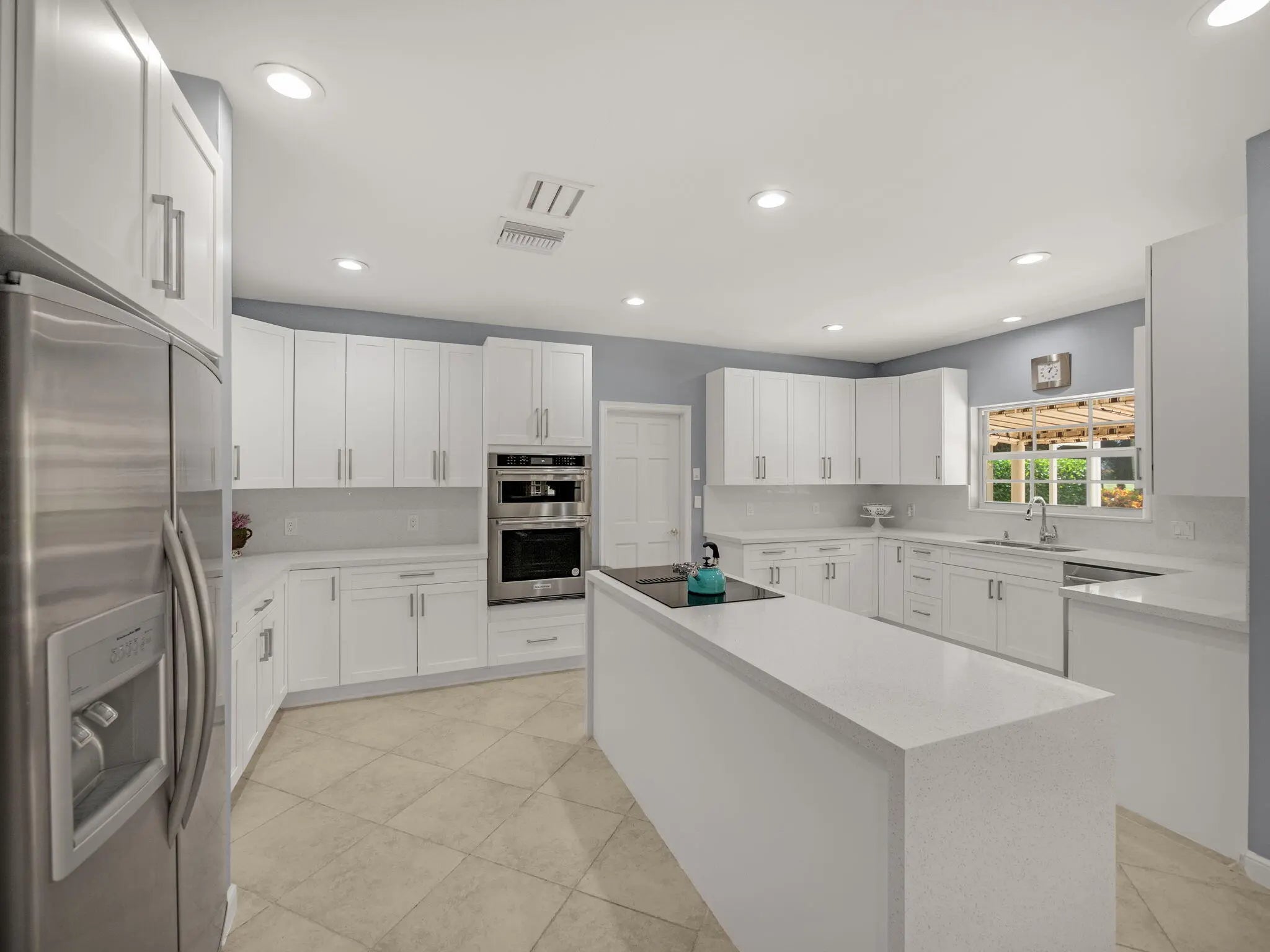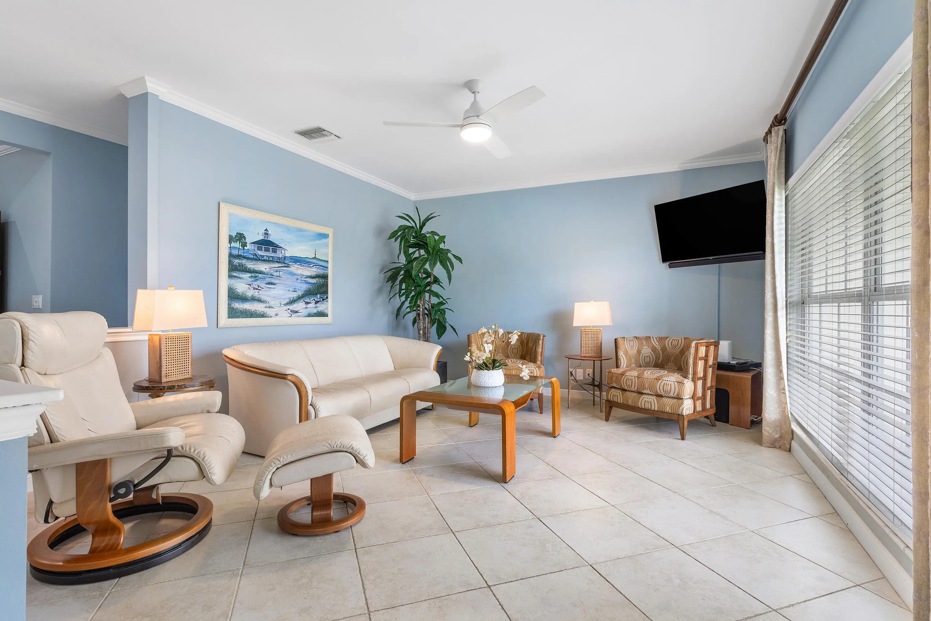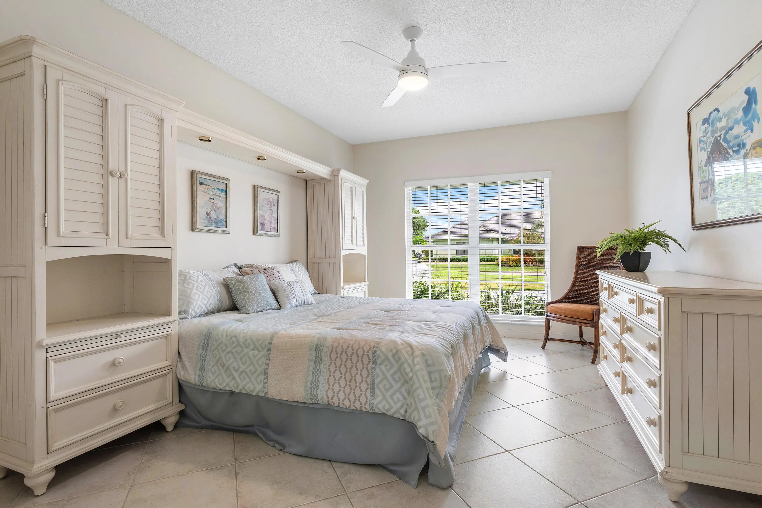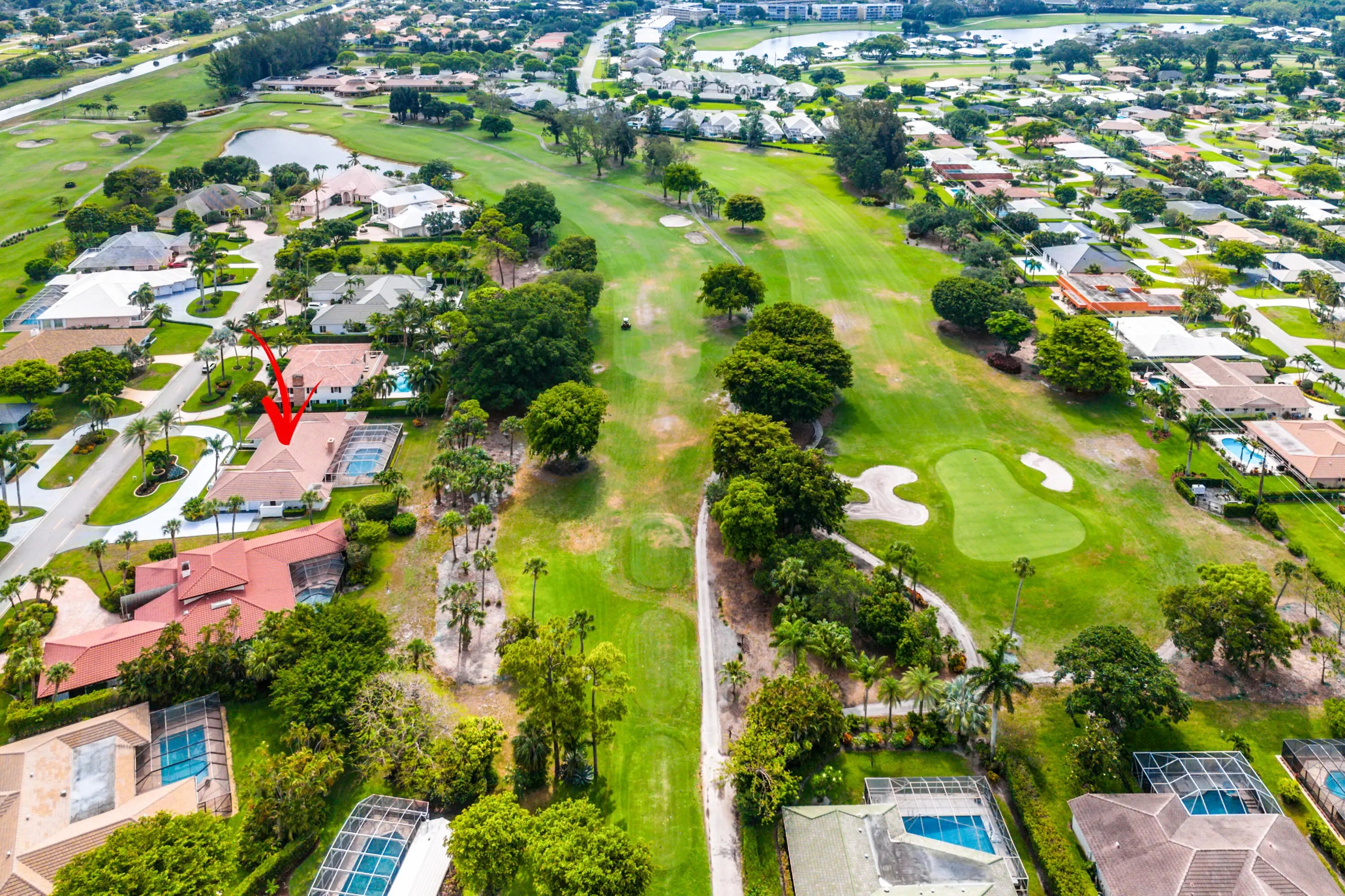 Discover comfortable luxury in this expansive single-story residence, ideally positioned on one of Atlantis' premier golf-front streets. Set on an impressive +/-0.45-acre lot overlooking the Atlantis Country Club, this thoughtfully designed home offers 4 bedrooms plus a dedicated office or flex space, and 4.5 bathrooms. A desirable split-bedroom floor plan awaits providing privacy and functionality, with each bedroom featuring its own ensuite bath. The primary suite is a true retreat, offering a private sitting room ideal for an office, gym, or lounge, along with French doors that frame tranquil pool and golf course views. The suite is complete with a spacious walk-in closet and a well-appointed primary bath featuring a soaking tub, glass-enclosed shower, dual vanities, and bidet.