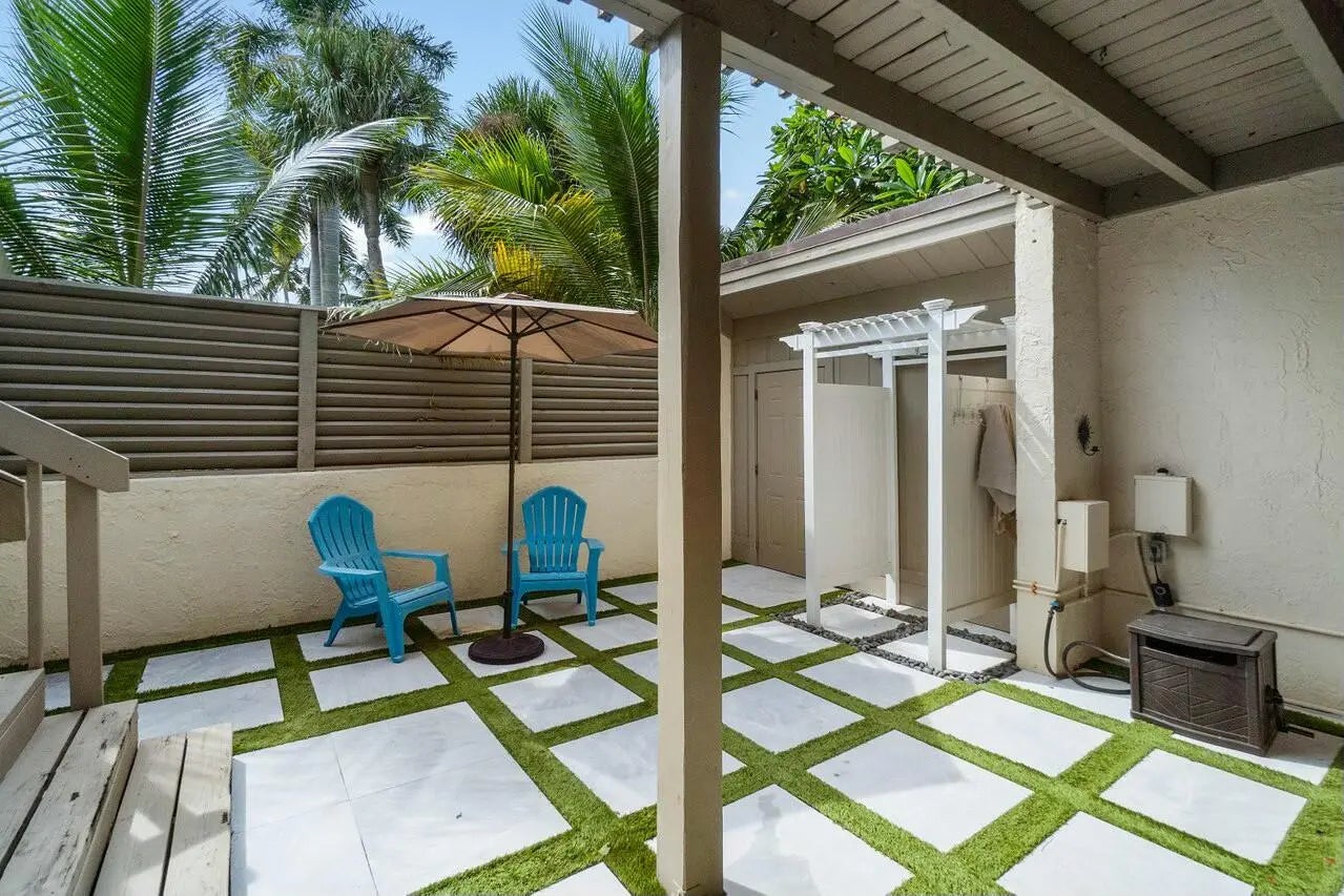 Rarely available turnkey annual rental by the beach. Experience the ultimate coastal lifestyle in this beautifully appointed and fully furnished 2-bedroom, 2-bath residence, located just a short walk from the beach. Perfectly situated in a prime location, this renovated gem is designed for comfort and convenience. Step inside to discover stylish interiors featuring modern finishes and tasteful furnishings. The spacious living areas are bathed in natural light, creating an inviting and relaxing atmosphere. The well-equipped kitchen offers everything you need for effortless meal preparation. Outside, a private courtyard awaits, ideal for storing your kayak or paddleboard. Fire up the grill for al fresco dining or unwind in the hot tub after a day of sun and surf! Florida lifestyle awaits!