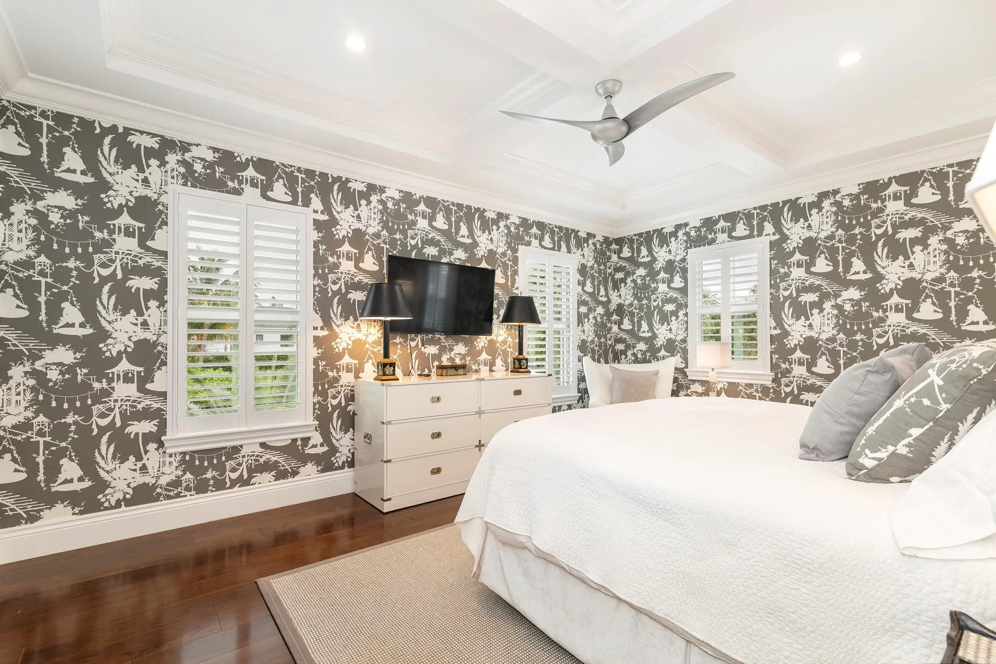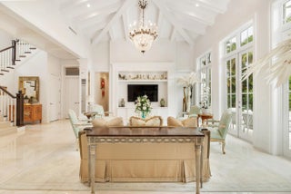 Impressively constructed British West Indies style home in So So. Just two lots off Flagler Drive, this gorgeous 4BR/4.5BTH home features soaring ceilings, custom millwork, marble floors, light & bright open floor plan perfect for entertaining and South Florida living. 1st floor features cathedral beamed ceiling great room, formal dining room, gourmet eat-in kitchen, club room with bar, office with built-ins, junior suite with cabana bath, powder room and large lanai with fireplace overlooking custom spa & pool. Gracious 2 story entry & staircase lead to primary suite with large balcony offering water views, 2 large walk-in closets & gorgeous bathroom. Two additional luxurious guest bedrooms with ensuite baths, upstairs laundry, mud room off oversized two car garage with tons of storage.