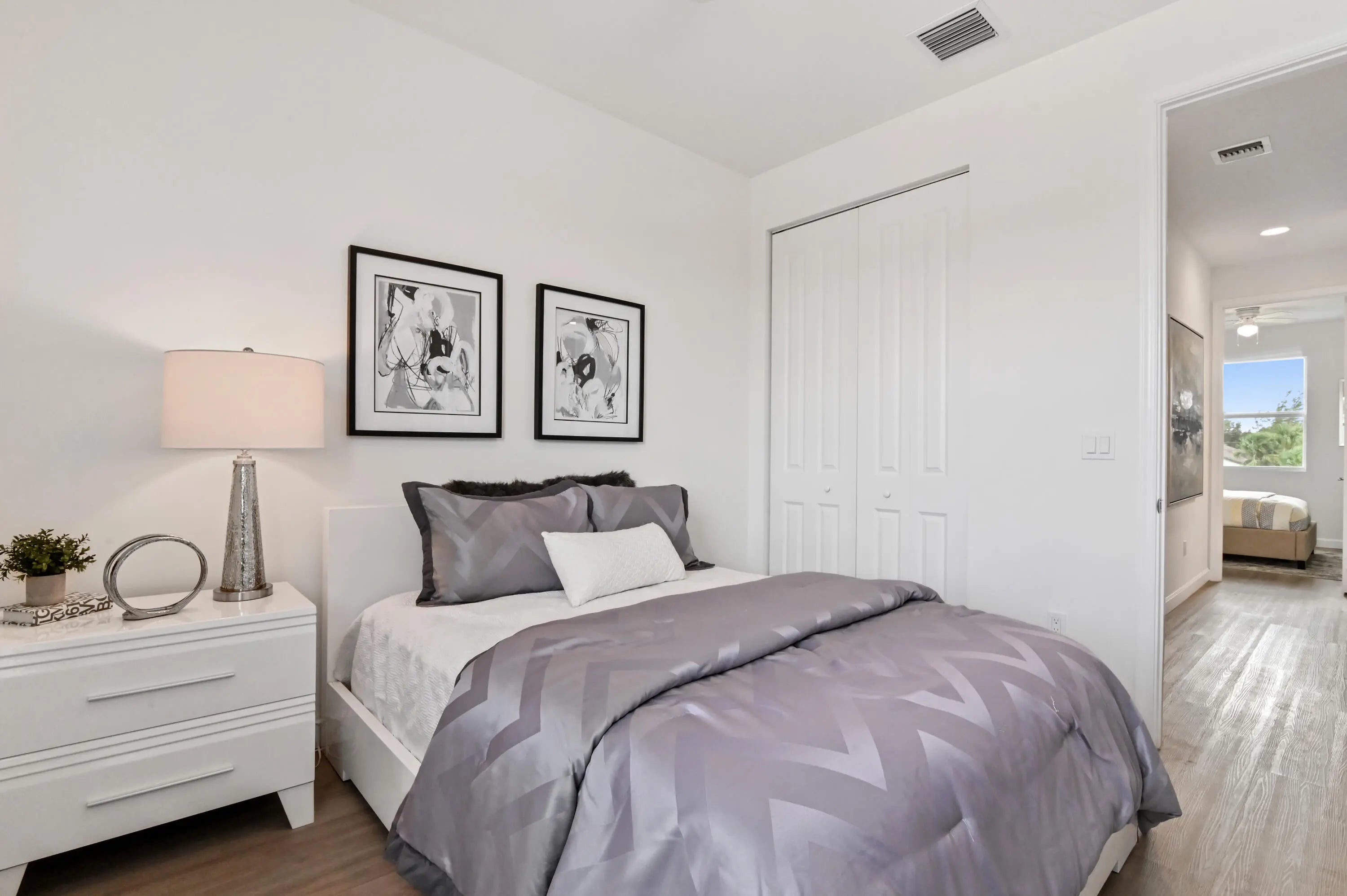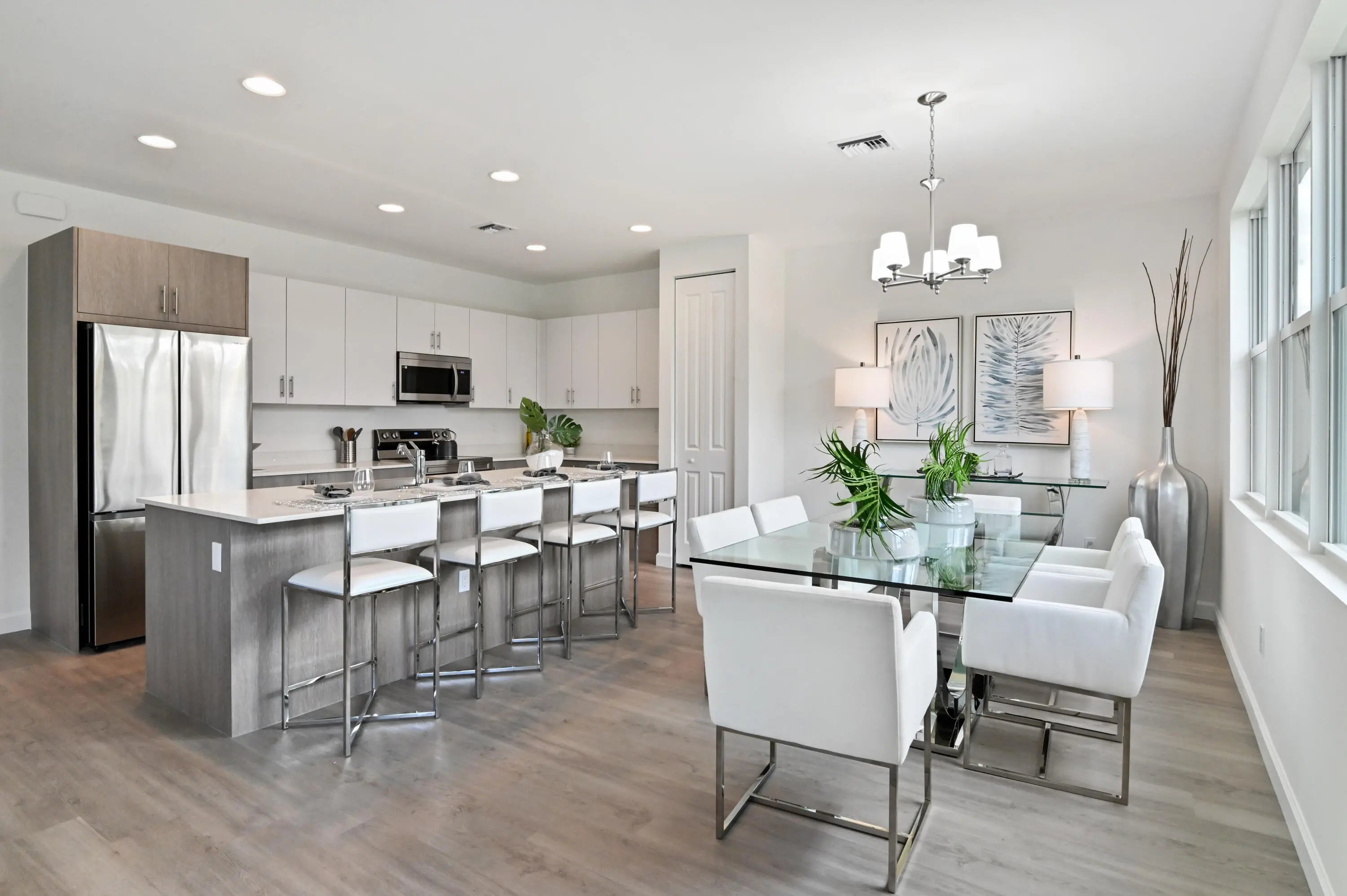 Check out these fantastic new homes in gated Symphony Place, right in the heart of West Palm Beach. Get ready to fall in love with this place - these beautiful new homes have 4 bedrooms, 2.5 baths, and a 2-car garage. Plus, it's loaded with wonderful features like impact windows, high ceilings, and sleek luxury vinyl flooring. The kitchen is a dream, featuring modern European cabinets, quartz counters, and stainless steel appliances.
