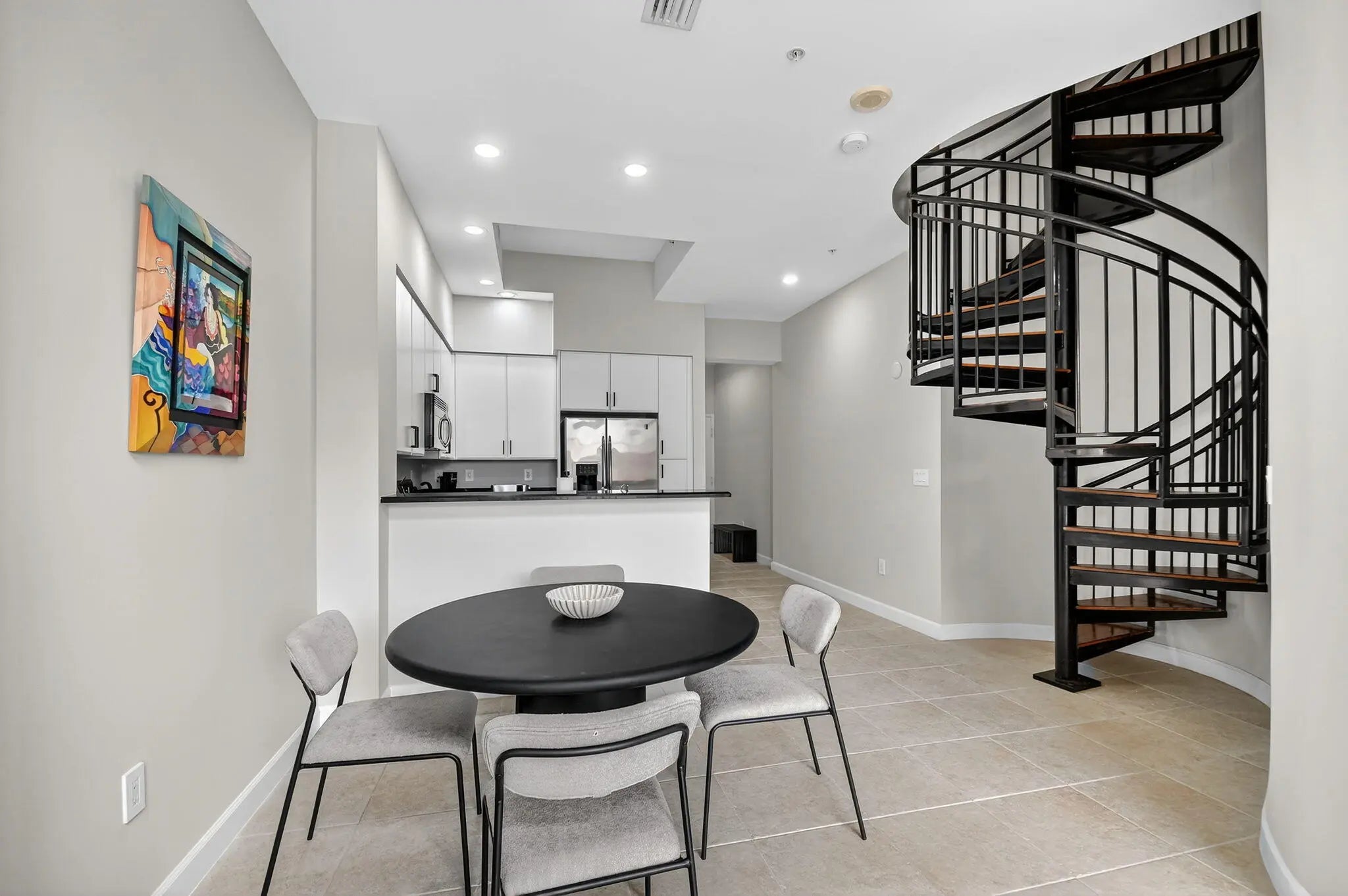 Newly renovated 2 story 1/1.5 condo in trendy One City Plaza in downtown Cityplace, boasts 26' ceilings & 2 story windows (electric shades) fills the space with natural light. Main level features open kitchen, spacious living and dining areas and powder room. Spiral staircase opens to 2nd level Master suite, spacious built-in California closets. Master bath has dual sinks, large soaking tub, separate walk in shower. Intracoastal view off side of balcony. Garage parking space outside unit. Residents enjoy 24/7 security, front desk attendant, valet parking for guests, rooftop heated pool with views of the Intracoastal and Palm Beach Island, bbq grills, fitness center, clubhouse, sauna, steam room. Walk to dinner, entertainment and the beach. 10 min to PBI airport. Welcome home to Paradise!