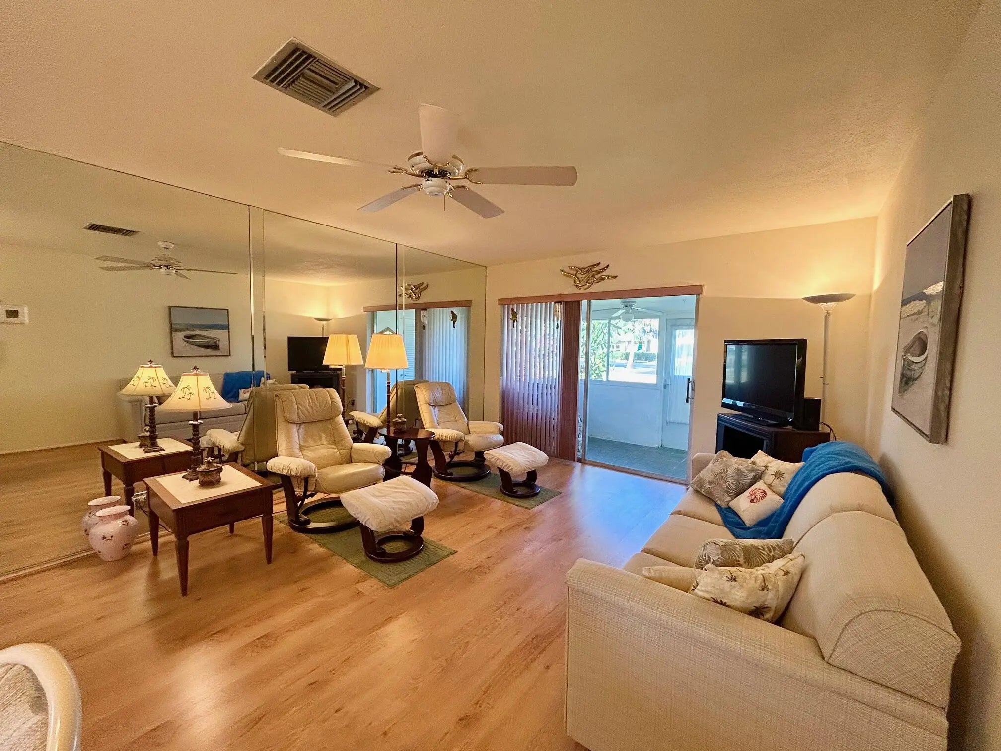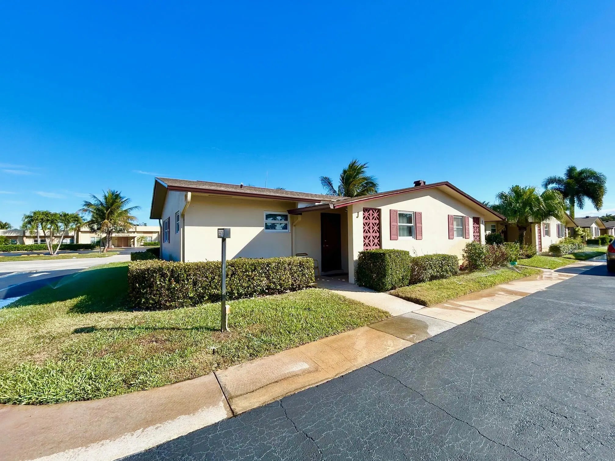 LOCATION, LOCATION !!! Don't miss out on this one. Located right across from the clubhouse and all the activities. This charming CORNER VILLA is a 1 bedroom 1 1/2 bath with NEW ROOF, HURRICANE IMPACT WINDOWS, NEW ELECTRIC PANEL AND NEW A/C. The spacious bedroom features windows on 2 walls making it light and bright, a full wall closet and ensuite bathroom. Linen closet, double length coat closet and walk in storage room on back porch. Enclosed back porch has new glass windows and overlooks the clubhouse. Patio's and BBQ grills are allowed. Service & emotional support animals welcome. Low monthly maintenance of $434 includes water, cable & internet. No assessments. Amenities include clubhouse, heated pool, fitness center. Community is close to shopping, bus service, medical and the BEACH!