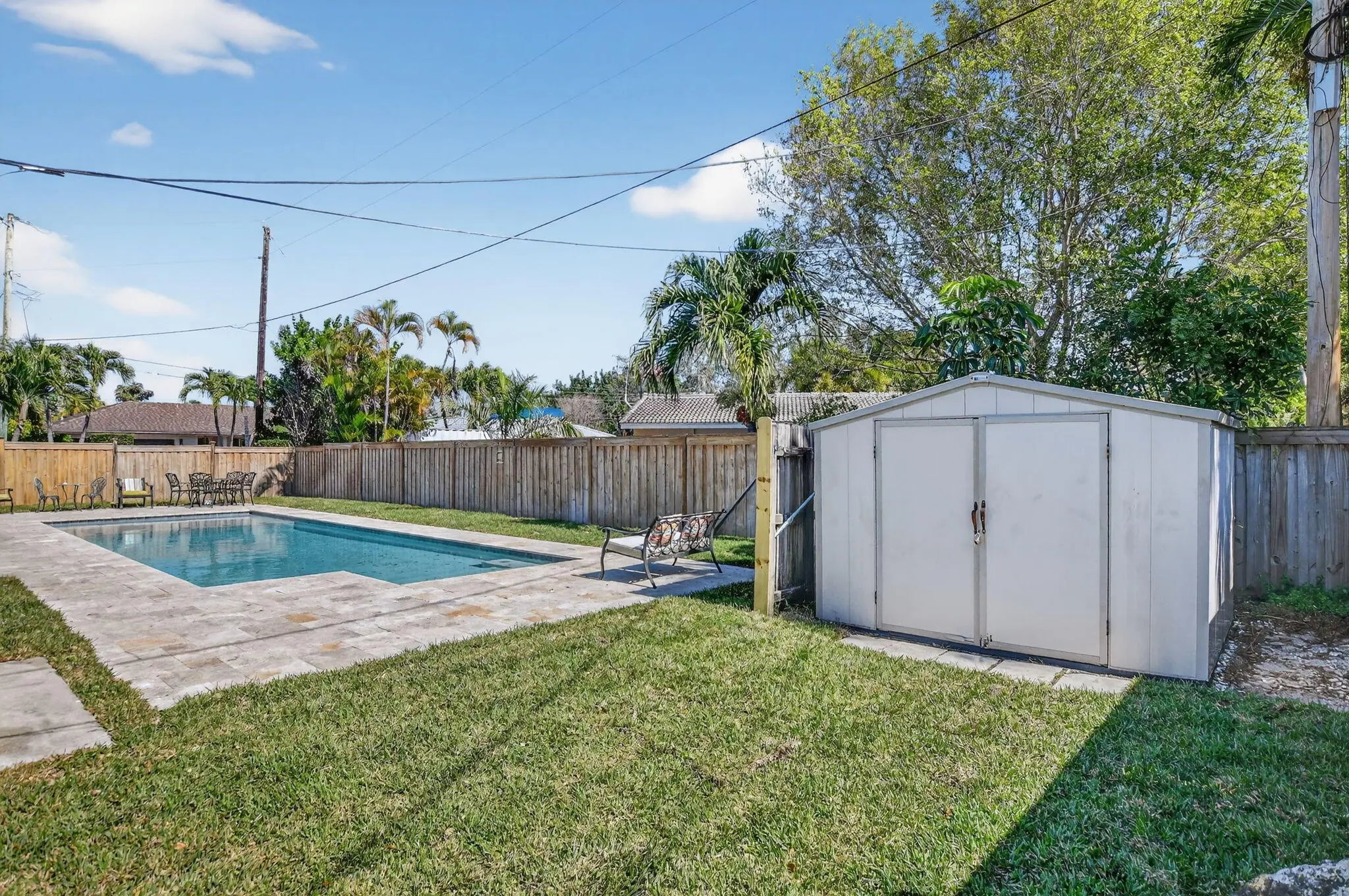 Auto Sprinkler, Covered Patio, Fence, Open Porch, Screened Patio, Shed, Shutters, Zoned Sprinkler
