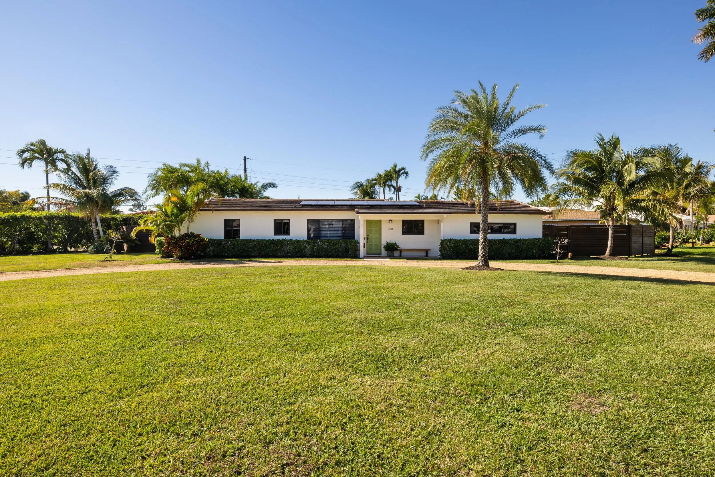 Set on a manicured lot in the heart of the 'It' Neighborhood, South End West Palm Beach AKA 'SoSo', this stylish mid-century residence pairs timeless character with thoughtful modern updates. A circular drive and mature landscaping create an inviting first impression. Inside, wood-look tile floors anchor the open living spaces, flowing effortlessly to a covered patio and poola"ideal for relaxed indoor-outdoor living.The renovated eat-in kitchen offers stainless steel appliances and streamlined cabinetry, blending function with clean design. French doors open to a beautifully paved backyard retreat centered around a sparkling pool. The primary suite features generous storage and an updated bath, completing this serene South of Southern escape.
