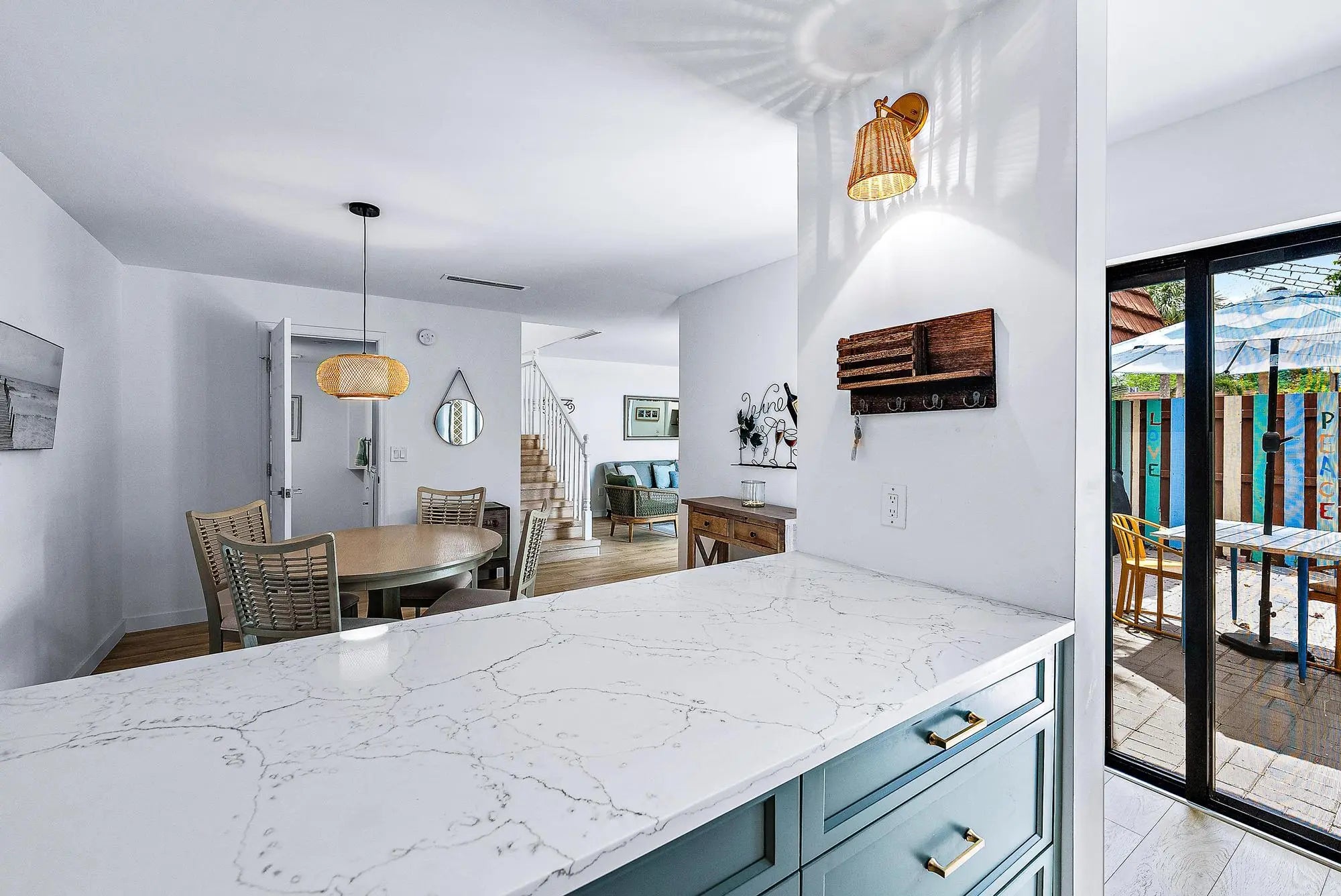 Welcome to your fully remodeled, dream townhome! This stunning Jupiter Plantation townhome has undergone a remarkable transformation, with over $200,000 invested in a complete remodel from 2022 to 2023. From the bare concrete shell, every aspect of this home has been meticulously upgraded to meet 2023 building codes and standards. Step inside to discover a modern oasis, where no detail has been spared. New custom, built in arches and cabinetry. The kitchen is a chef's delight, boasting top-of-the-line stainless steel appliances, and solid wood custom painted cabinetry. The primary bath features updated faucets, sinks, custom driftwood vanity, Spanish glazed tile, shower glass, and shower diverters.