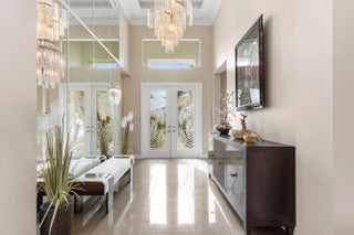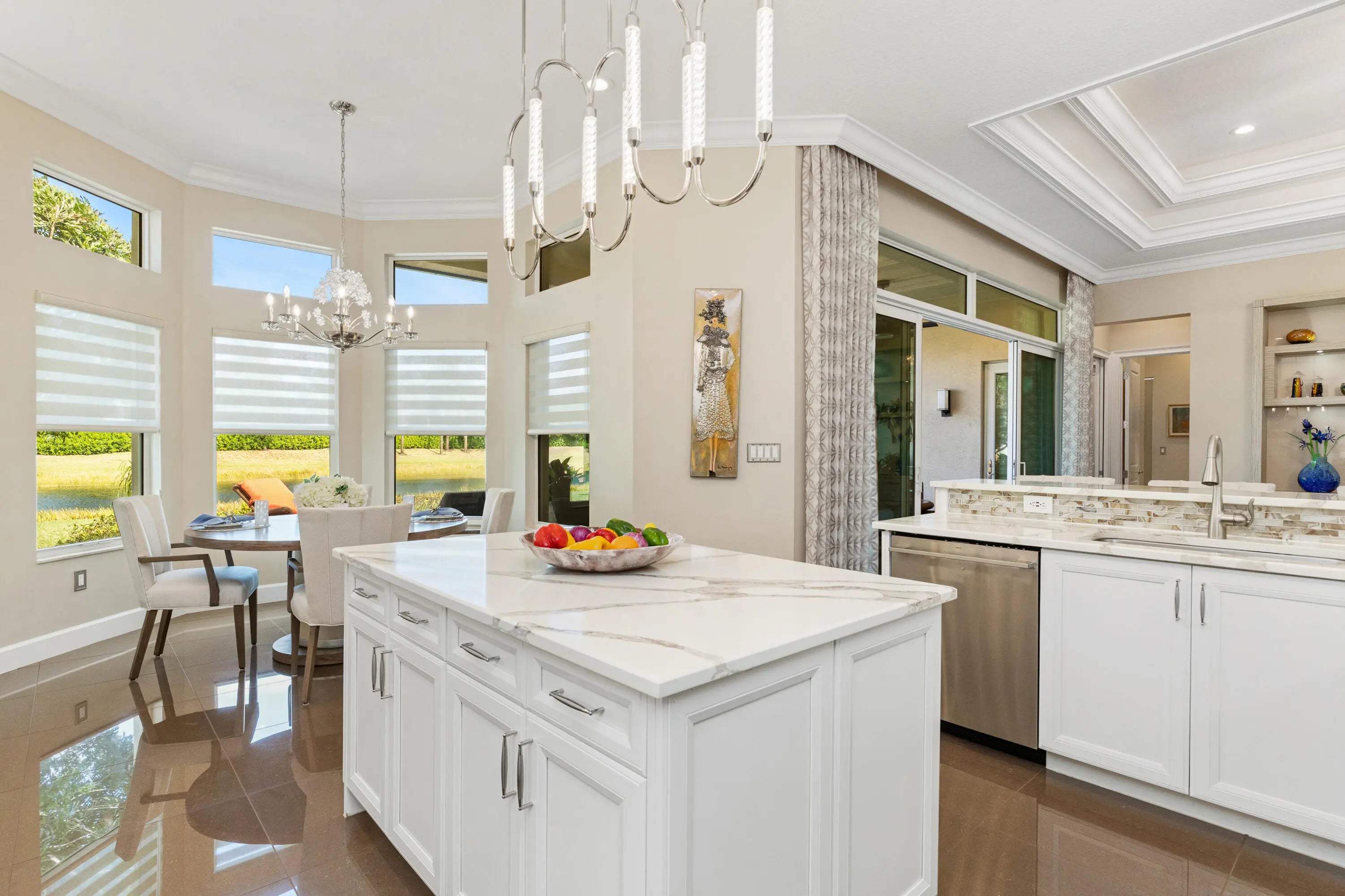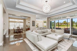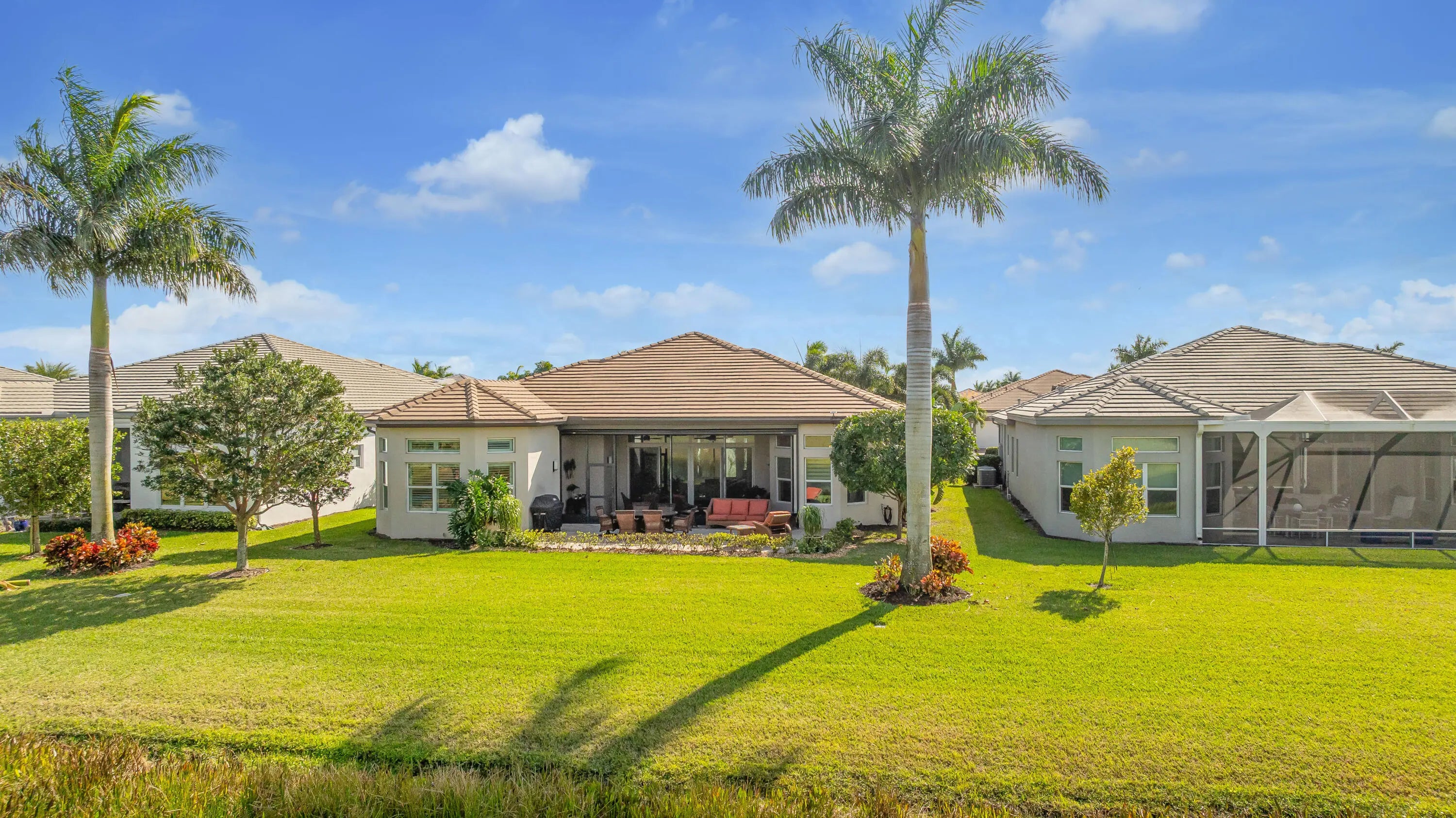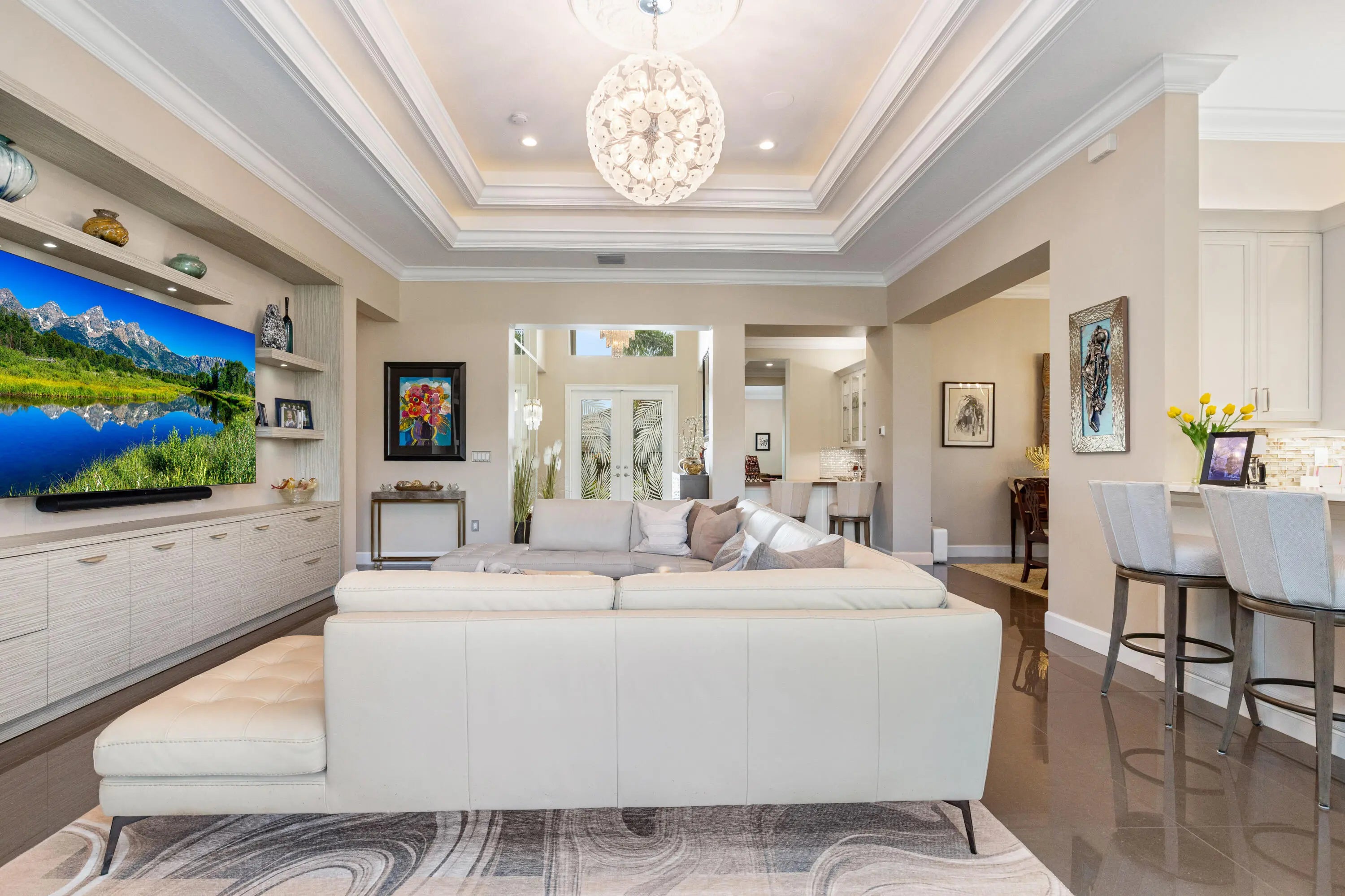 Set within the highly desirable Crown section of the community, this home enjoys the rare benefit of 'no zero lot lines.' The north- facing backyard overlooks a spectacular bow-shaped lake with unobstructed, lush landscaping views. With no homes across the water and no bordering or divider walls, the setting offers exceptional privacy and abundant wildlife.The open central great room features a custom-built entertainment center, and expansive sliding glass doors leading to a screened lanai, perfect for indoor-outdoor living. Adjacent, is the bright eat-in kitchen with bay-window lake views, as well as a more formal dining area for entertaining. The spacious owner's suite is a true retreat, highlighted by serene lake views through bay windows, and custom built Walk-in closets. *Hit more*