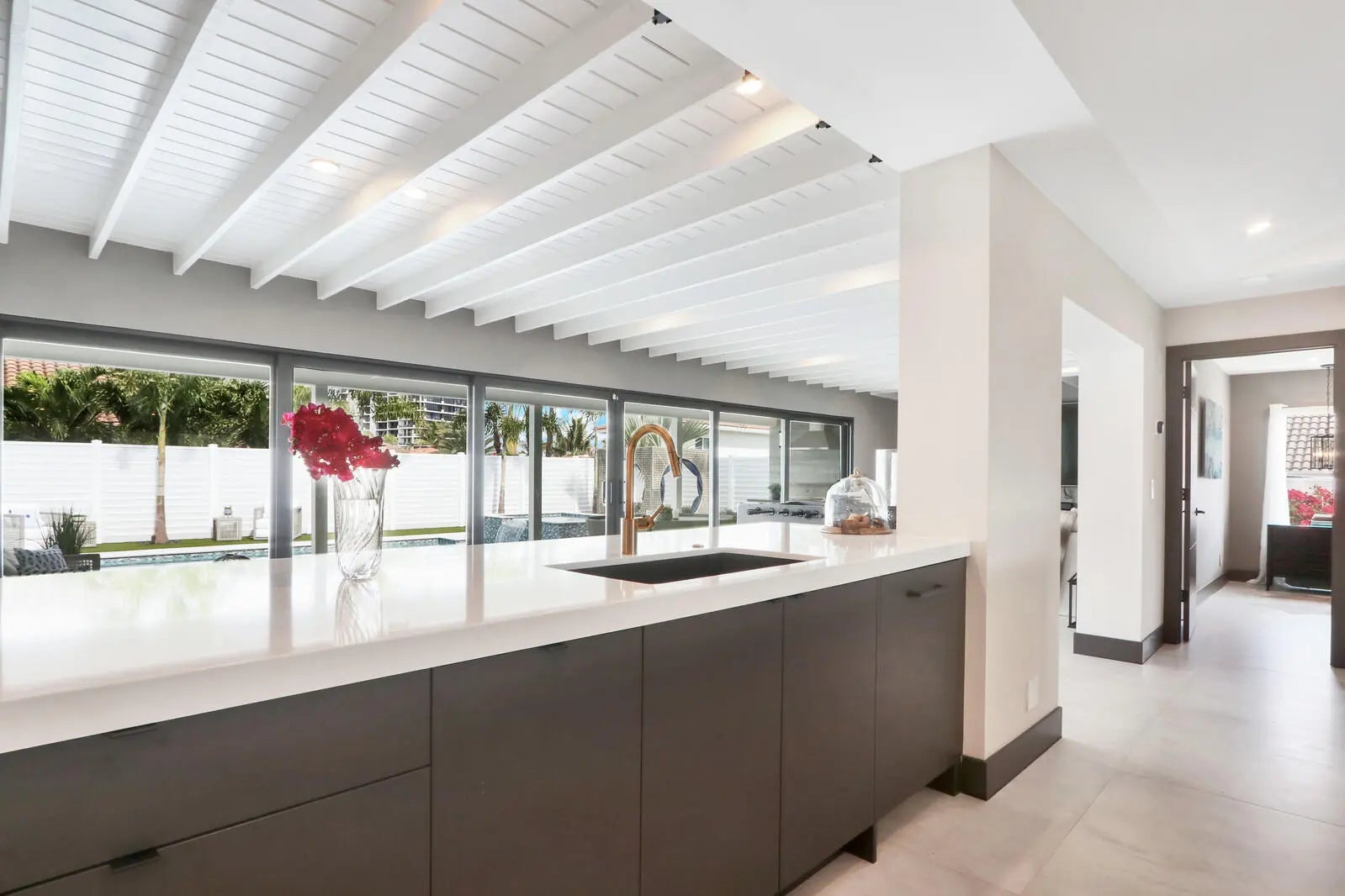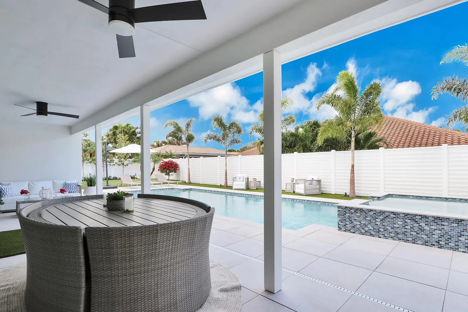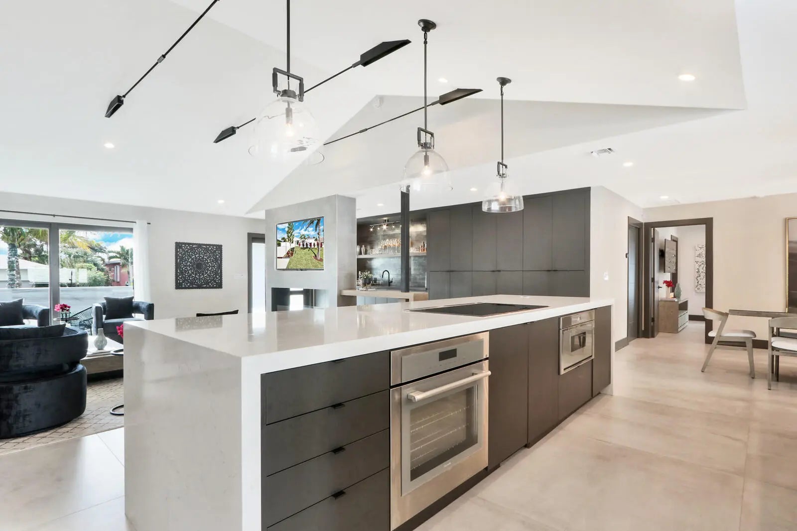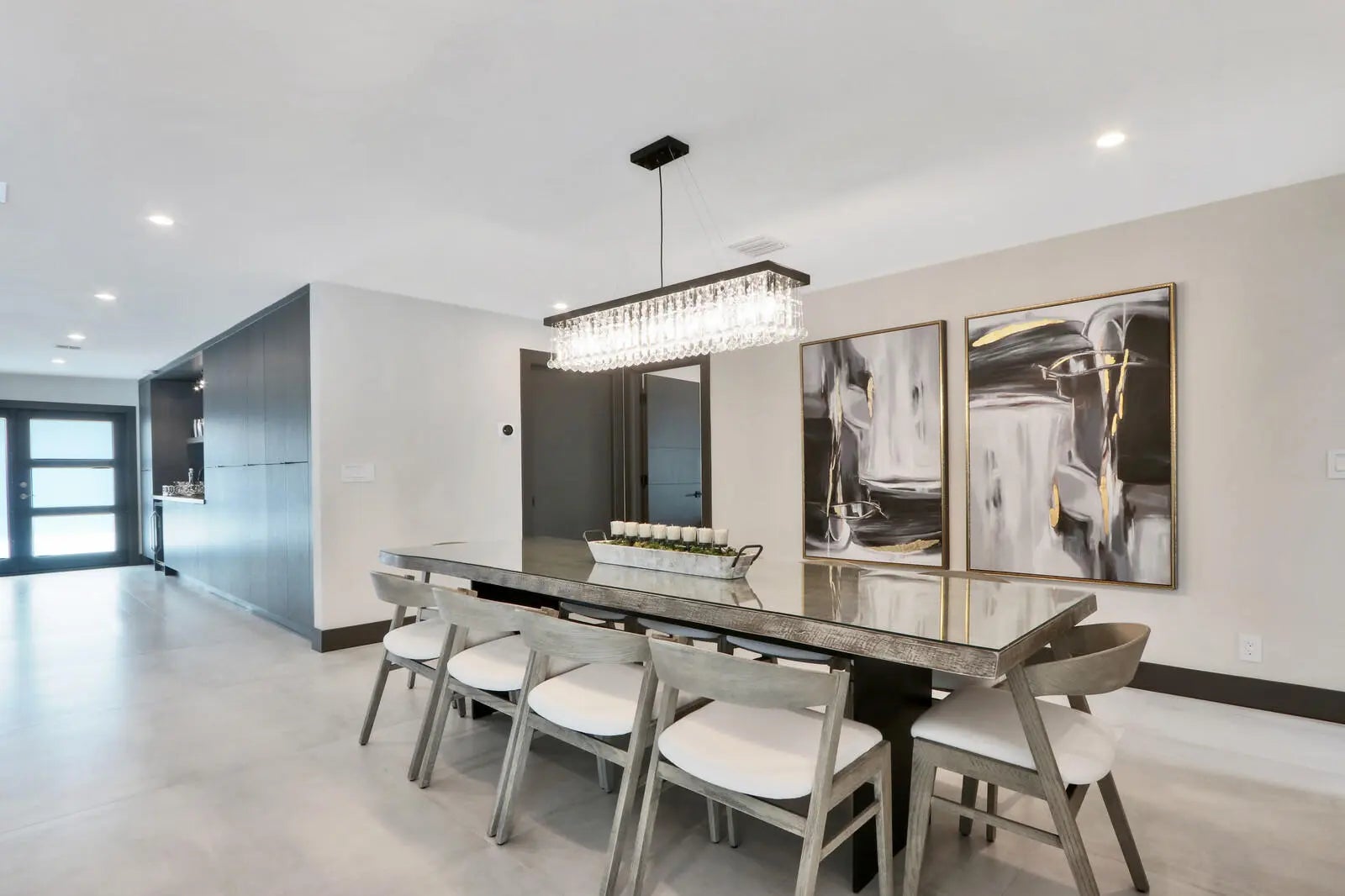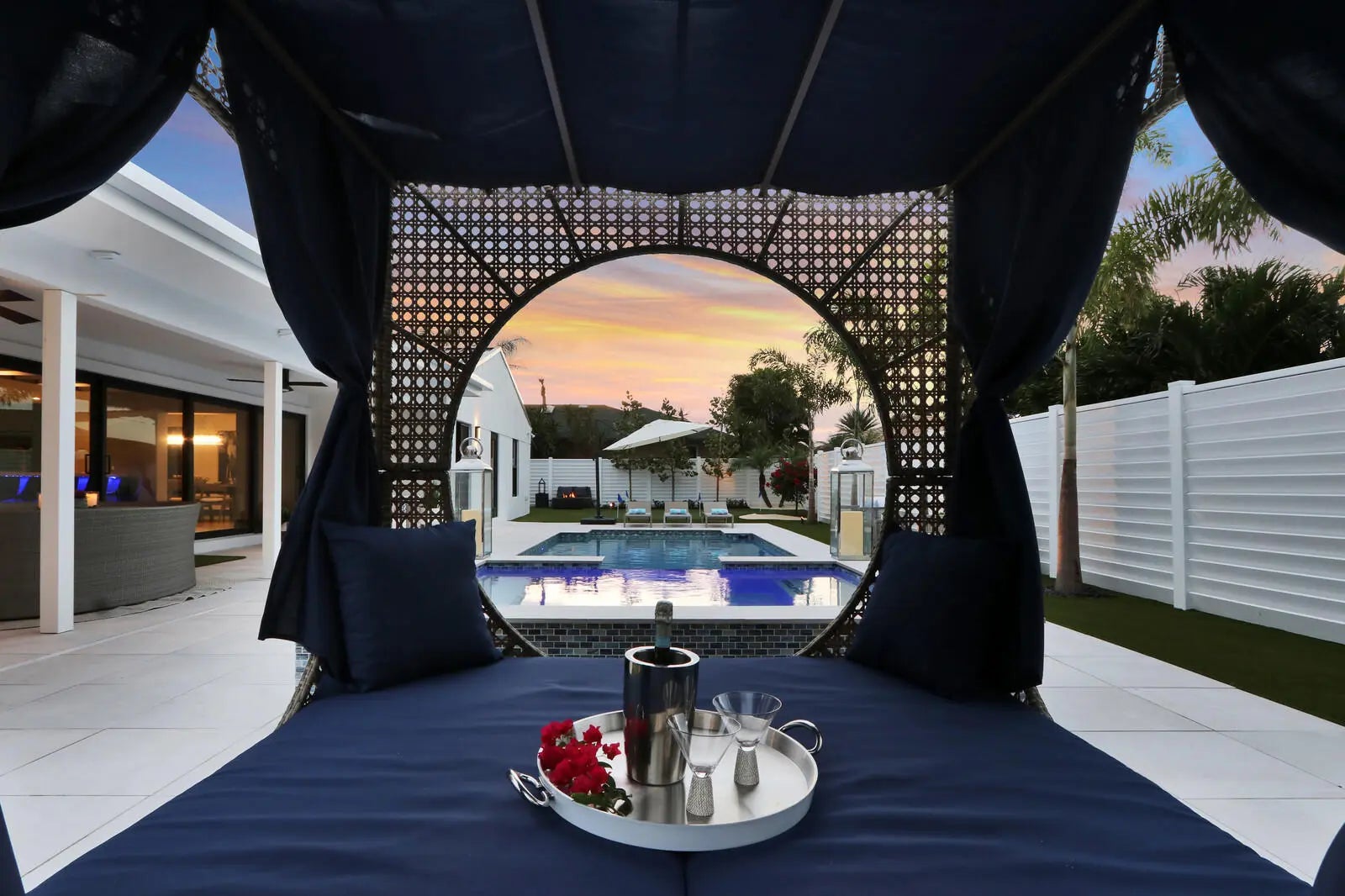 Welcome to your seaside retreat. Enjoy this professionally designed and decorated beachside paradise bringing the Northwest feel to the Juno seaside,.There is not a detail missed in this luxurious home.Sleeps 14, dining for 20. Restoration Hardware inspired decor throughout including furnishings, Italian imported porcelain concrete look flooring, and kitchen and bath appointments.The spacious and bright double living area is conducive to large gatherings featuring a double sided fireplace, entry wet bar and two separate bar top dining areas.. Entertainment room with 86'' tv and foosball table opens out into the fabulous covered outdoor living space. Kitchen features Thermadore Integrated appliances, quartz counter tops, ample custom cabinetry,printer/charger bar work station,built-in oven