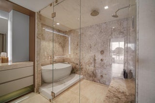 Boca Beach Residences, waterfront Luxury living on Lake Boca! Perfectly positioned directly across the water from The Boca Raton & a short walk to The Boca Beach Club. This Exceptional 4,200 SF residence was meticulous designed by a top designer. It showcases statement millwork with integrated LED inlay lighting throughout, 48'' x 48'' marble flooring, a foyer that welcomes you with a dramatic agate stone feature and a fully custom chef's kitchen designed by Mia Cucina and exceptional appliances by Gaggenau. This home features a primary suite directly on Lake Boca with a generous balcony to enjoy your morning coffee or a cocktail at night. A custom closet to feature your beloved possessions as if you were in a high end department store and a bathroom with a wet room and steam shower thatrivals any spa. The guest suite is gorgeous and comfortable with access to a balcony and a large bathroom. The club room is spectacular with wood paneling, cork wallpaper, marble slab inlay on the wall behind the desk and a large balcony. The clubroom also features a full bath, reach in closet and corner closet, easily converted into a third bedroom. Open family and living room are accentuated by floor to ceiling sliders that highlight the views of the intracoastal. The sliders open wall to wall and lead to a generous balcony where one can enjoy watching the yachts go by.... This home includes a dedicated boat slip accommodating a 50' vessel, along with 4 car garage spaces, 2 of which are privately enclosed to keep your favorite cars. Residents enjoy a full service luxury building offering a resort-style pool and grilling area, state of the art fitness center, valet parking, concierge services, 24 hour doorman & private security.