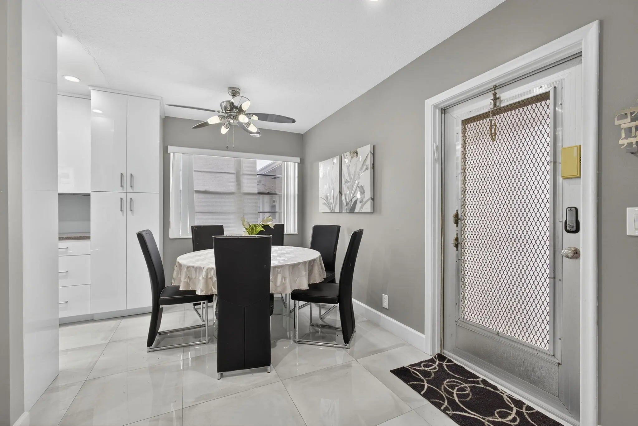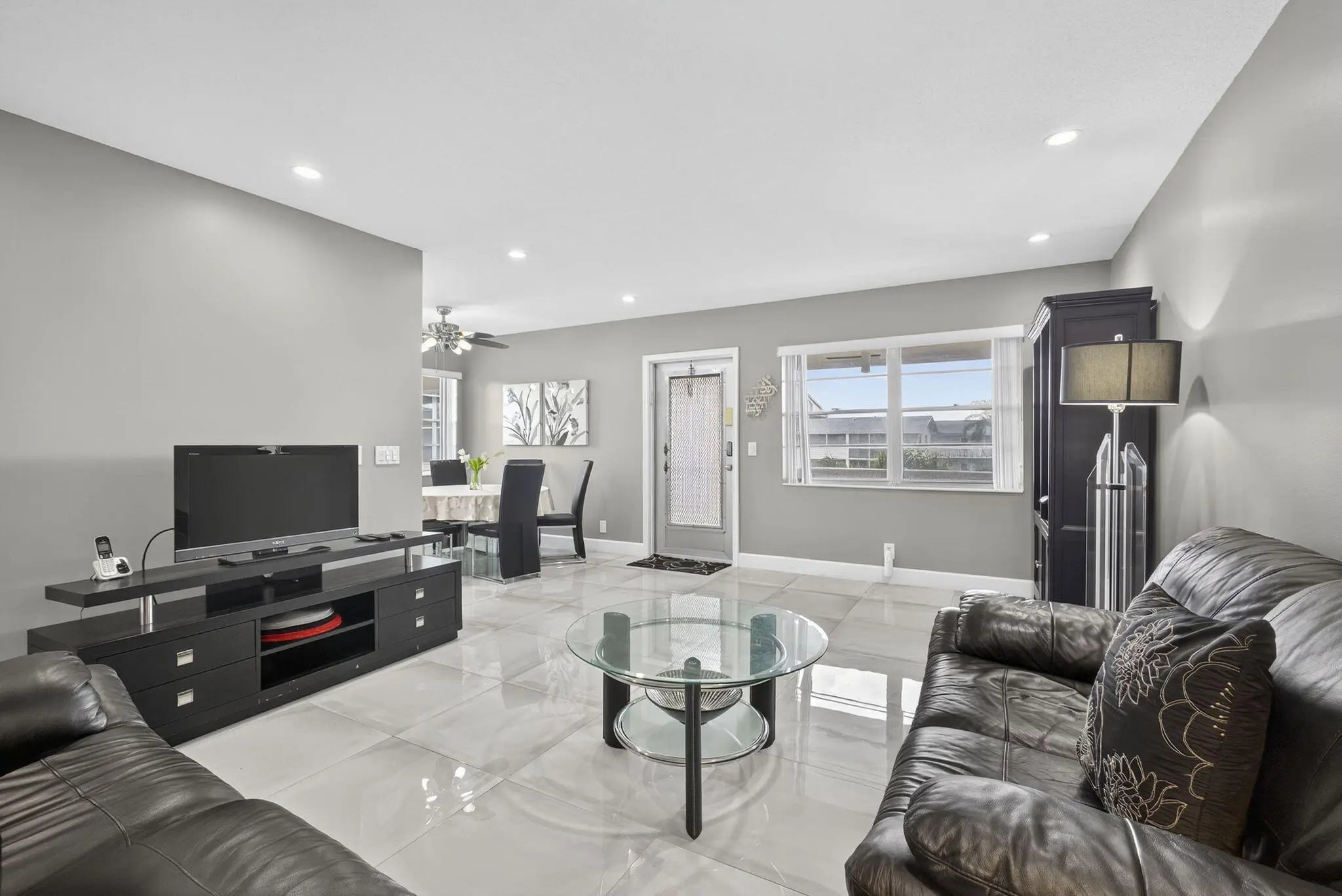 DON'T MISS OUT ON THIS MAGNIFICENT AND TOTALLY RENOVATED 2BED 2BATH CORNER UNIT! THIS UNIT FEATURES LARGE DESIGNER CERAMIC TILE FLOORING THROUGHOUT, A STUNNING WHITE KITCHEN WITH 2 SEPARATE SINKS AND SLEEK STAINLESS STEEL APPLIANCES.TWO UPDATED BATHROOMS WITH STEP IN SHOWERS ADD TO THE MODERN FEEL. PLUS YOU'LL ENJOY THE GARDEN VIEW. ADDITIONALLY THE 1.BEDROOM 1.5 UNIT NEXT DOOR IS ALSO FOR SALE. WELL MAINTAINED BUILDING WITH AN OPEN PATIO TO SIT OUT AND RELAX ON. GREAT. CENTRAL LOCATION SHORT WALK TO THE HAVERHILL GATE AND THE CLUBHOUSE.Roomy closets (one walk-in), screened-in patio, laundry room, assigned parking spot plus visitor parking available; local bus for errands/shopping both within & outside The Village. OME & ENJOY RESORT STYLE LIVING IN THIS GATED COMMUNITY FOR ACTIVE ADULTS