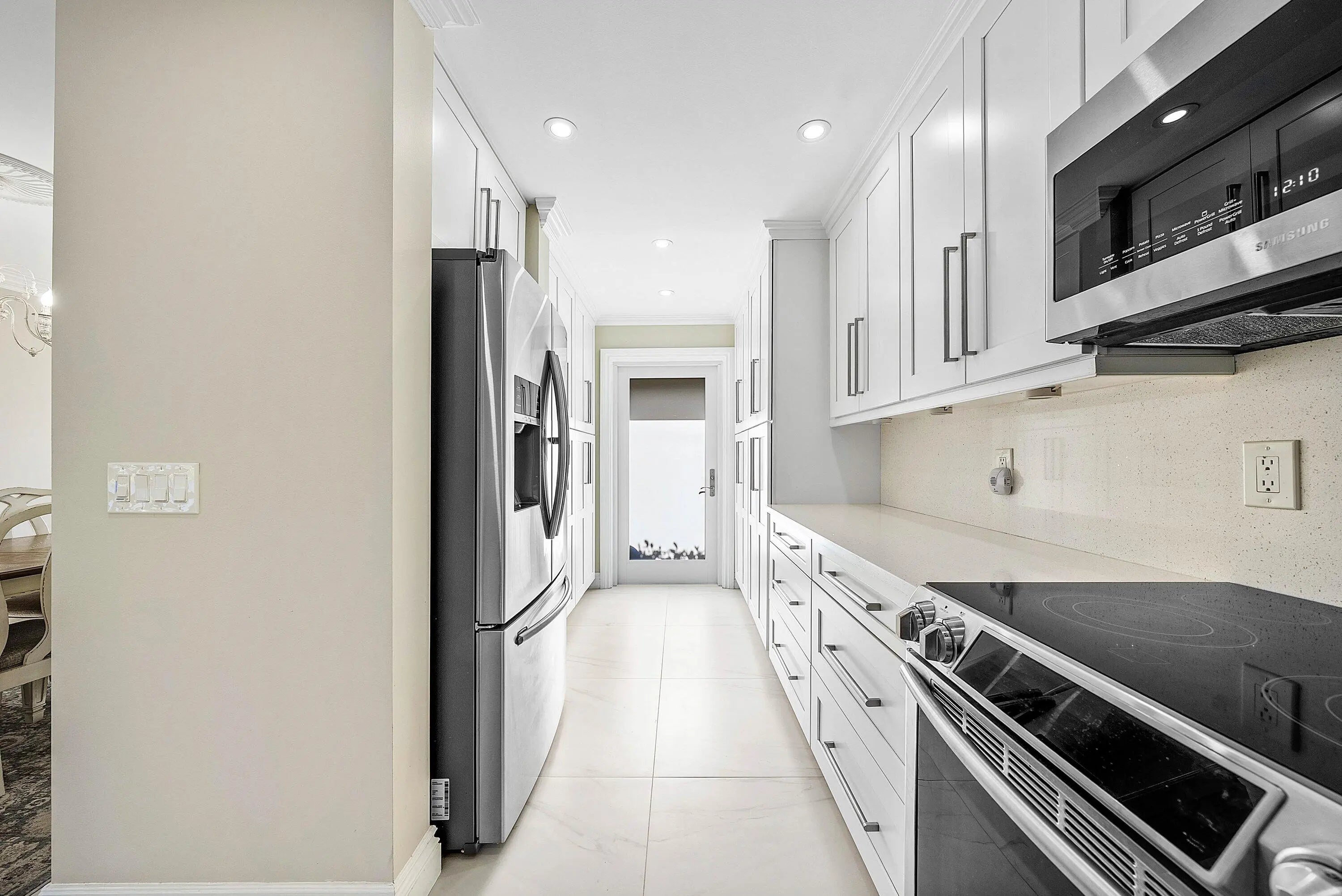 Experience refined Florida living in this completely renovated 2-bedroom, 2-bathroom villa, showcasing some of the most breathtaking waterfront and fairway views in the entire City of Atlantis. Start your mornings with serene water and golf course vistas from your private patio, conveniently located just steps from the Villa Association pool.This thoughtfully updated residence is designed for both comfort and ease, featuring a spacious circular driveway, additional storage, and an open, welcoming interior layout. Elegant ceramic tile flooring flows throughout the home, complemented by two beautifully renovated bathrooms and a generously sized, updated kitchen ideal for both everyday living and entertaining.Impact windows and doors throughout provide enhanced safety, energy efficiency.