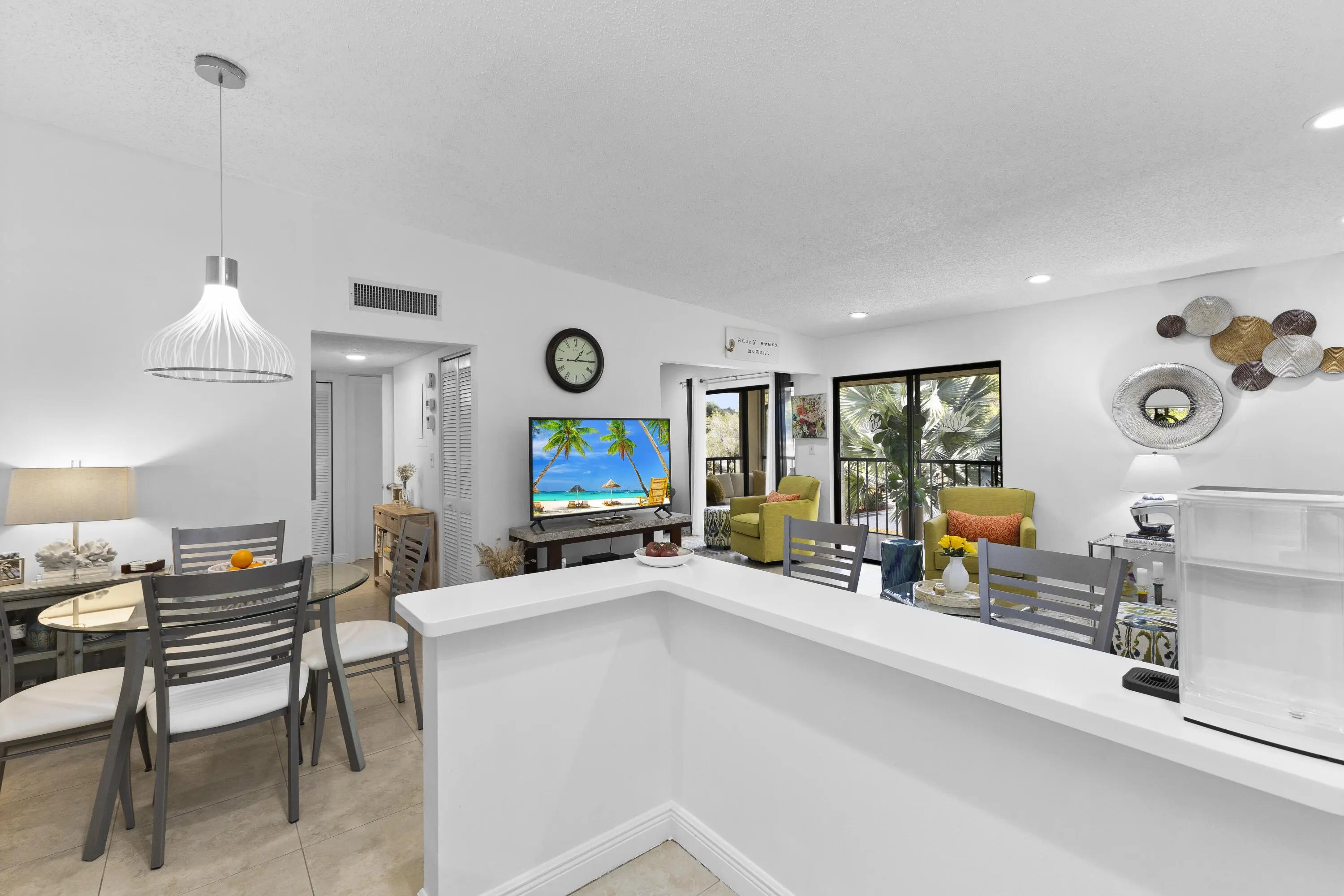 IMMACULATE TURN-KEY- 2-BEDROOMS, 2-BATHROOMS * DESIGNER RENOVATED CONDO CLOSE TO THE BEACH! 24-HOUR MANNED GATE *CUSTOM CABINETRY *QUARTZ COUNTERTOPS *SS APPLIANCES *NEW HVAC, WASHER, DRYER. PAINT, SPACIOUS PATIO - This Magnificent Condominium makes a Beautiful Permanent Home or an Excellent Winter Escape offering Low Maintenance, a Plethora of Community Activities & Amenities, Fitness Center, Men's & Women's Clubs w/Golf, Classes, Food, Movies, Bridge, Pickle Ball, Tennis, Billiards, Canasta, Parties, Heated Olympic Size Pool, Water Aerobics, Yoga, Zumba++ Offers PB County Bus Service w/13 stops. This Elegantly Designed fully furnished condo is warm, spacious, and conveniently located near highways, world-class shopping, the best dining, theaters, 2 airports ++ Pack your bags!