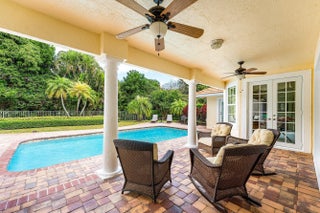 Nearly half-acre golf course lot in exclusive guard-gated Pine Tree Country Club Estates. Upgraded 4,100 sq ft home overlooking legendary Dick Wilson-designed Pine Tree Golf Club (est. 1961, private 18-hole, optional membership). Features soaring ceilings, impact windows/doors, hurricane garage doors, north-south orientation, 26 kW Generac generator w/ automatic transfer switch & 500-gal propane tank, new well for irrigation plus city water with filtration. Chef's kitchen w/ Sub-Zero fridge & induction cooktop. Resort-style backyard with pool, fountain garden, lush landscaping, filtered golf views, expansive lanai with wet bar, and remodeled Trex upper deck. New AC units, freshly painted exterior, custom window treatments, new LG washer/dryer, oversized epoxy-floored three car garage.