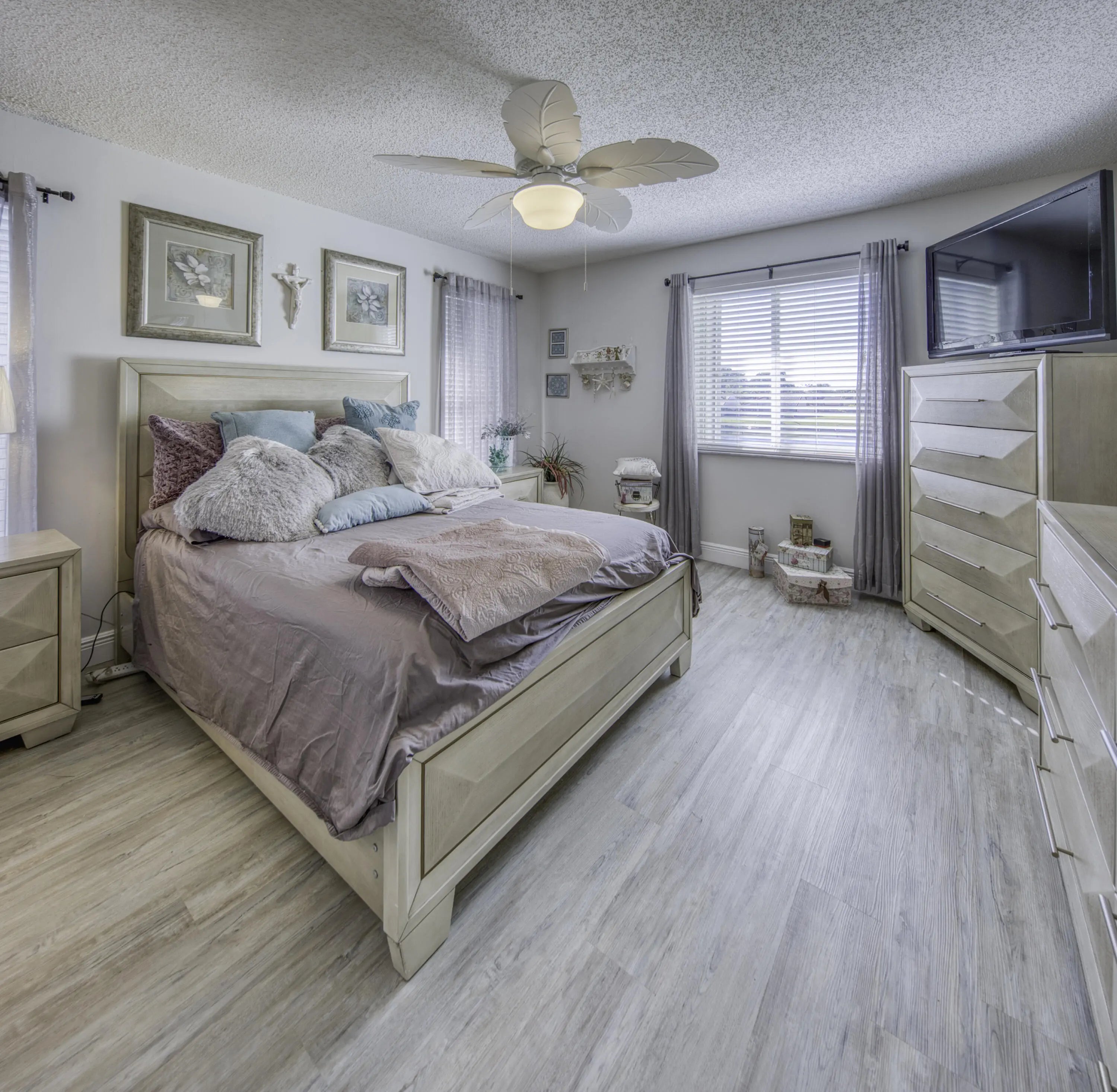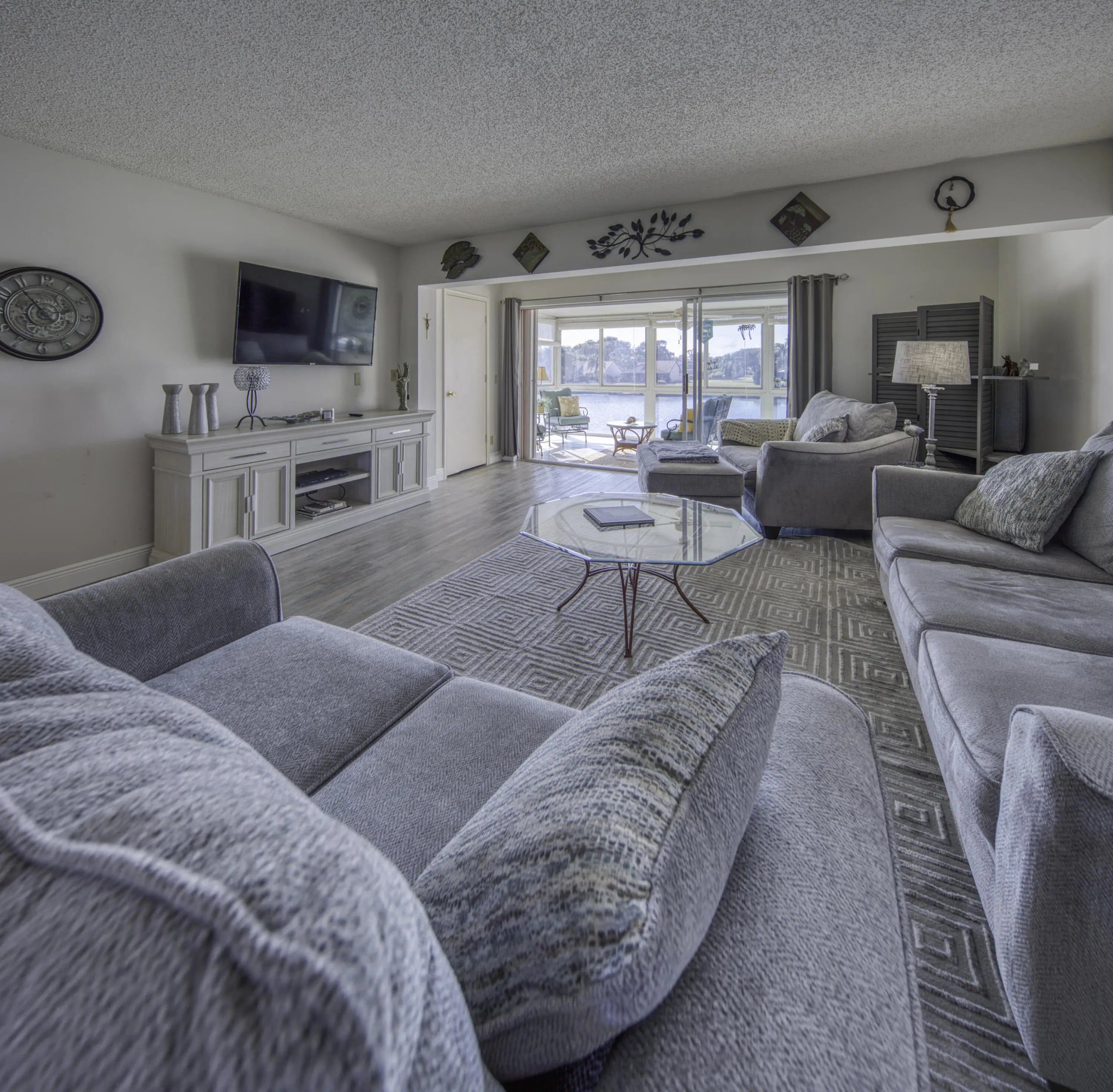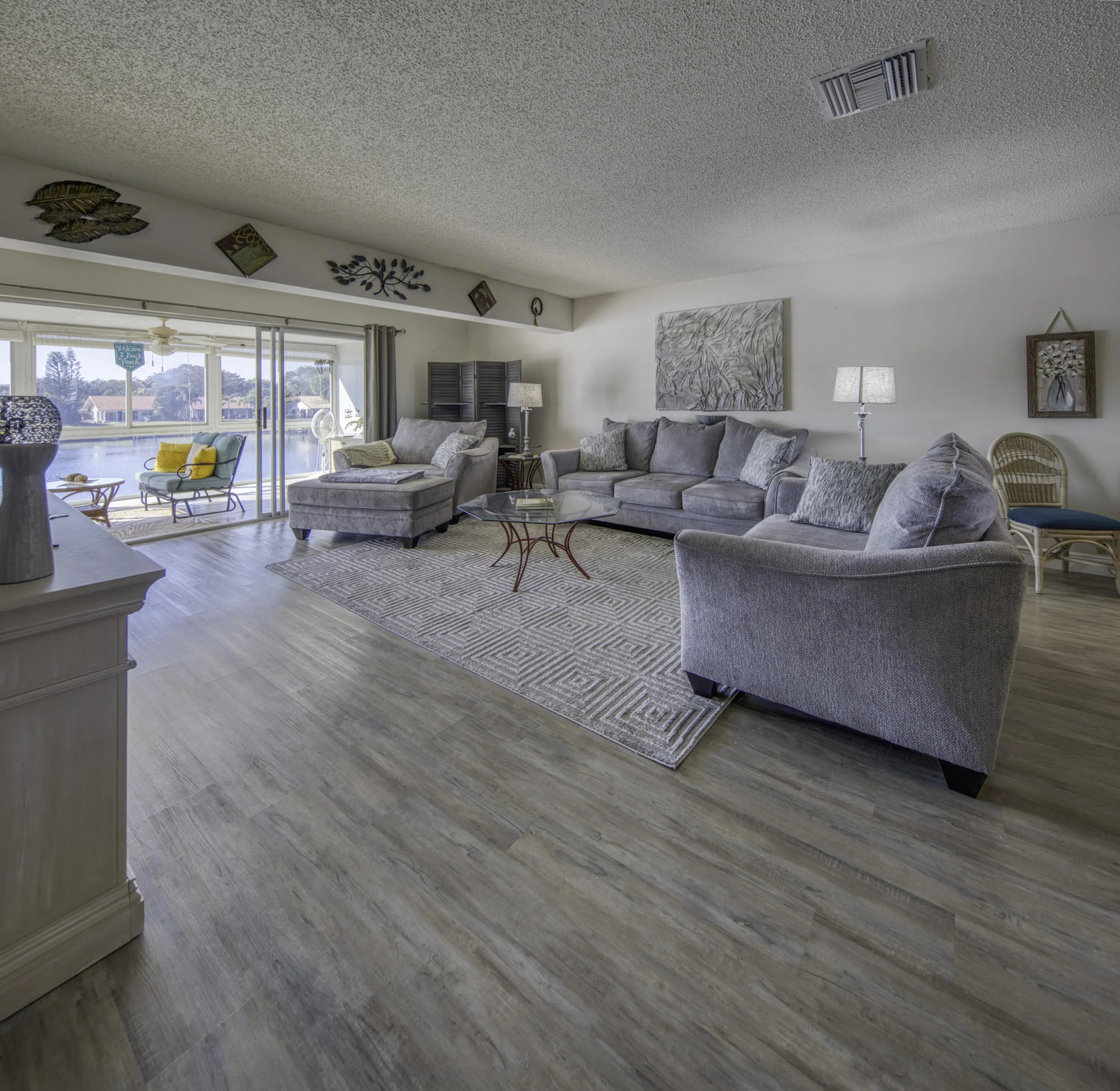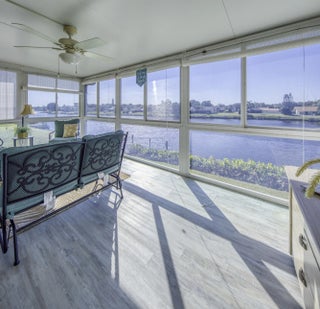 Delray Beach Waterfront Condo-Largest, renovated, 2 /2 end unit with a new roof, on a lake that leads to a chain of lakes. South side of building, end unit with elevator. Updated kitchen with stainless steel appliances, washer/dryer, and luxurious cabinets. Huge porch overlooking the water, has been enclosed with glass and screens to catch the breezes, watch the boats pass by and add even more square footage. Pool, Hot Tub, Pickleball and Tennis Courts, Bocci and Shuffleboard plus a new Fitness Center and Library on the way. 55+, Internet and Cable included and NO renting for 2 years. Available FURNISHED/UNF