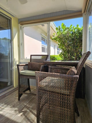 Fully renovaed, 2 bedroo, 1 bathroom charming villa in the +55 active community of Dudley at Cresthaven. A/C 2023. Tankless hot water heater 2024. Electric panel updated within last 5 years. Beautiful custom stainglass pocket doors for bedrooms and bathroom. The villa is furnished. Tile and laminate throughout. Back patio beautifully landscaped for shade and view on the canal. Front view is garden. Extra storage closet in the Florida room. Impact windows throughout. Dudley community offers many amenities such as heated community pool, clubhouse with various activities and events, fitness room, manager on site, and wide sidewalk for avid walker. The community is located near many shopping, entertaining and dining options. HOA includes water, cable and lawn care.