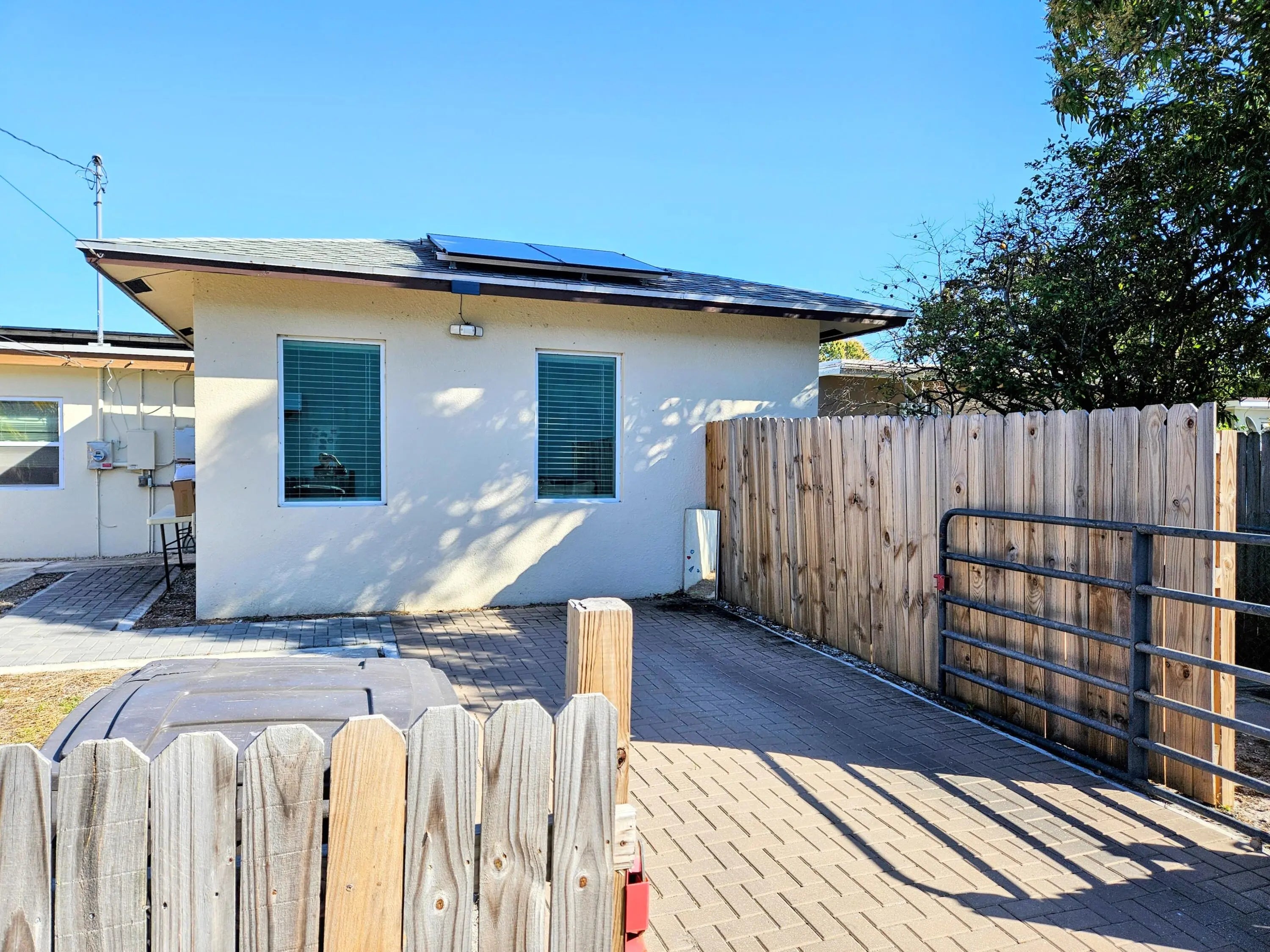 Nicely built studio style with great room. Kitchen with stainless steel appliances. tiles throughout. Fenced yard. Centrally located to shopping, dining entertainment. about 15 mins from Palm Beach International Airport, Train station WPB and the beaches. Paved driveway. Includes water and electricity.