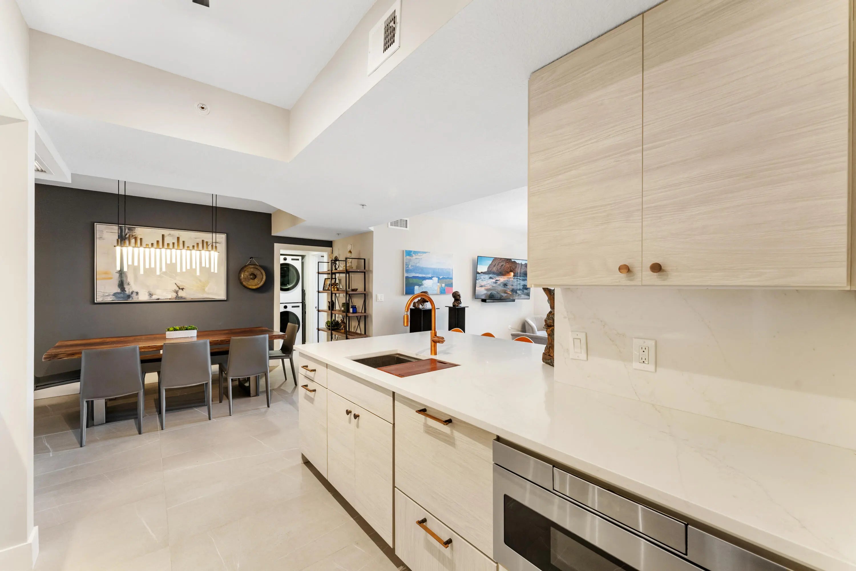 Fully renovated 11th-floor 2BR/2BA condo with stunning southeast views of the Intracoastal, pool and ocean beyond. Enjoy sunrise water views from your balcony. The light-filled interior with an open living and dining layout is ideal for everyday living and entertaining. This move-in-ready condo features new kitchen, bathrooms, flooring, fresh paint, updated fixtures and custom closets throughout. Professionally designed with no details overlooked. The Slade is a premier Flagler Drive waterfront building offering resort-style amenities including two pools, fitness center, valet parking, garage parking, 24-hour security/front desk and on-site management. Ideally located just minutes from Palm Beach Island, Downtown West Palm, PBI Airport. Pet-friendly building.