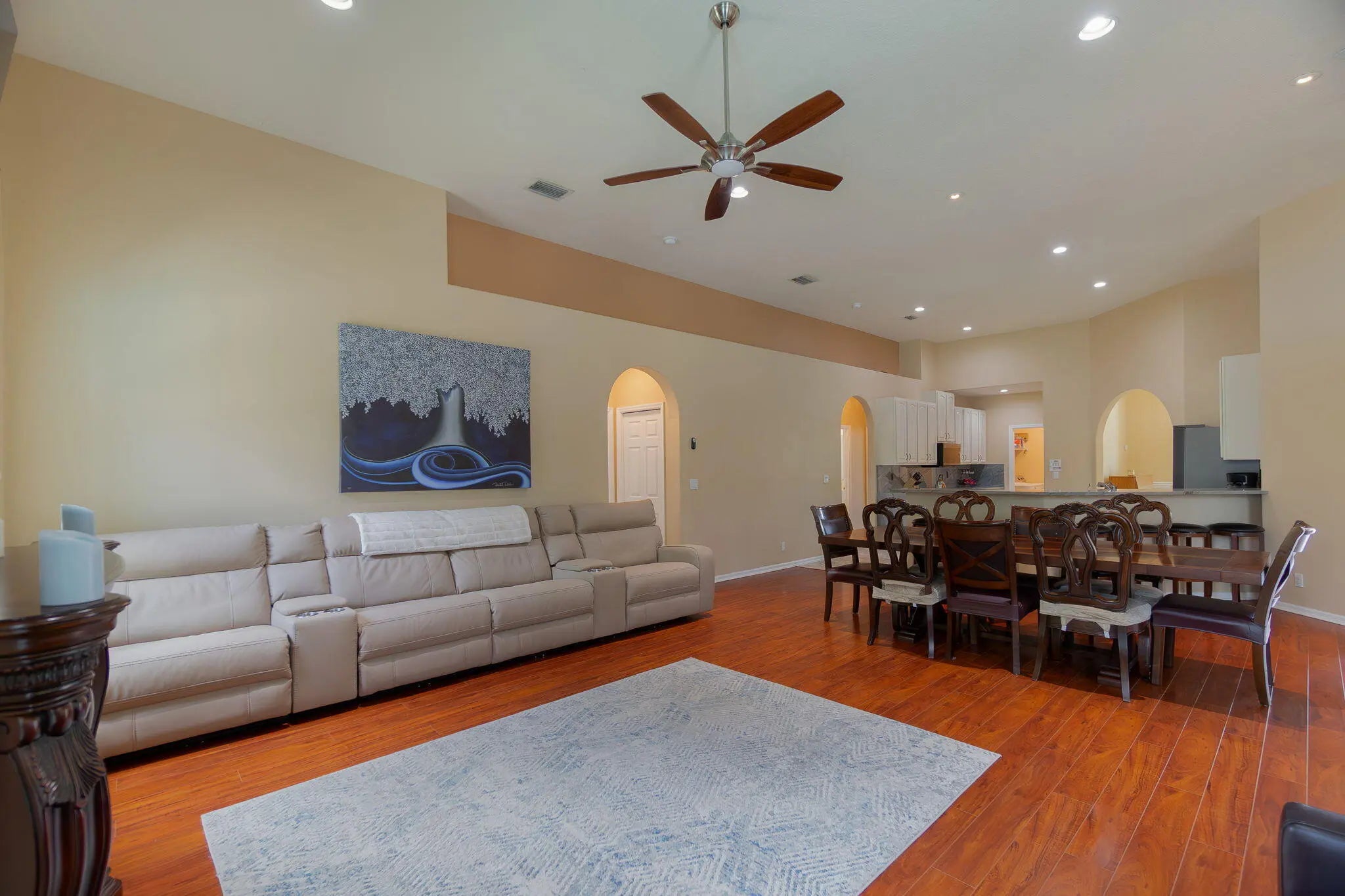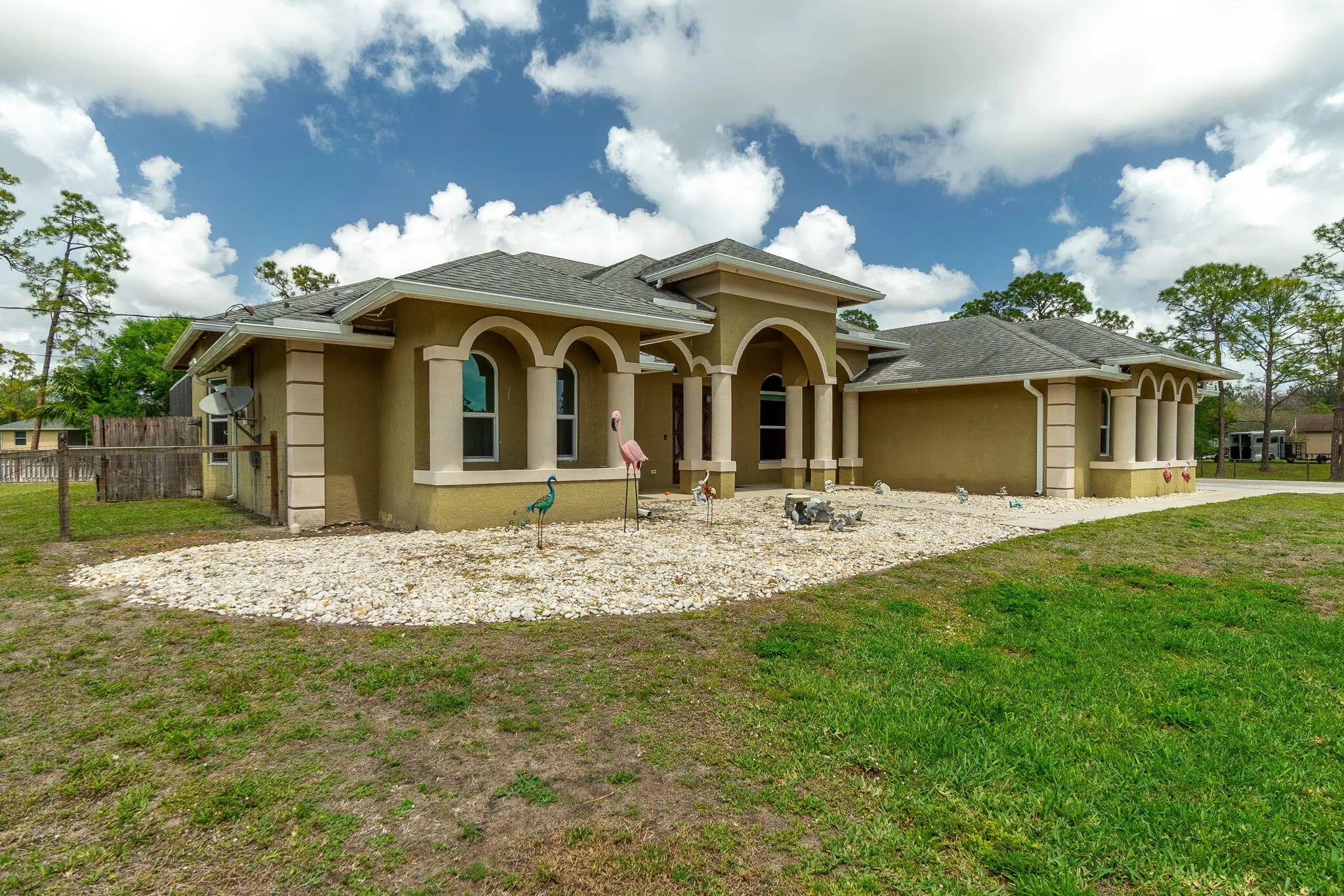 Welcome to this immaculate single-family home featuring over 3,000 sqft of living space, designed with elegance and functionality. With 4 spacious bedrooms plus an office/den, and 3 full baths, this home offers room for every need. Set on more than an acre of land, there's no HOA, so you can bring your RV, ATV, or any outdoor toys to enjoy. Enter up to the impact double front doors made of beautiful Brazilian Mahogany into the high-ceiling living room with a breathtaking view of the sparkling pool. The grand entrance is illuminated by an exquisite chandelier hanging from the soaring 16-foot ceilings. The chef's kitchen features 42-inch cabinets, high-end Quartzite countertops, and top-of-the-line Samsung appliances, making it the perfect space to cook and