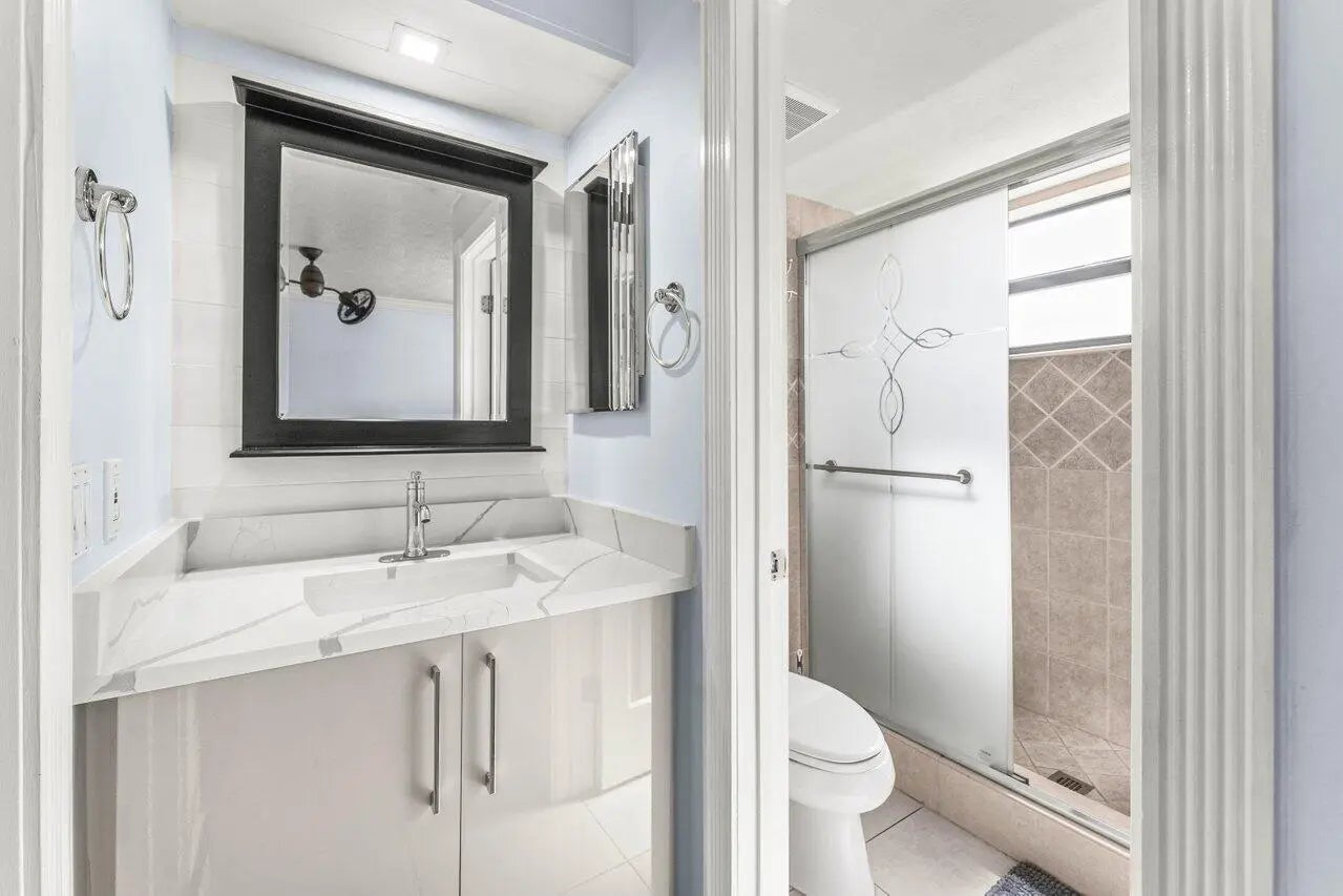 This beautifully updated first-floor corner unit in Sherwood Village Condo offers 2 bedrooms and 2 bathrooms in a prime West Palm Beach location. The light-filled interior features tile flooring throughout, elegant crown molding, and smooth skim-coated ceilings that create a clean, modern feel. The renovated kitchen includes newer appliances, and both bathrooms have been tastefully updated. Impact windows provide added storm protection and energy efficiency, while the desirable corner position offers extra privacy and abundant natural light. Two assigned parking spaces add everyday convenience, and the monthly association fee is just $390. The community is pet-friendly, allowing up to two pets (30 lbs max each).