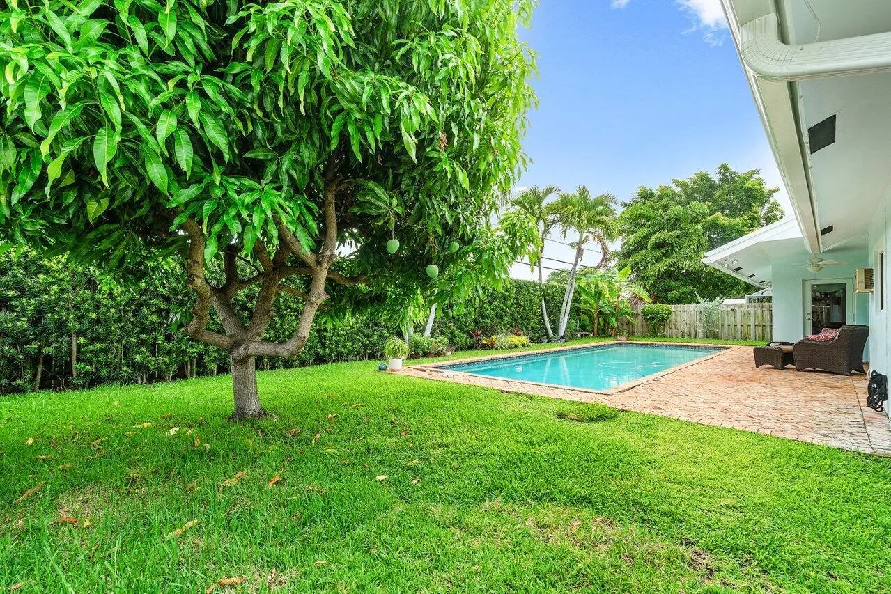 Charming five-bedroom, three-bathroom ranch-style residence in a great non-HOA neighborhood, walking distance to the A+ rated Addison Mizner School. The interior is defined by an open-concept layout with multiple living areas, skylights, and a wood-burning brick fireplace. A smart three-way split floor plan provides the ideal setup for full family living, guest privacy, or a quiet remote work space. The primary and guest en-suites offer separation from the additional 3 bedrooms, which can be closed off by a custom wooden barn door. Outside, the private fenced yard features an extra-long heated pool and mature fruit trees. This home is supported by significant updates, including impact windows and doors, a metal roof, PVC underground plumbing and a new electrical panel. (See more)