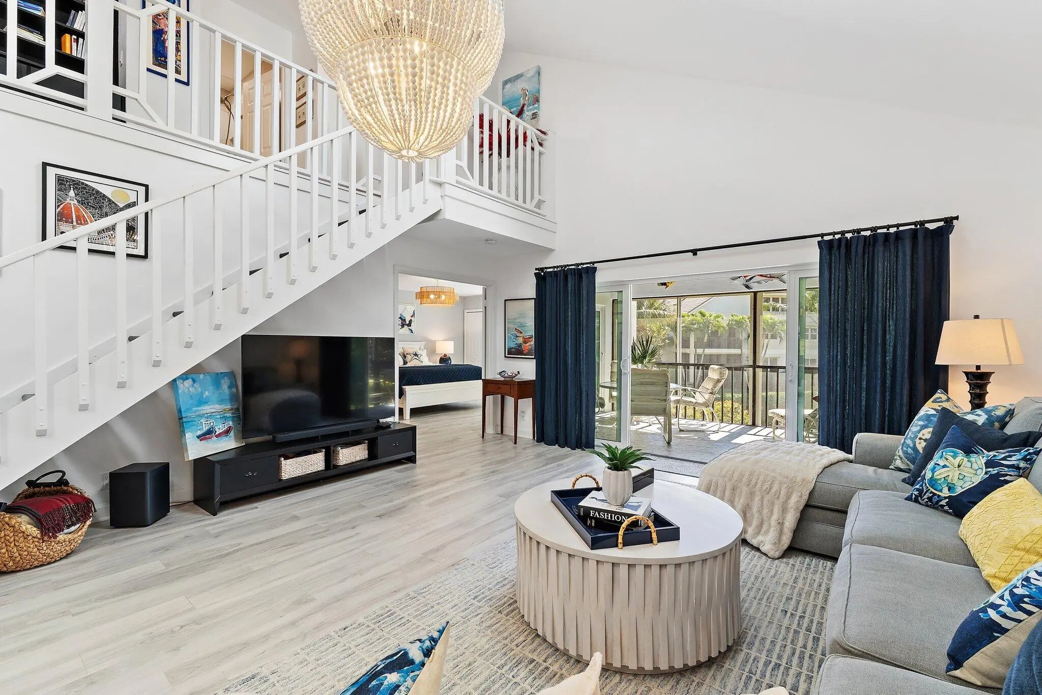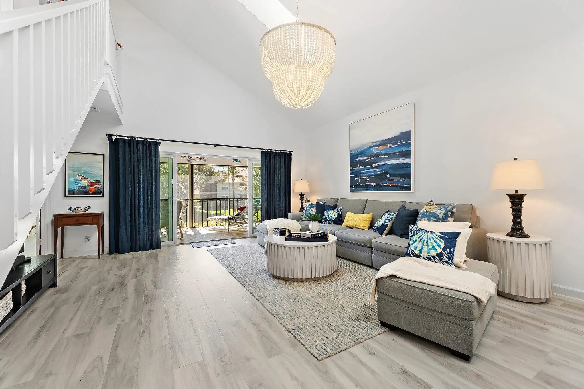 Experience coastal living in this completely renovated 3-bedroom, 3-bath residence in the highly desirable gated Beachcomber community. This spacious home features an open, light and bright layout with designer finishes and top-quality upgrades throughout. The modern kitchen flows seamlessly into the living and dining areas, perfect for entertaining. Step outside to your screened patio overlooking a lush green space, creating a peaceful retreat. Impact glass throughout and electric storm shutters offer peace of mind, while the one-car garage adds convenience. Located directly across from the beach, Juno Pier, and the Bluffs Shopping Plaza, you can walk to restaurants, shops, and Ocean Cay Park with volleyball courts, picnic tables, and grills. Whether it's morning coffee on the sand or