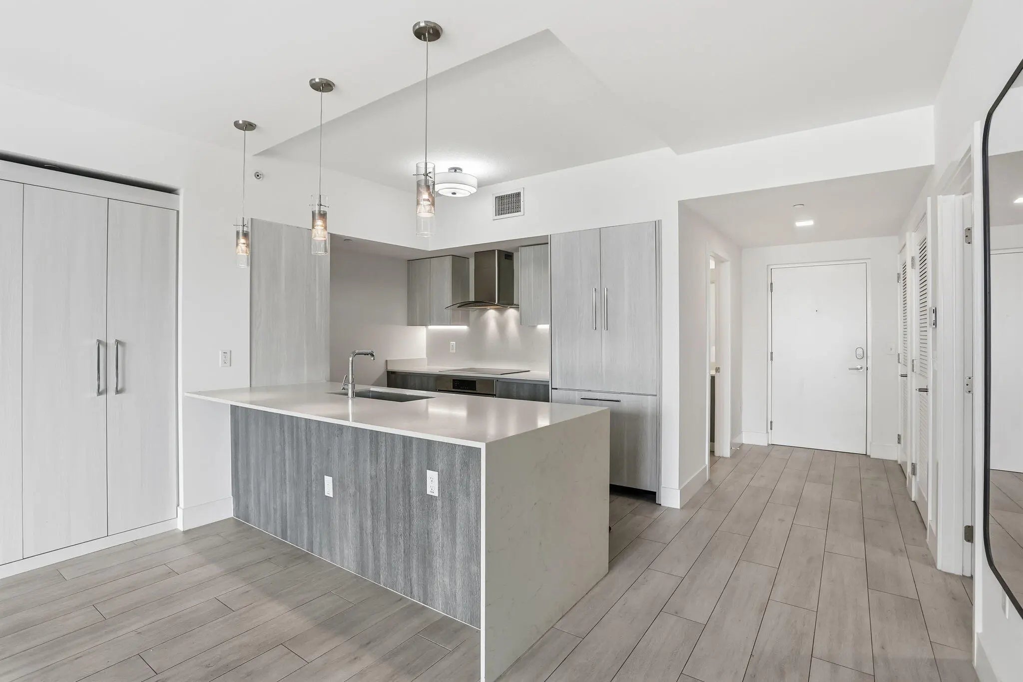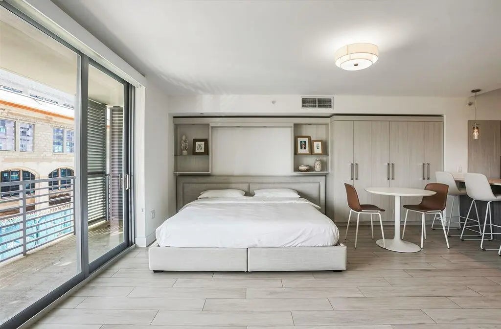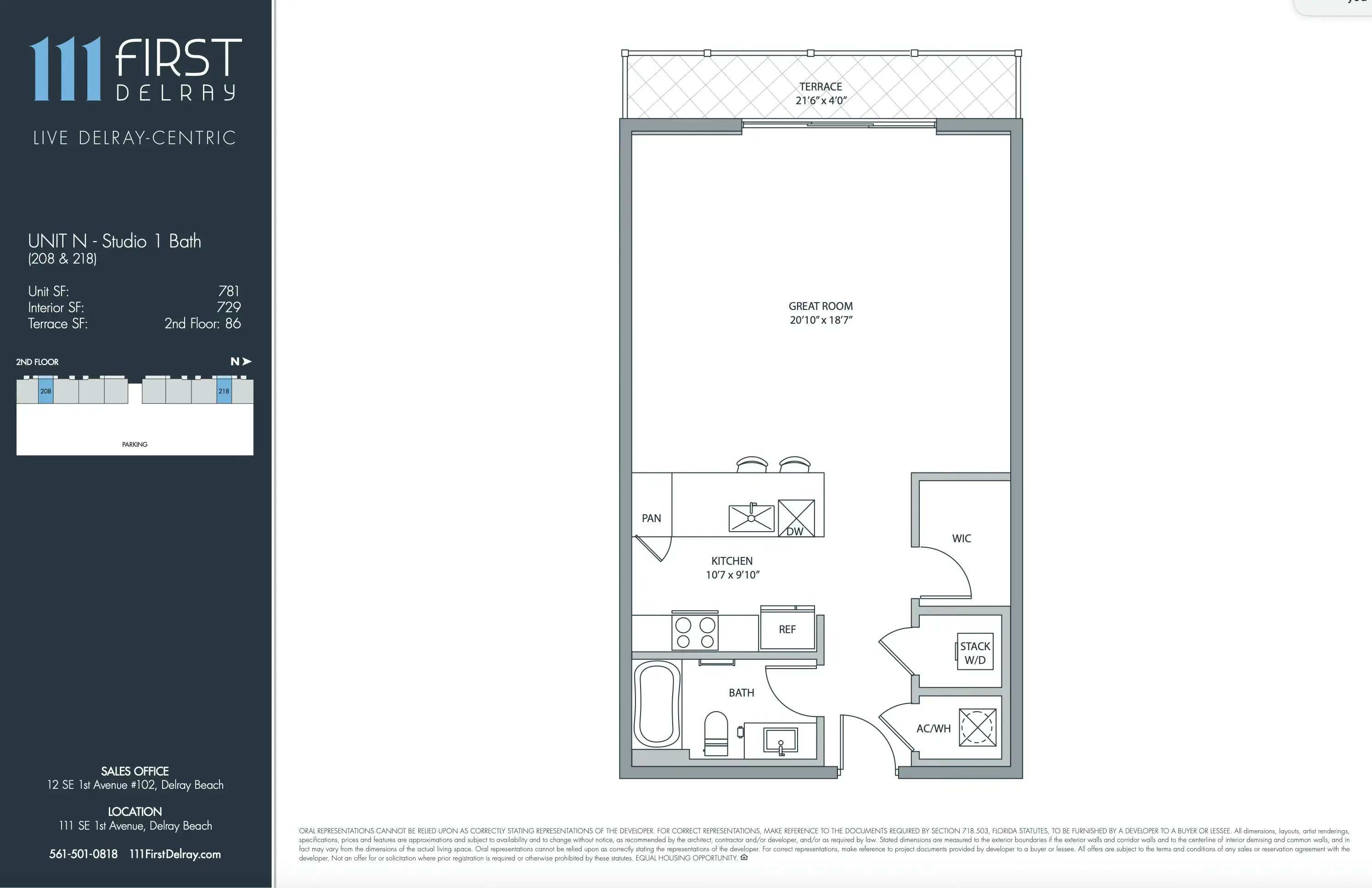 Beautiful studio located in newer boutique building. 111 First Delray is one block from the heart of Atlantic Avenue in Delray Beach.This unit is in like new condition, features modern kitchen with Bosch appliances, and quartz counter top. In unit washer and dryer, walk in closet and additional built in wall closet unit. Reserved parking space in secured garage is just steps away from this unit, as well as storage cage right across the hallway.111 First Delray features a beautiful pool area with barbecue grills, cabanas, pool table and plenty of deck space with lounges and chairs. Fully equipped gym and lockable bicycle storage.
