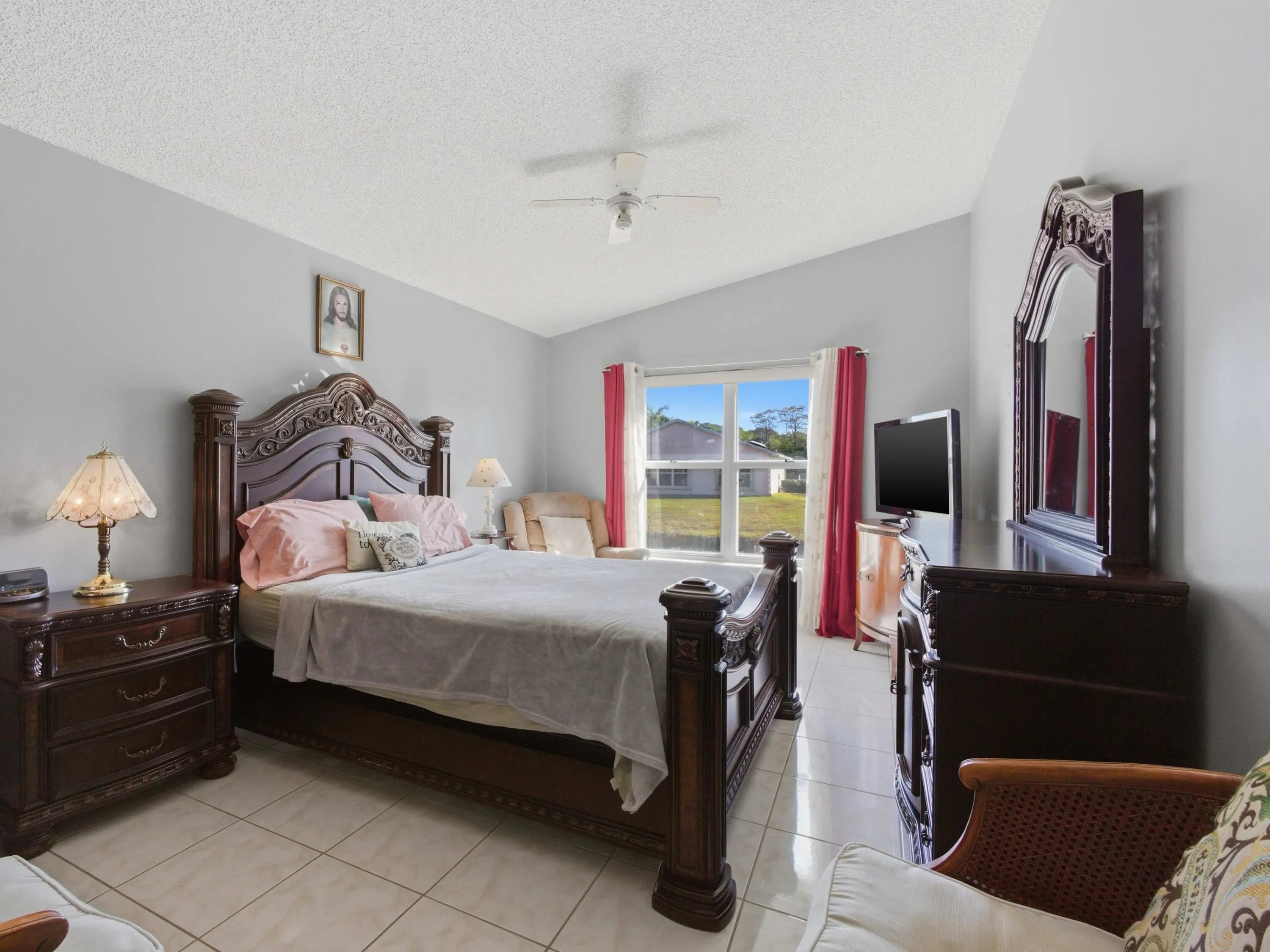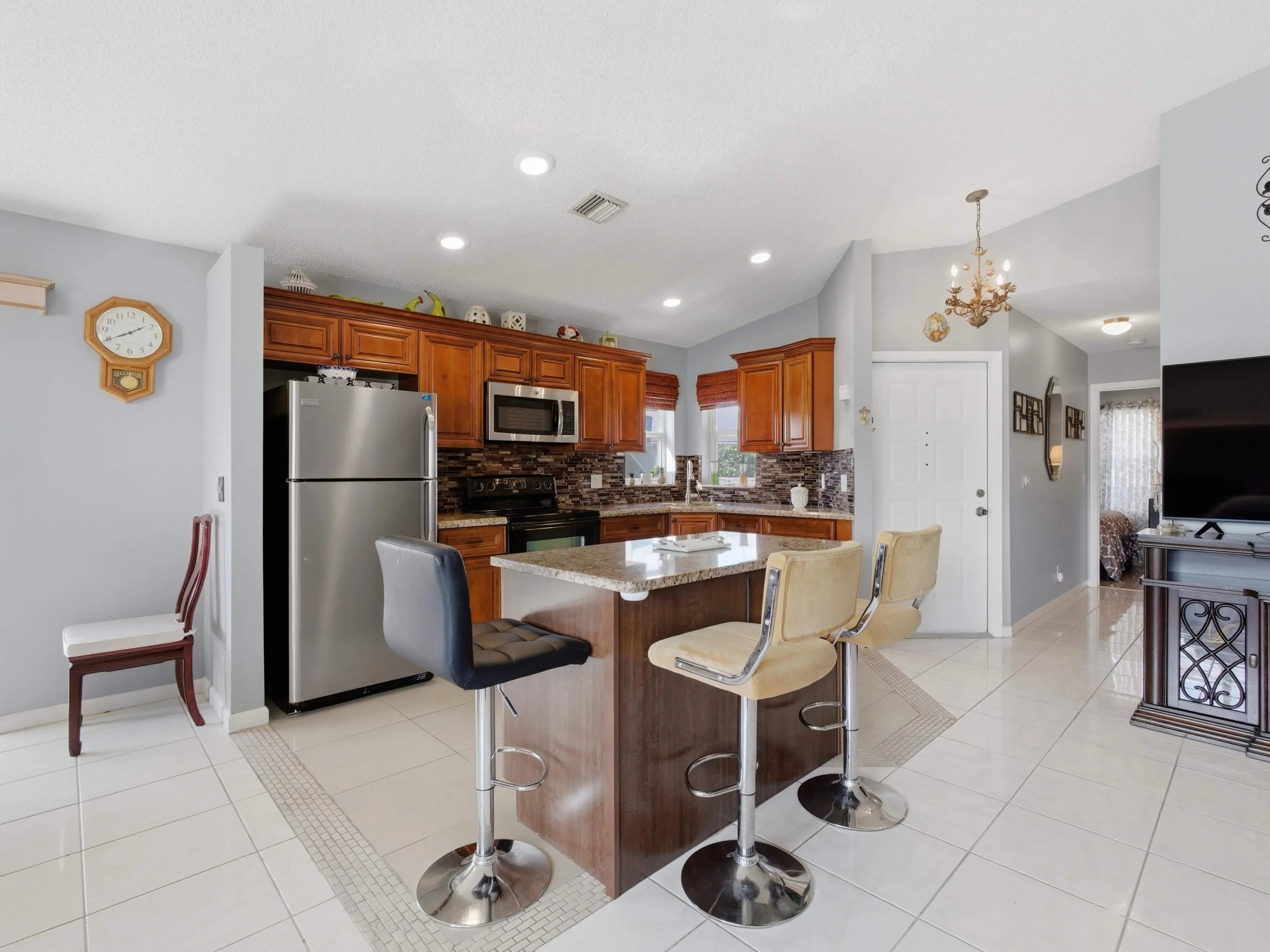 West Palm Beach CBS waterfront home under $350,000! Enjoy the Florida lifestyle in an all-ages gated community on a private cul-de-sac. Entertain in the open living and dining area featuring vaulted ceilings, tile floors, and a spacious dark wood kitchen with granite counters. Home can be delivered turn-key with furnishings included at no additional charge. Parking is plentiful with a true two-car garage plus extended driveway. Relax on the private patio with wide water views and no rear neighbor windows. Centrally located near schools, downtown WPB, I-95, and the Turnpike for easy commuting throughout Palm Beach County.