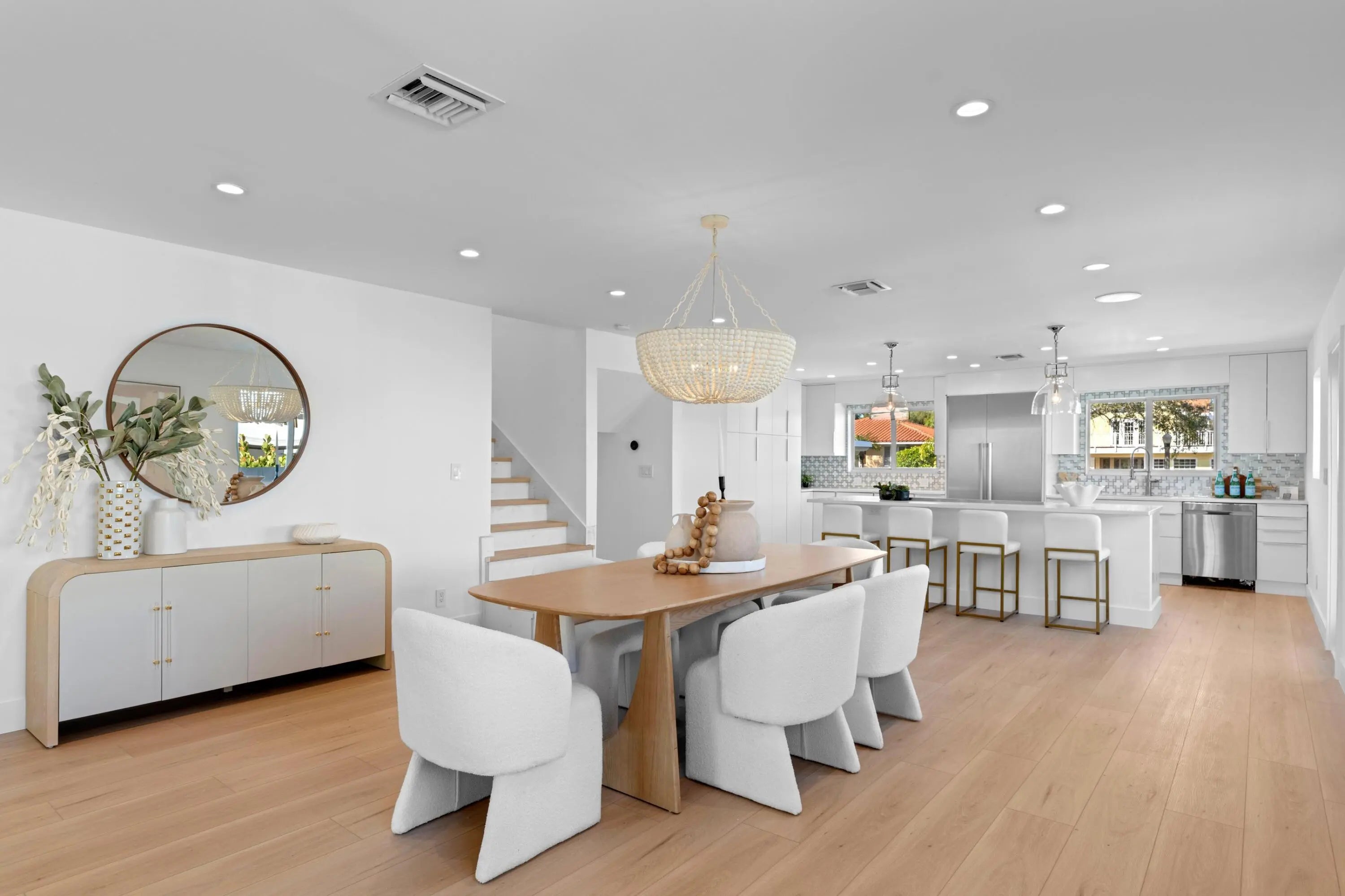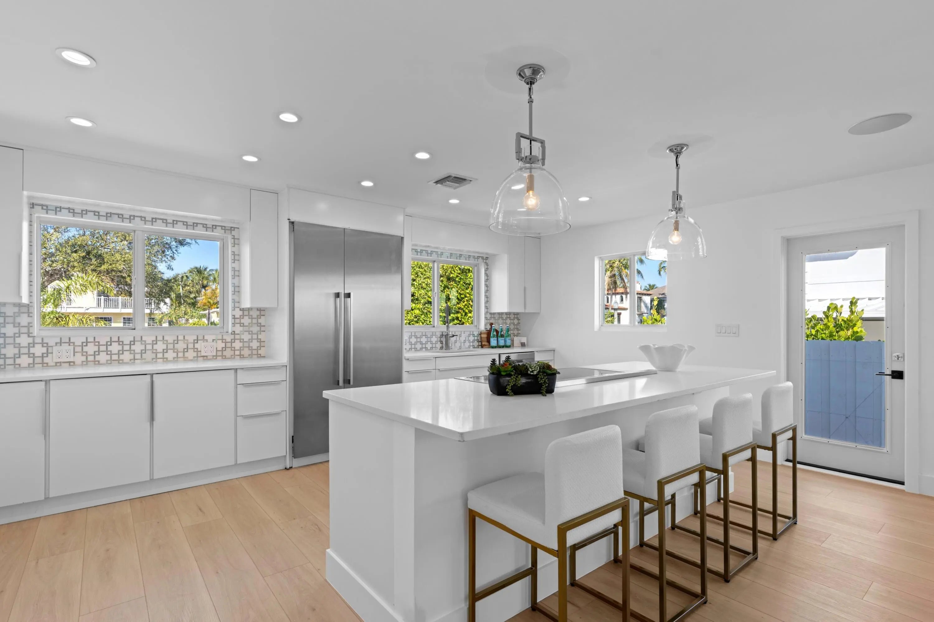Updated gem in the heart of Southland Park, just one lot from the Intracoastal on the prestigious Washington Road. This premier location, situated across from Mar-a-Lago between Southern and Royal Palm bridge and zoned for the coveted Palm Beach Island Public School District, offers the ultimate Florida lifestyle with the waterfront bike and walking trails just steps from your front door. The home has been meticulously refreshed with new flooring, new interior doors and trim, designer lighting, and fresh paint inside and out. Every bathroom has been transformed with new vanities, mirrors, and premium plumbing fixtures, including a brand-new bedroom and full bath suite.
