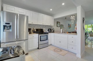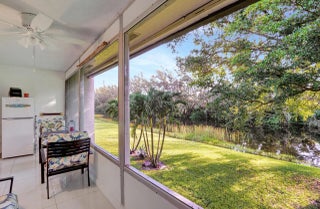 This updated and meticulously maintained modern unit offers a welcoming open floor plan. The spacious kitchen features stainless steel appliances, recessed lighting, and a handy counter bar with additional seating. Throughout the home, you'll find durable tile flooring and ample storage space. Relax and enjoy the tranquil water views from your private screen-enclosed balcony. Golden Lakes Village provides a vibrant lifestyle with a full-time social director and numerous amenities, including a clubhouse, pool and spa, gym, and more