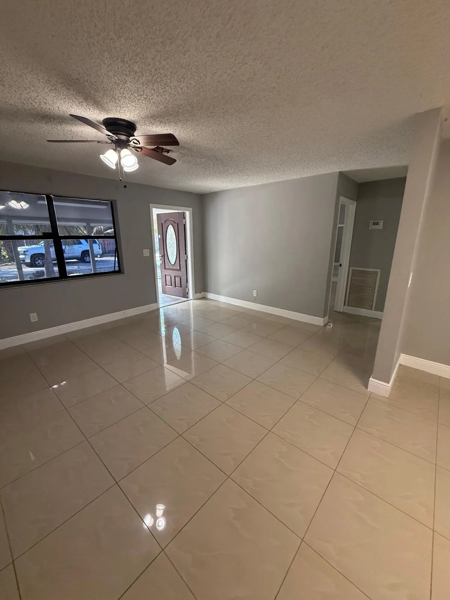 This single-family home is located in a great area of West Palm Beach. The area is very quiet and close to shopping plazas, gas stations, Walmart, and restaurants. The rent price included water and electrical service. The house has plenty of parking space, including a 2-car garage. The front access is through a private electric gate. The house is very spacious, and it has a large backyard that allows tenant to park their boat. A washer and dryer are not provided by the landlord. However, connections are available in the laundry room in case the tenant wants to install their own. This won't last long in the market since it is a great price with utilities included.