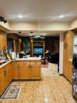 Do you love Trees and Nature? Then this Farmhouse style CBS home is for you. It offers Peace & Privacy. 3 Bedrooms all upstairs + 2.5 baths (2 baths up & 1/2 bath down) Primary suite has extra space for office or nursery and an updated bathroom. The other 2 bedrooms(Jack & Jill style) w/ doors to 2nd bathroom. Rustic inside and outside. You will need to add your touches and paint choices.(Needs updating). 1 car garage. 1 acre of high and dry land w/ tons of trees and native landscaping. Super WPB location, near almost everything.. Has 2 Dining rooms, Living room + good size family room off of the spacious kitchen + another family/ Florida room. Voluntary W Gun Club property Assoc is about $5 per year. The seller can close Asap but needs occupancy through May. *Doesn't front on Gun Clb
