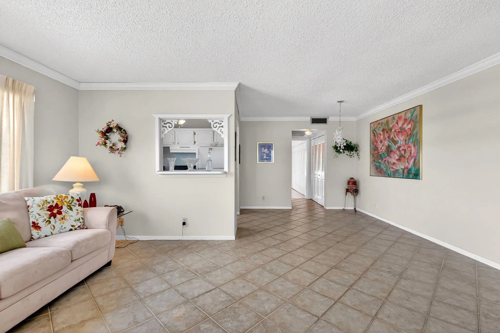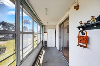 Welcome to this sun-filled corner unit in the active 55+ community of Century Village! This one bedroom, one and a half bath unit has central A/C, hardwood floors in the bedroom, and spacious porch to enjoy the many beautiful days South Florida has to offer. Plenty of natural light and an open floor plan makes this second story unit a bright and inviting space to call home. Located just one mile from I-75, three miles from I-95, and fifteen minutes to prestigious downtown West Palm Beach, this location is convenient yet tucked away in a quiet neighborhood. This is also a gated community with 24/7 security, ensuring a safe and private living experience.Nestled in the resort-style community of Century Village, you will enjoy endless amenities such as fifteen different pools including